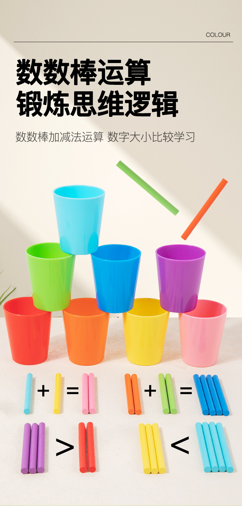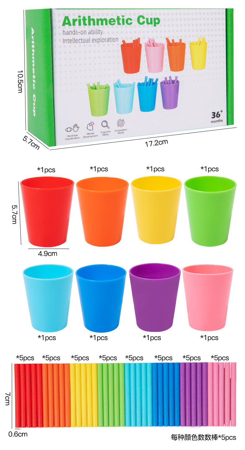 Clasificación de juguetes educativos para niños transfronterizos, combinación de colores, entrenamiento cognitivo aritmético, portalápices de educación temprana, material didáctico Montessori al por mayor