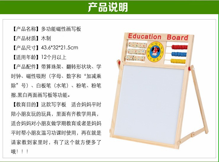 Weiweihu Tablero de dibujo magnético multifuncional de madera para niños, tablero de escritura de aprendizaje de graffiti, pizarra pequeña magnética de doble cara al por mayor