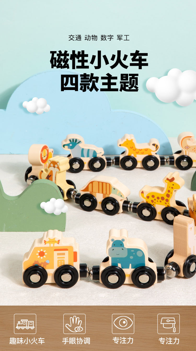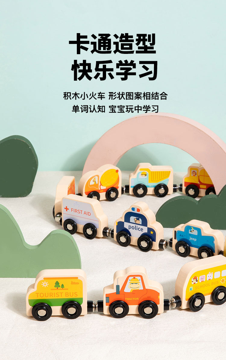 CPC CE magnético granja tren pequeño empalme de madera educación temprana coche de juguete jardín de infantes juego de remolque cognitivo