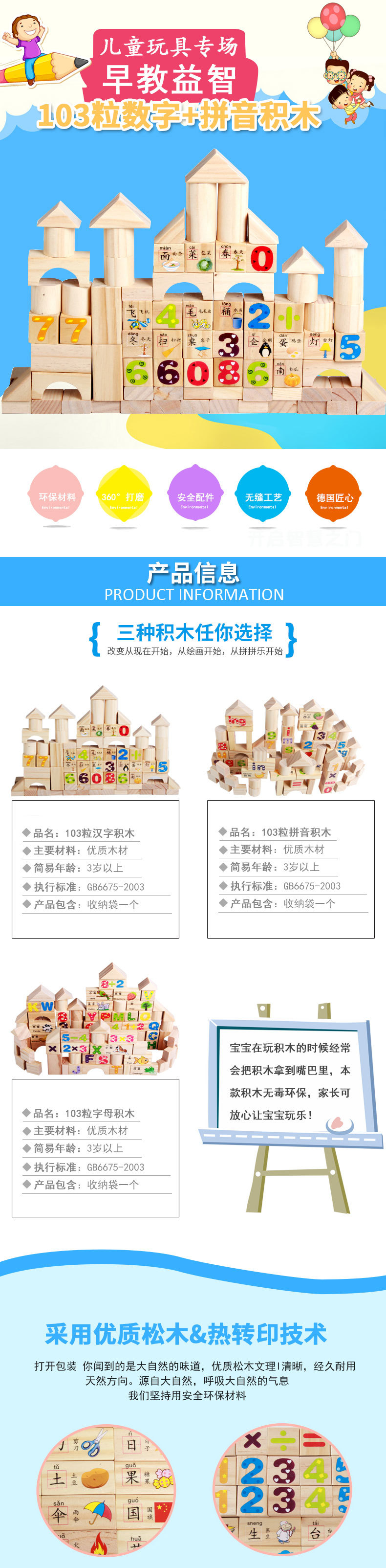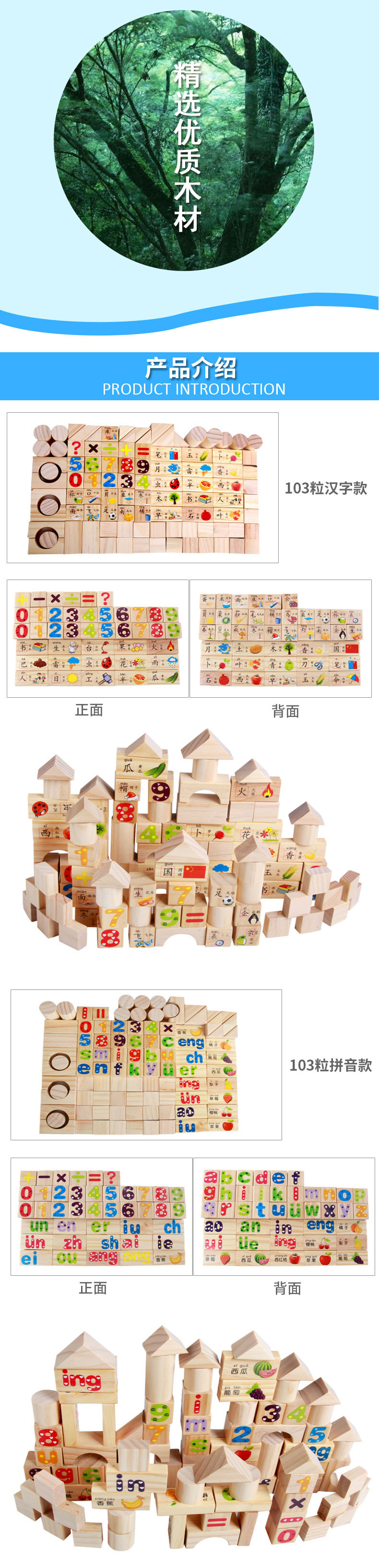 | Color | 103 animales de la fruta,103 números + hombre bloques de construcción,103 números + letras bloques de construcción,103 Digital + pinyin bloques de construcción |