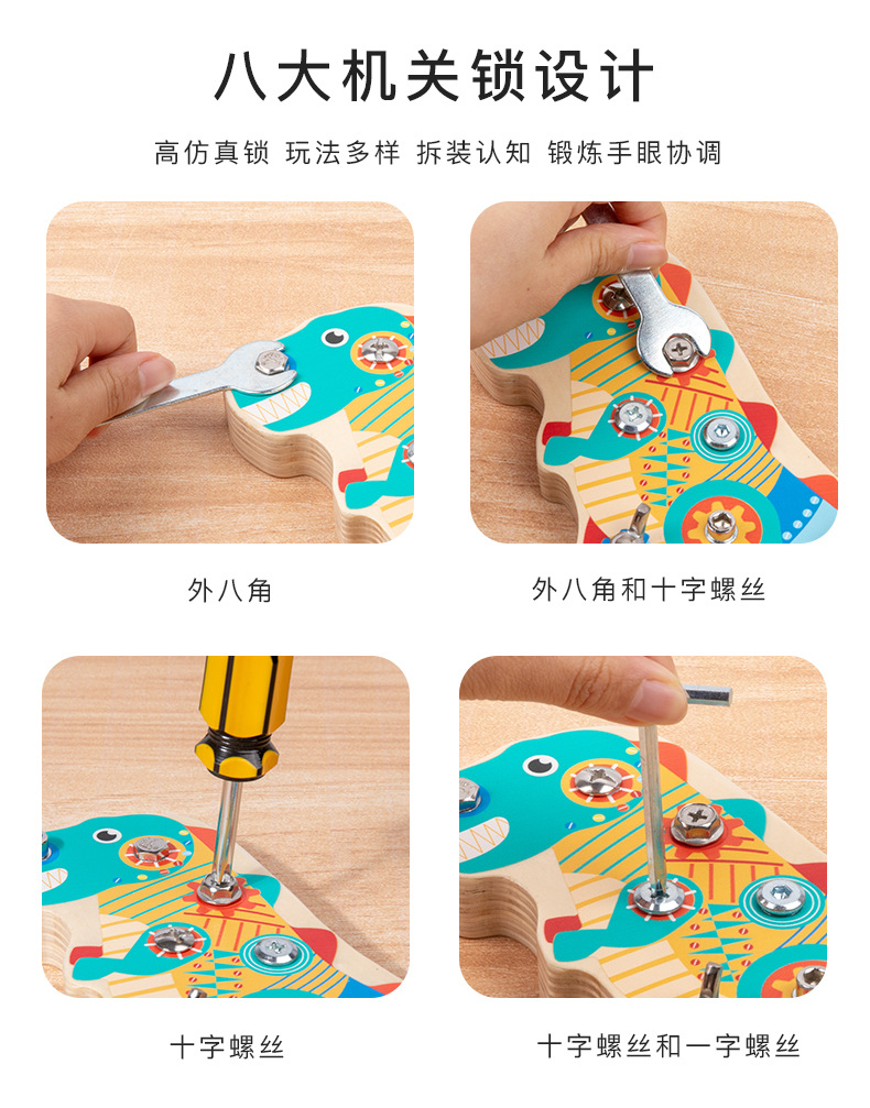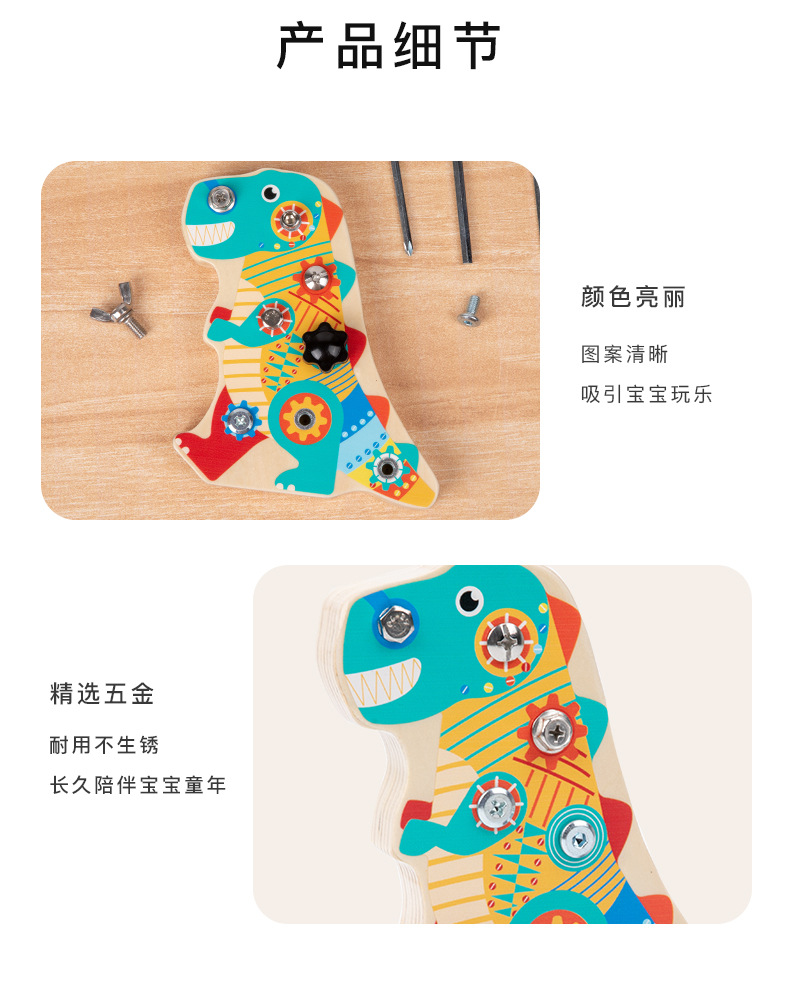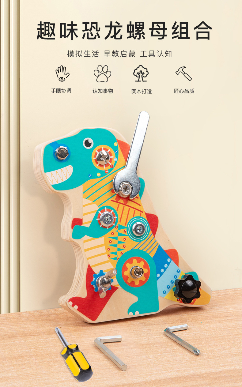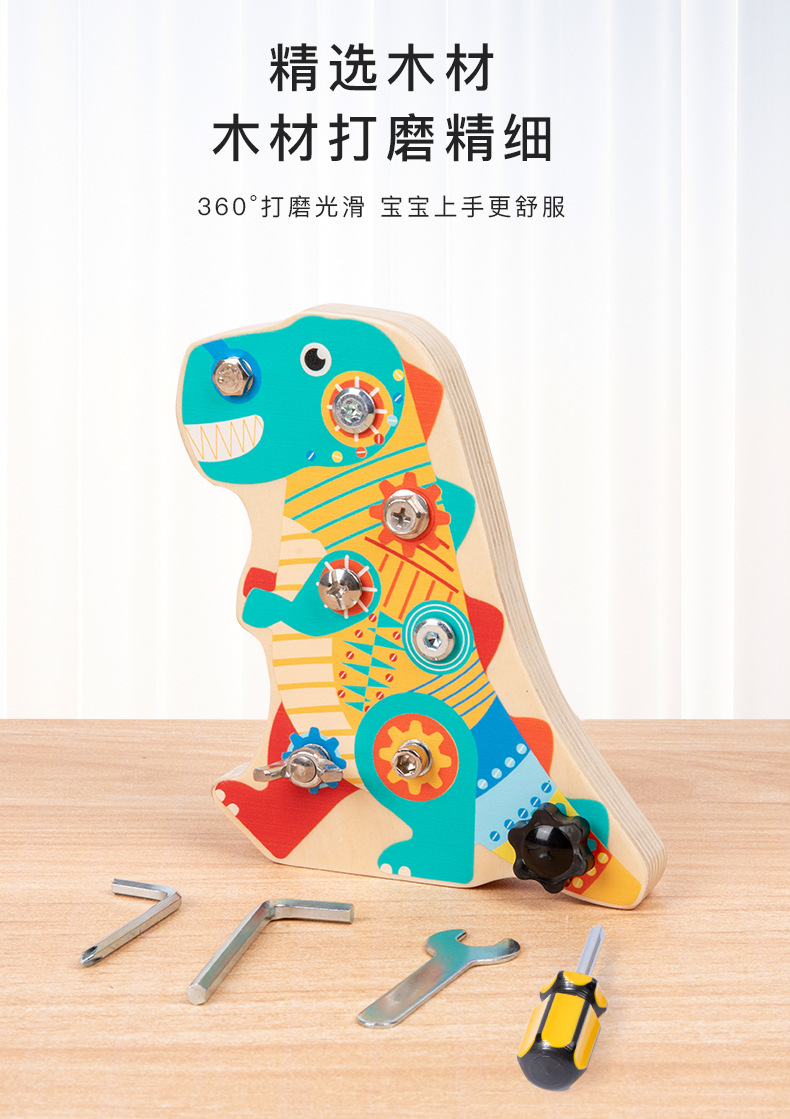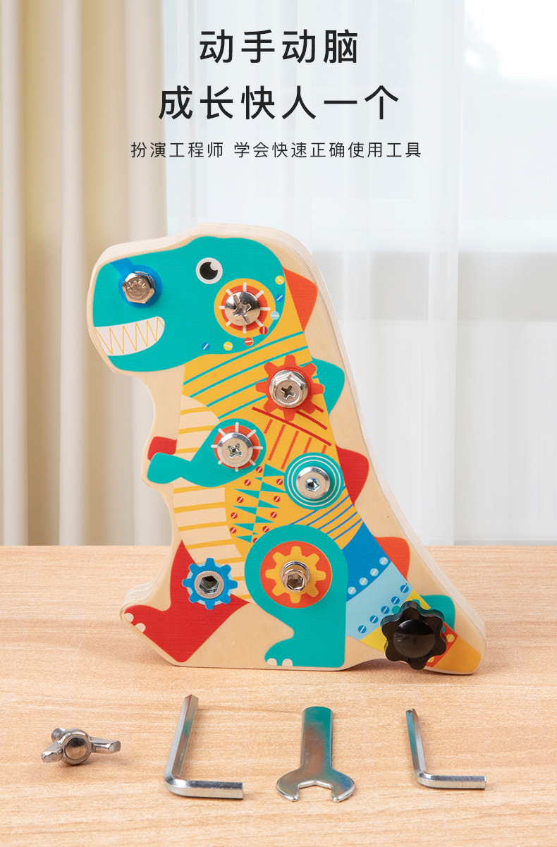Weiweihu combinación de tuerca de dinosaurio de madera, ensamblaje de tornillos desmontable, entrenamiento de habilidades prácticas para niños, juguetes educativos