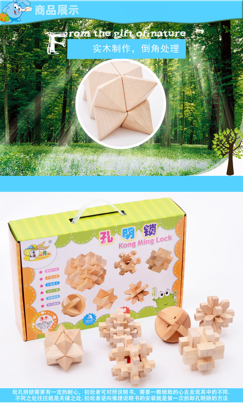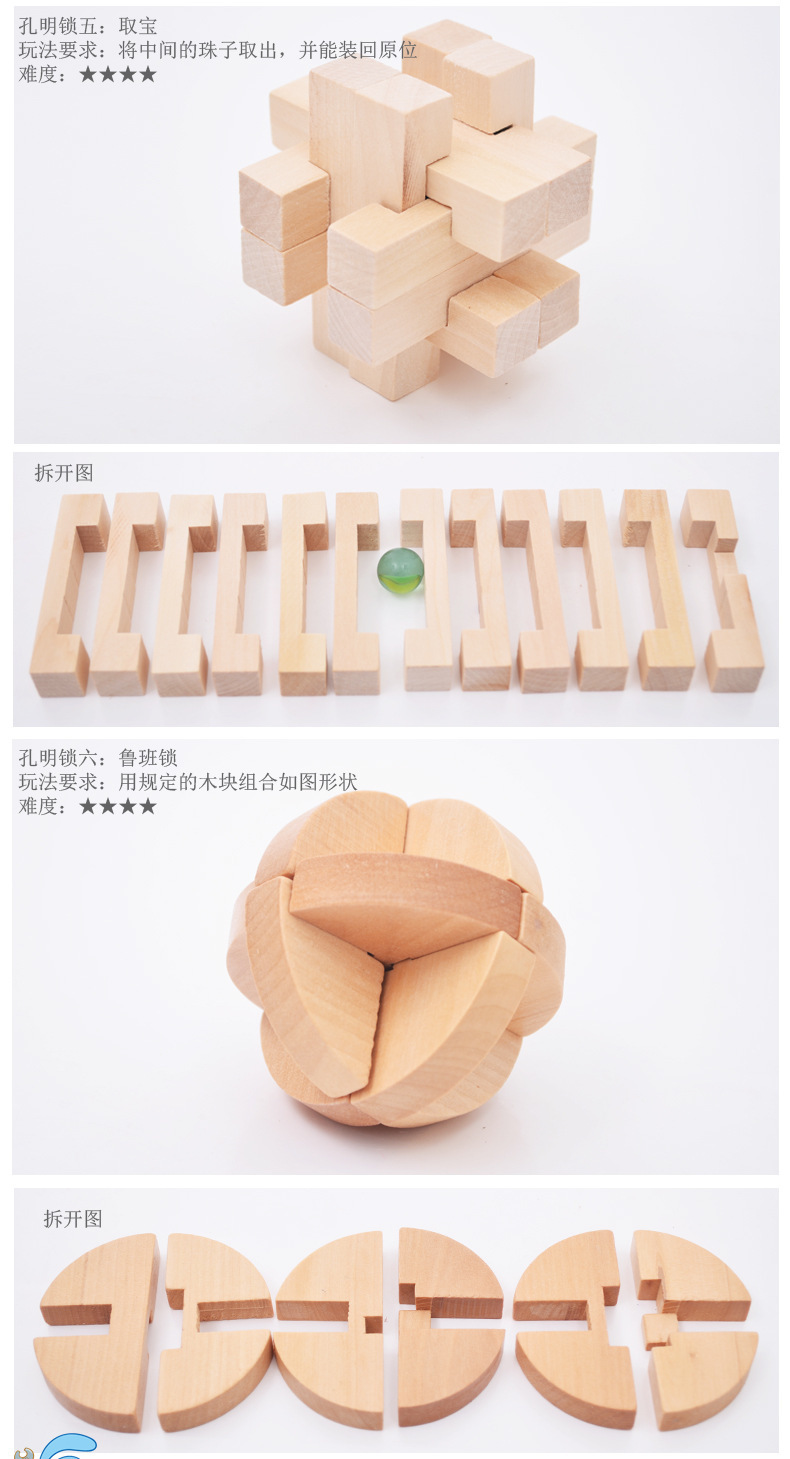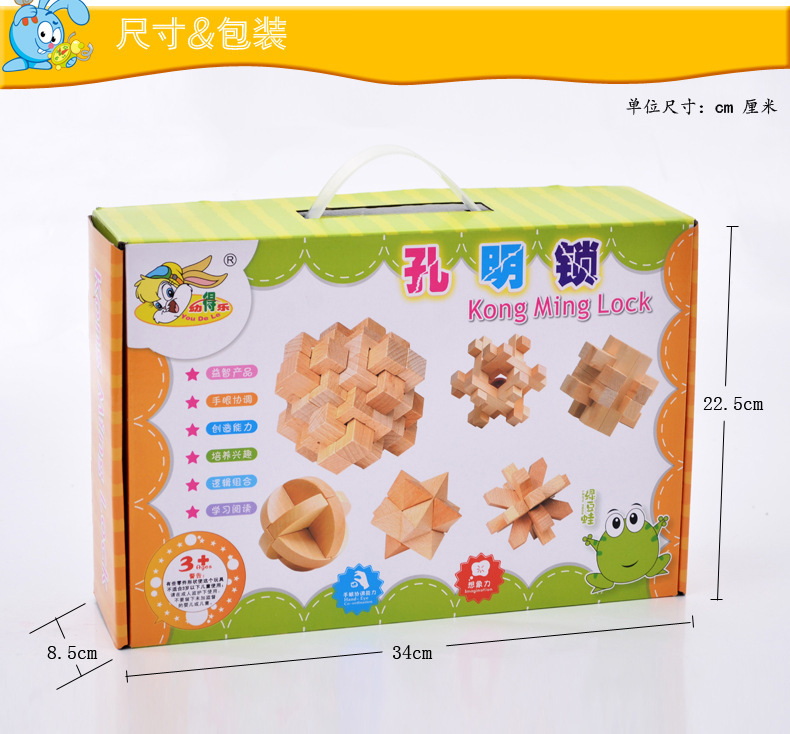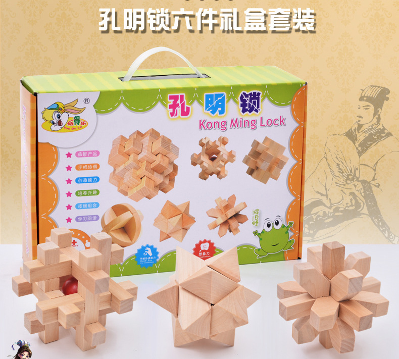 Youdele adultos niños educativos de madera desbloquear inteligencia juguetes ensamblados Kong Ming cerradura Luban cerradura traje de seis piezas conjunto