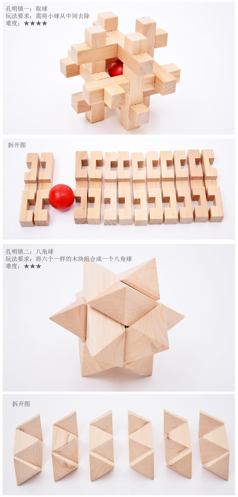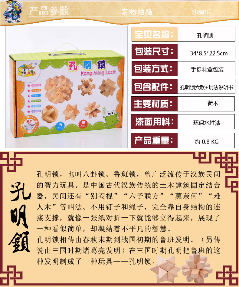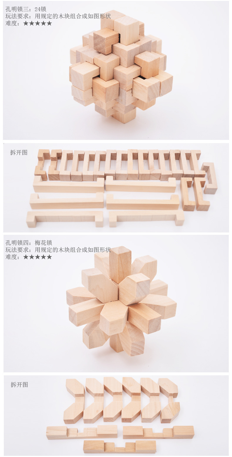 Youdele adultos niños educativos de madera desbloquear inteligencia juguetes ensamblados Kong Ming cerradura Luban cerradura traje de seis piezas conjunto