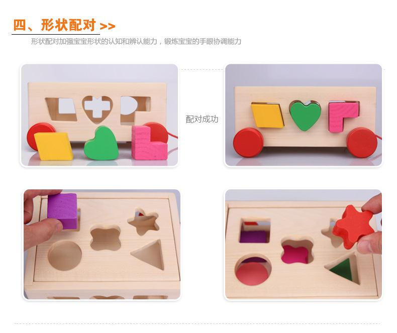 15-agujero multifuncional de madera remolque Caja de Inteligencia forma a juego remolque de los niños educativos de Madera Juguetes de educación temprana