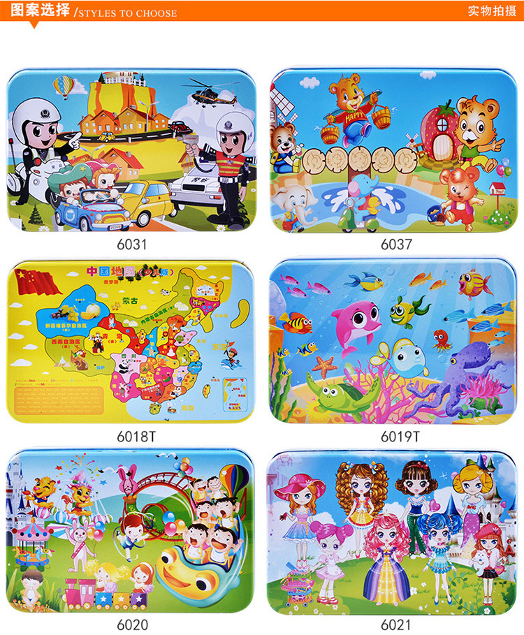 | Color | Estilo aleatorio de caja no llena,Mapa de China,Mapa del mundo,Parque de atracciones,Ocho Maestros,Zoológico,Chica cantando,Santa Claus,Mundo Submarino,Dinosaurio,Pesca gatito,Aviones y coches,Policía de tráfico,Cartas,Número,Pequeño Caballero,Cenicienta,Oso llevando agua,Viajes de animales,Camión bomberos,Sirena,Granja,Príncipe y princesa |