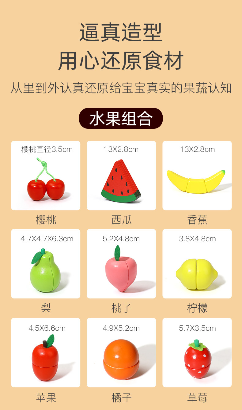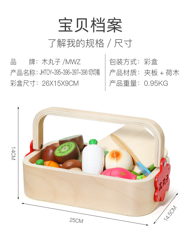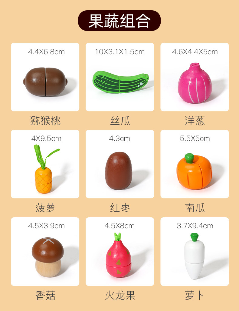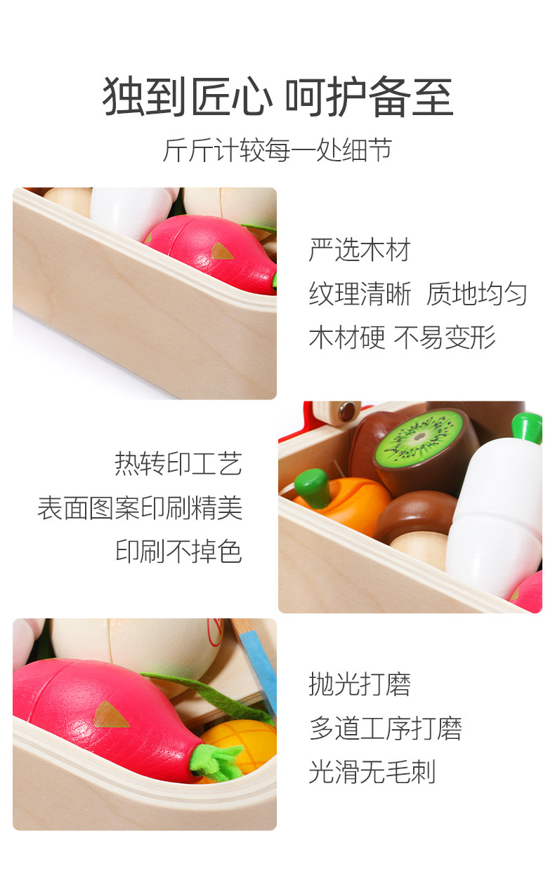 Montessori Early Education Children's Simulation Fruit Chie Le Toys Madera portátil Juego de corte de verduras magnético en caja