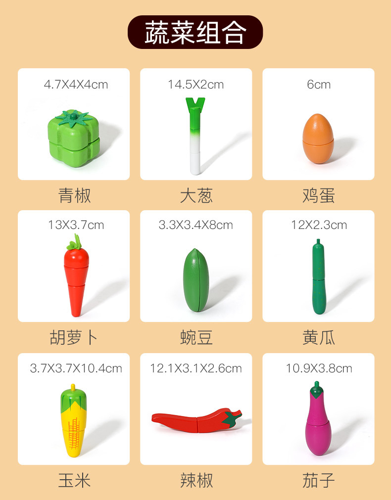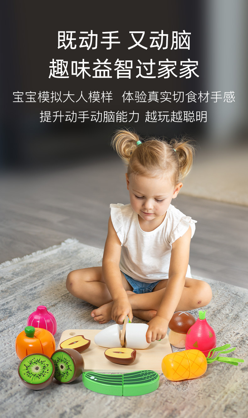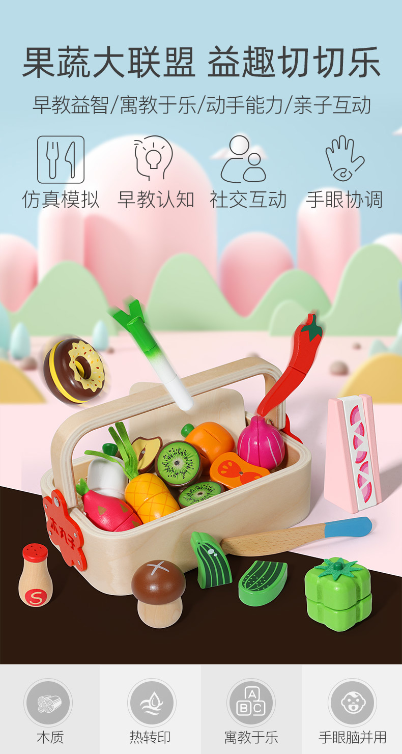 Montessori Early Education Children's Simulation Fruit Chie Le Toys Madera portátil Juego de corte de verduras magnético en caja