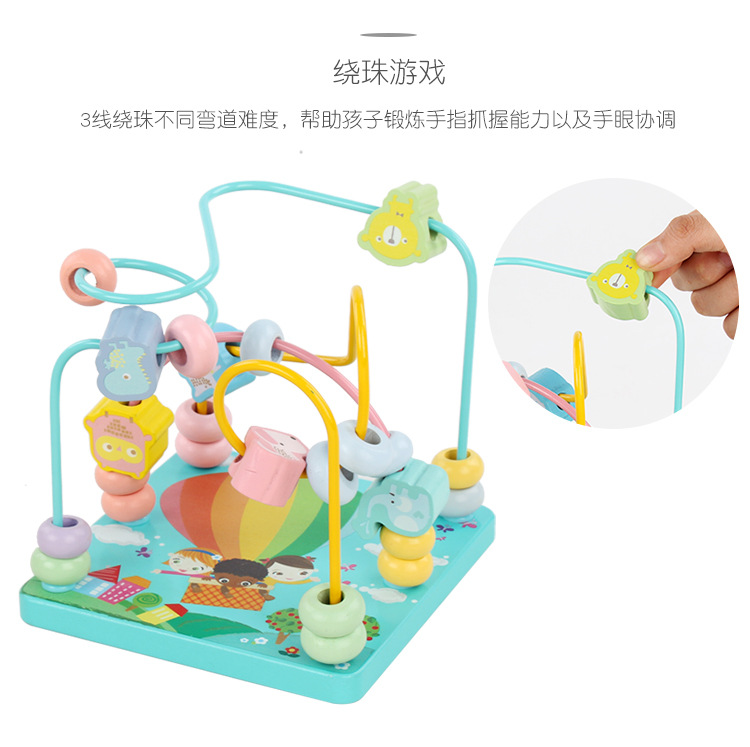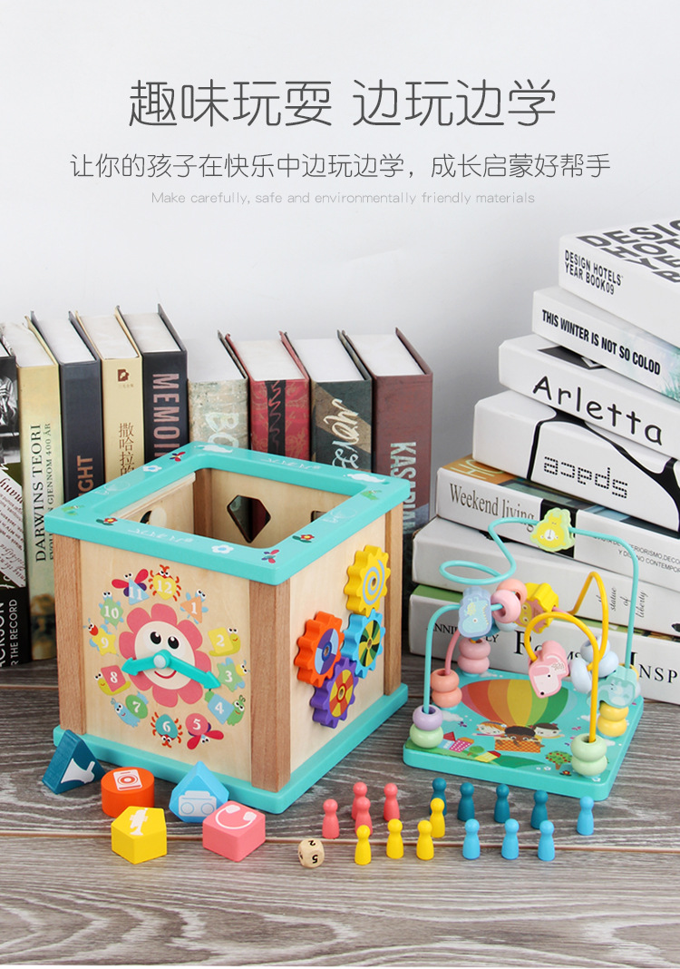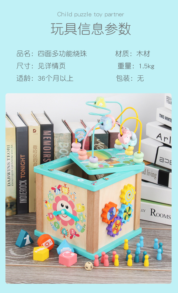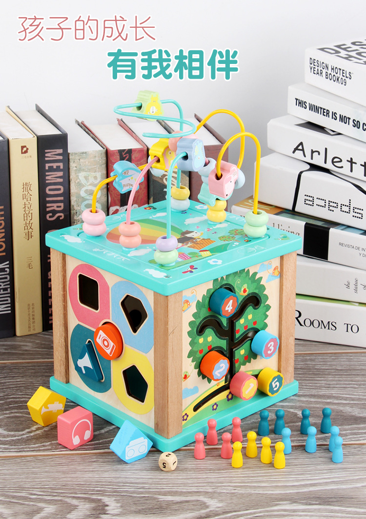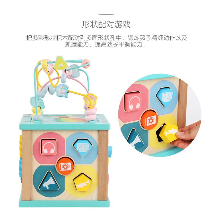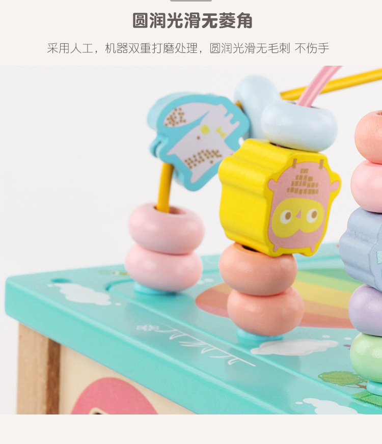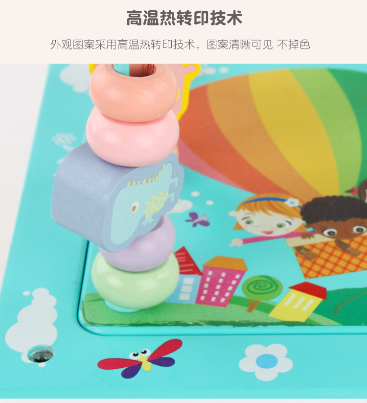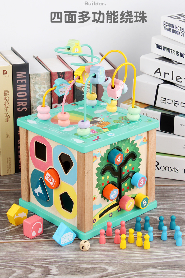 Caja de tesoro de cuentas multifuncional de cuatro lados de madera para niños juguetes de desarrollo de inteligencia de Educación Temprana a juego con forma infantil