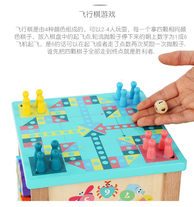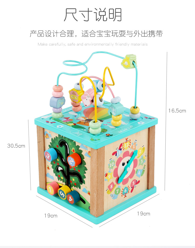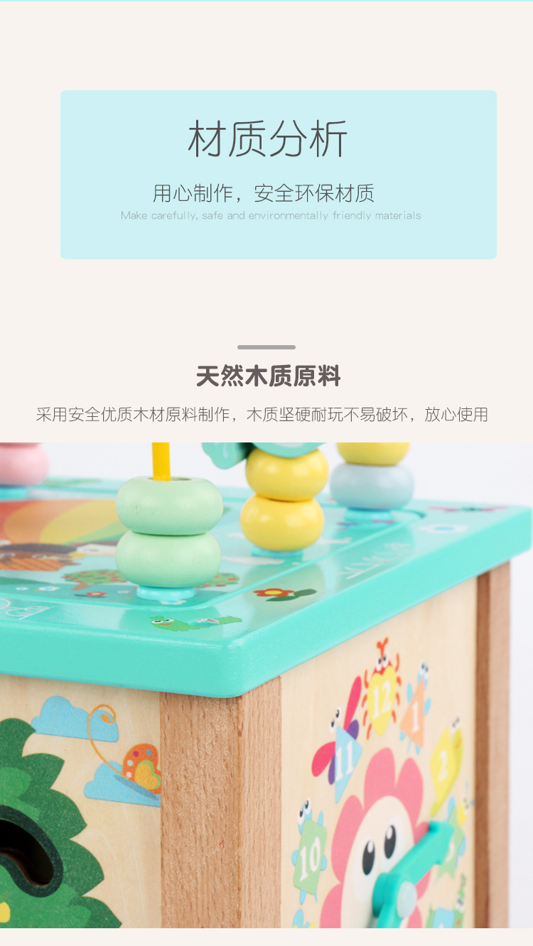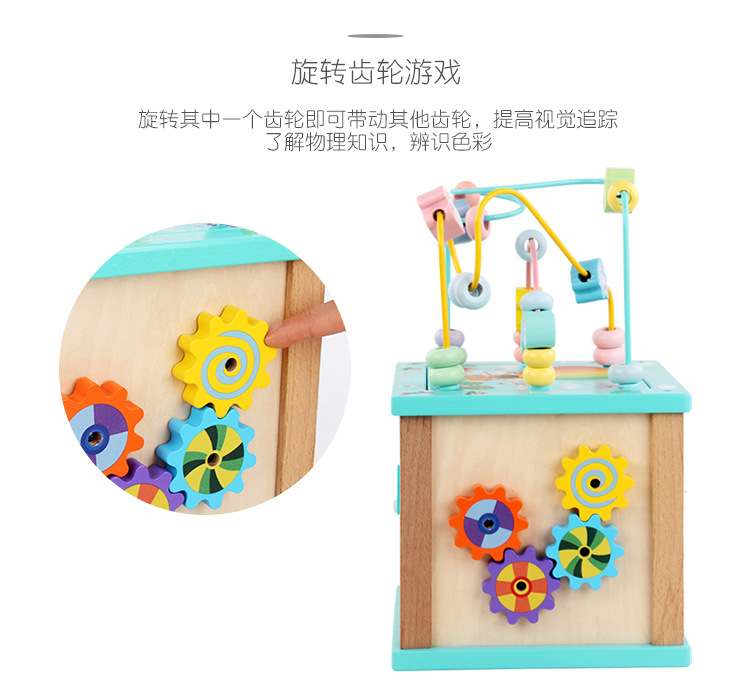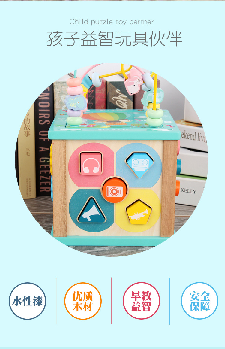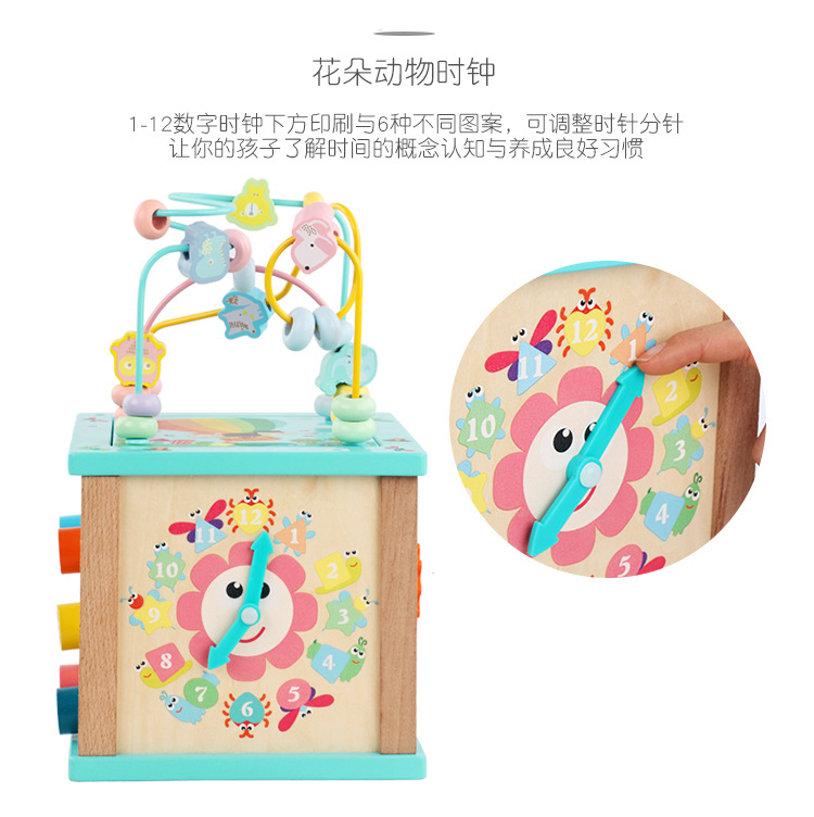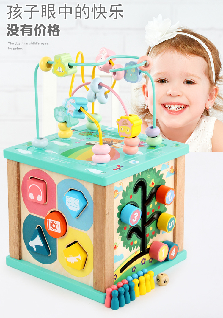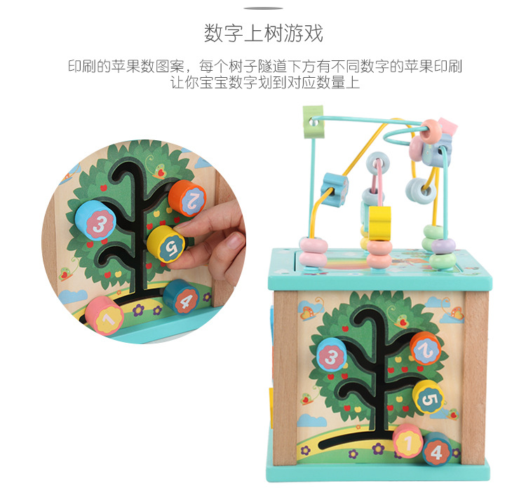 Caja de tesoro de cuentas multifuncional de cuatro lados de madera para niños juguetes de desarrollo de inteligencia de Educación Temprana a juego con forma infantil
