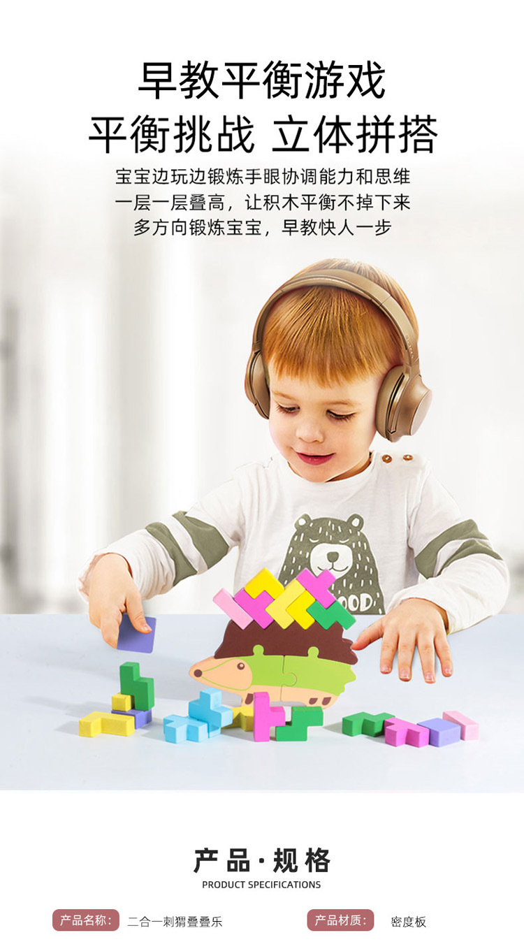 Los niños de madera de educación temprana erizo Jenga color cognitivo equilibrio bloques de construcción rompecabezas ruso dos en uno de juguete