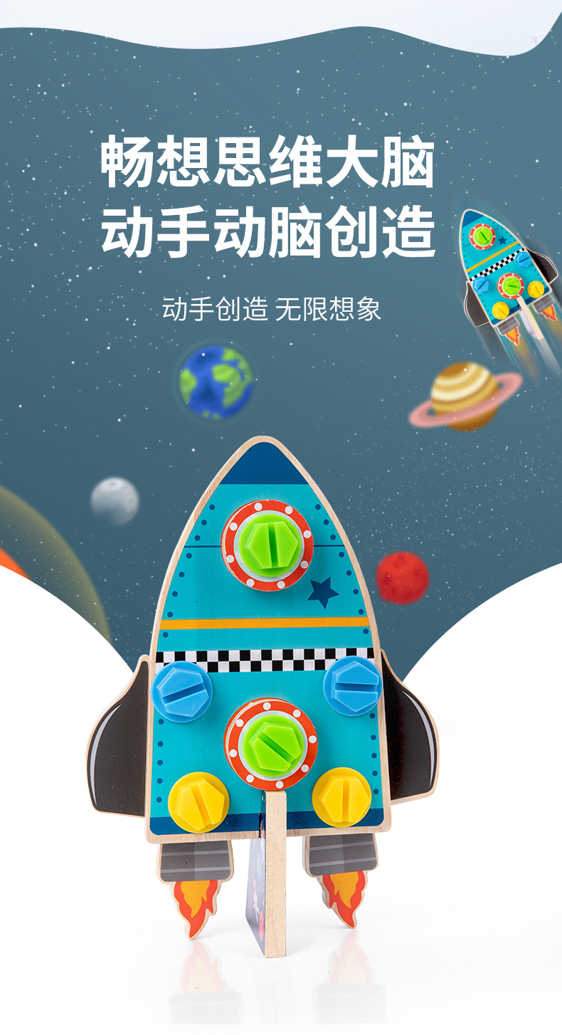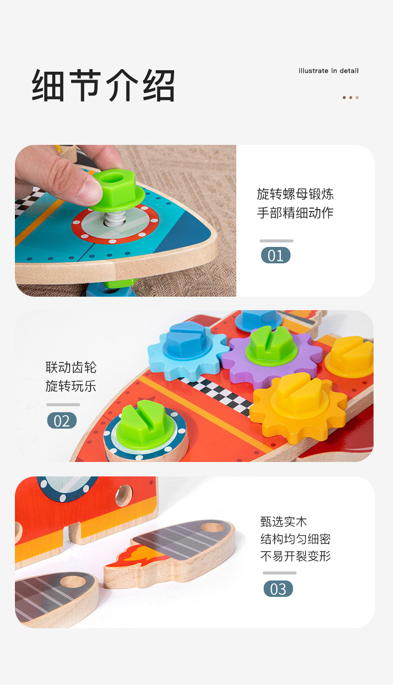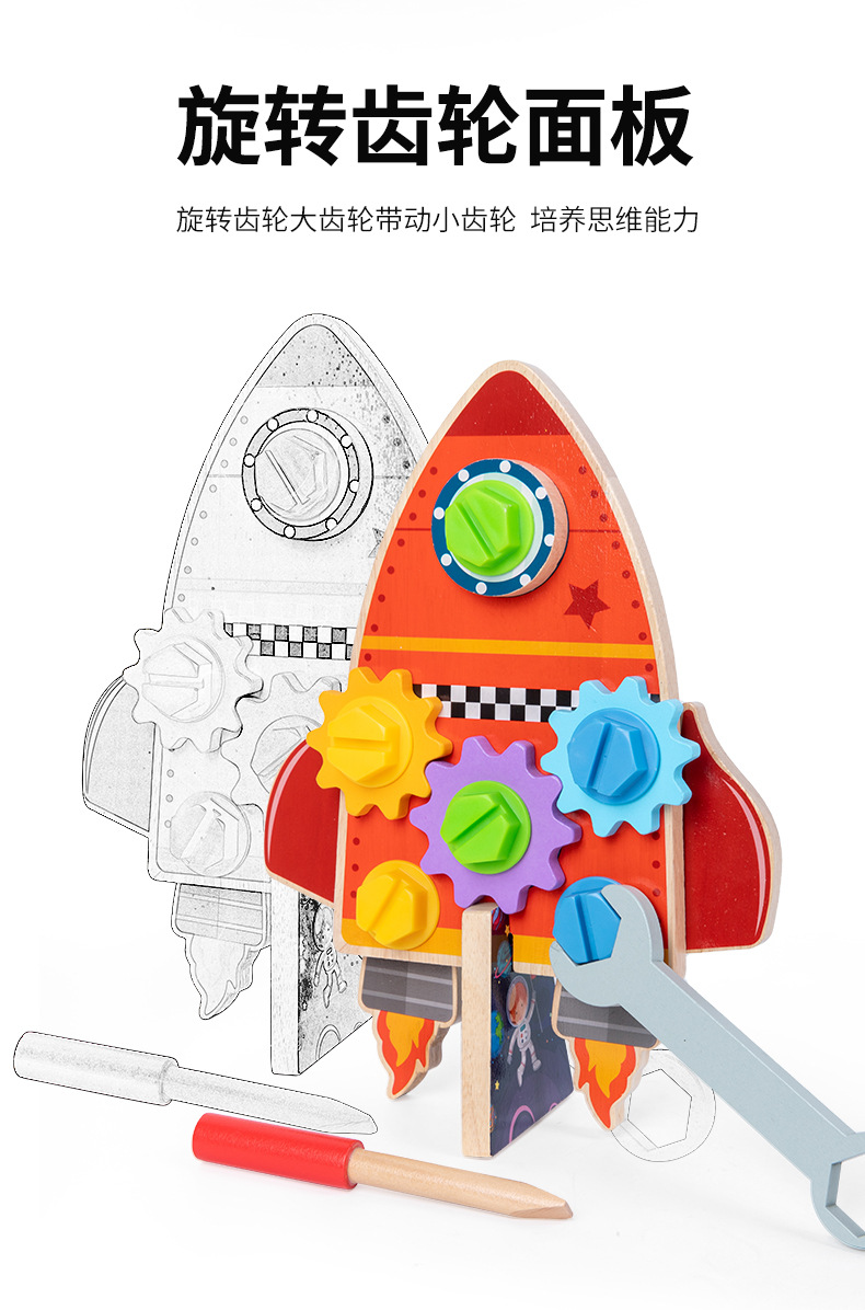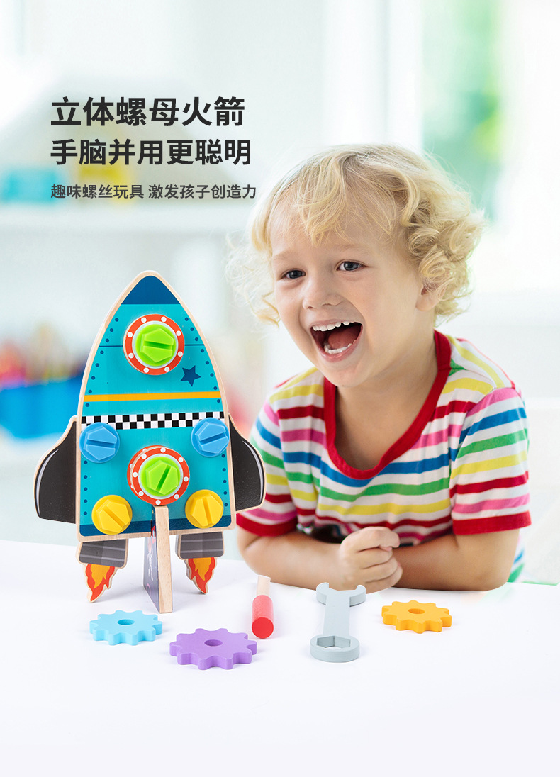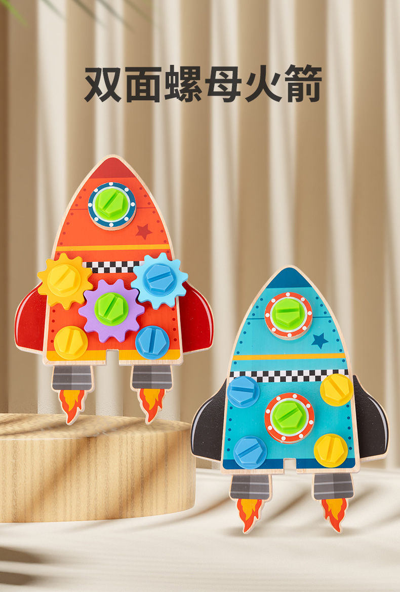 Mini tuerca de cohete de madera educación temprana para niños rompecabezas mano fina acción entrenamiento tuerca engranaje juguetes de madera