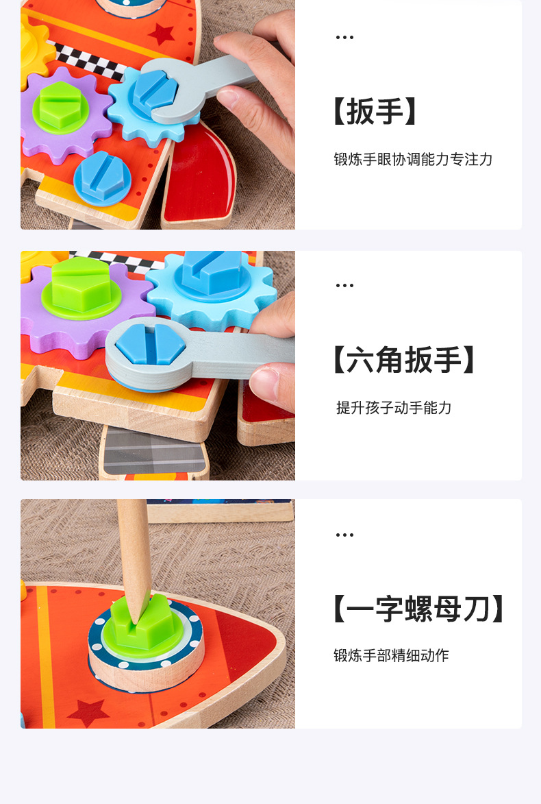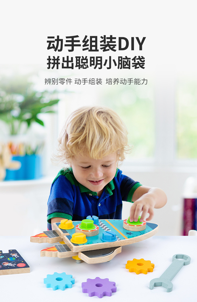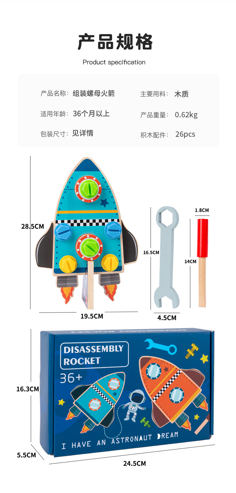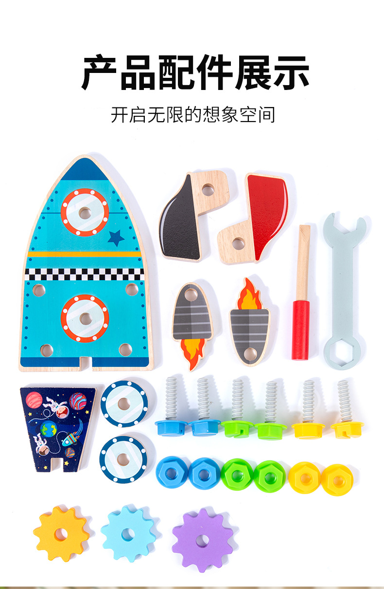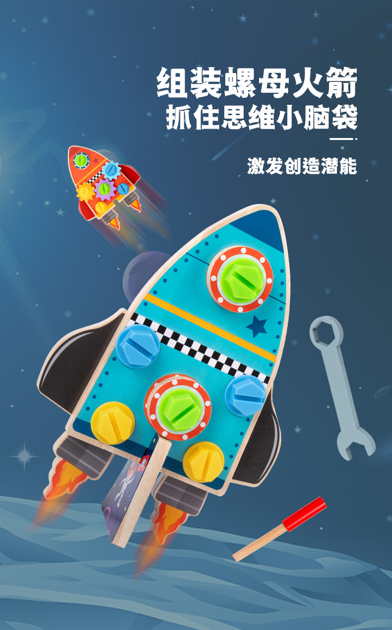 Mini tuerca de cohete de madera educación temprana para niños rompecabezas mano fina acción entrenamiento tuerca engranaje juguetes de madera