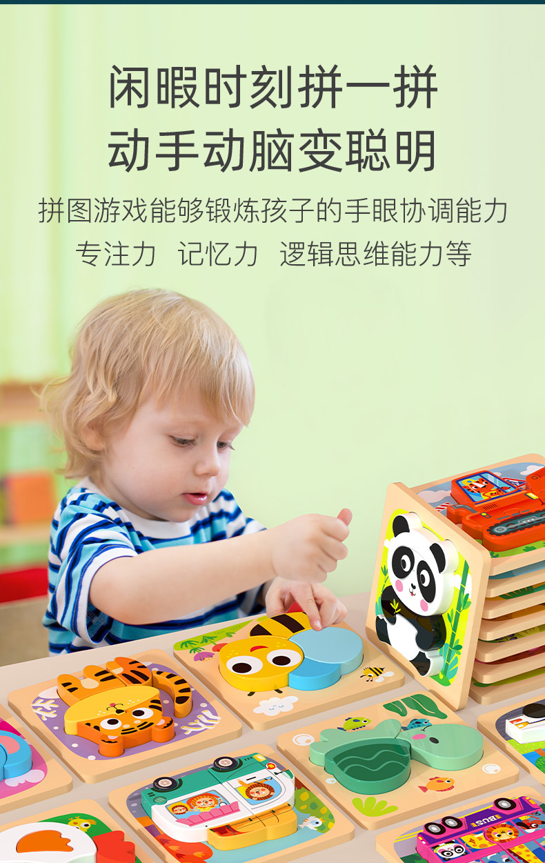 Rompecabezas tridimensional de madera, juguetes educativos, bloques de construcción, bebés y niños 1 uno-dos-tres años y medio 6 niños, niñas, bebés, educación temprana