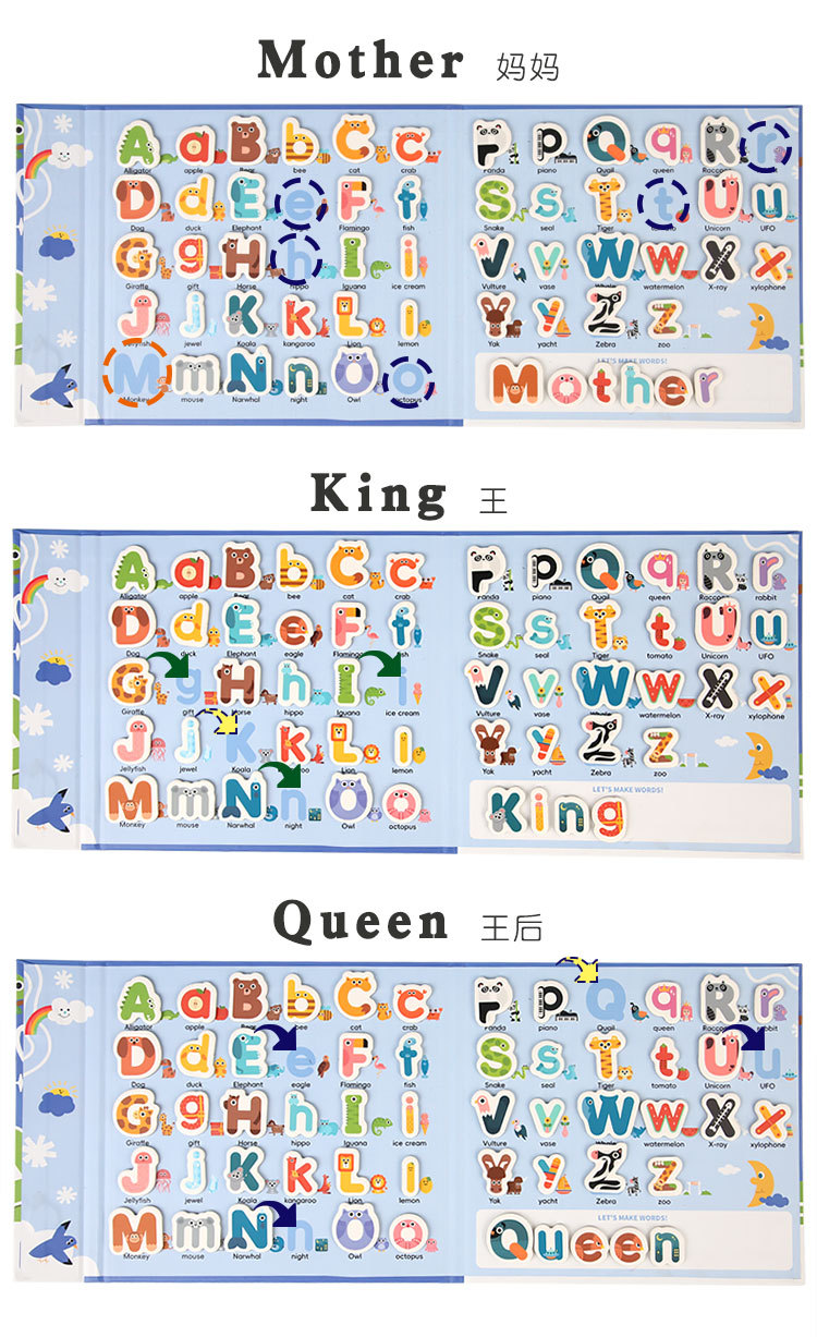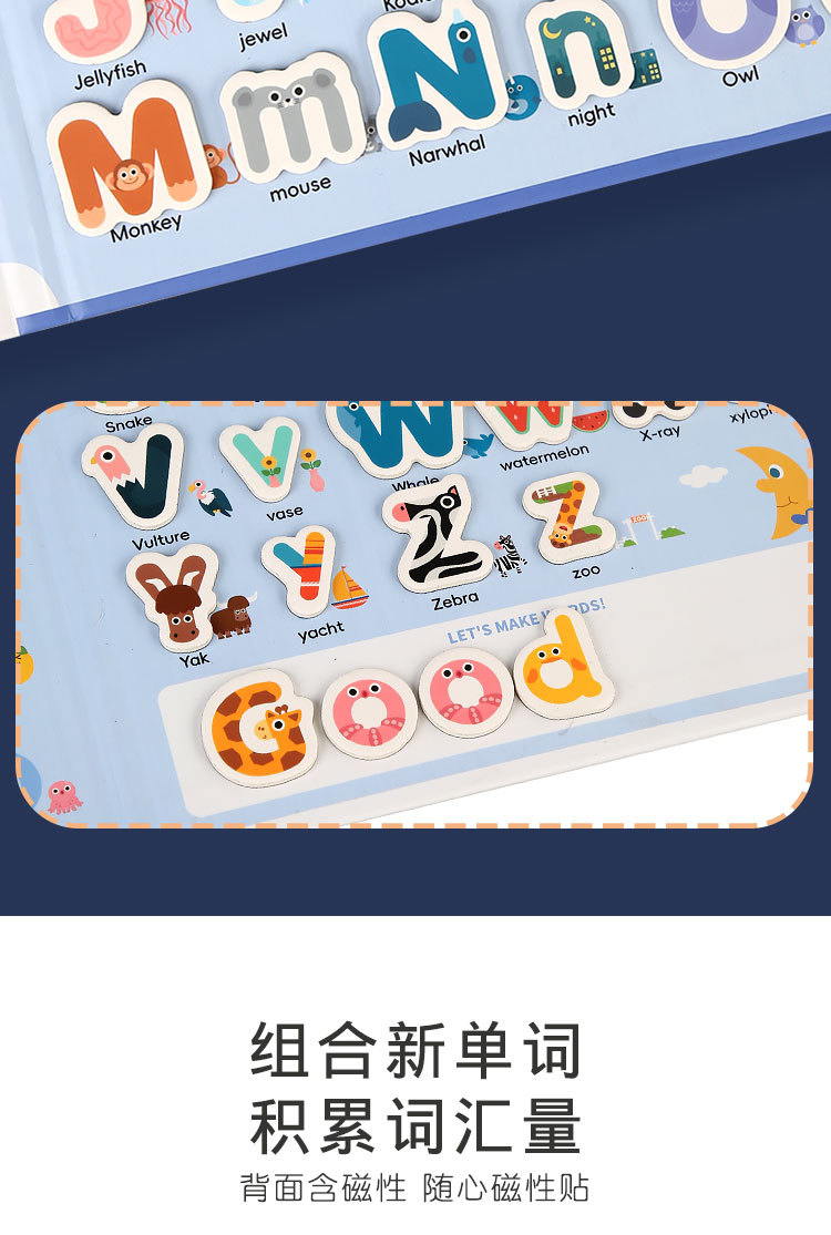 Transfronteriza magnética Nuevo 26 letras inglesas libros cognitivos inglés ortografía ayudas didácticas educación temprana pegatinas magnéticas Juguetes