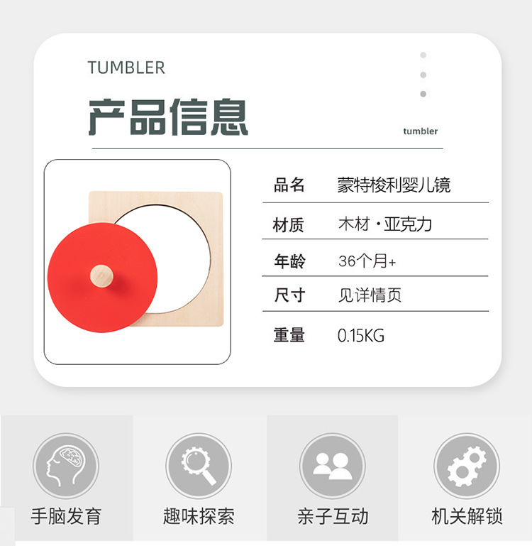 Madera Montessori enseñanza ayudas bebé espejo 3-9 años de edad los niños de educación temprana juguetes educativos rompecabezas kindergarten enseñanza ayudas