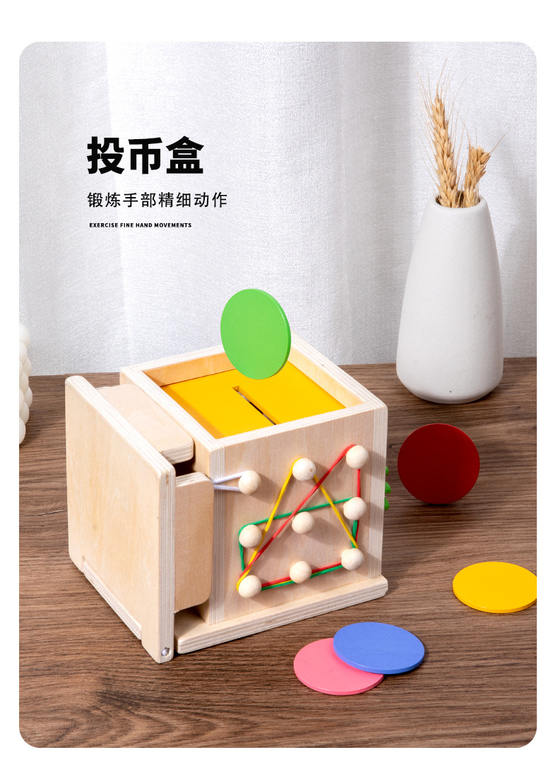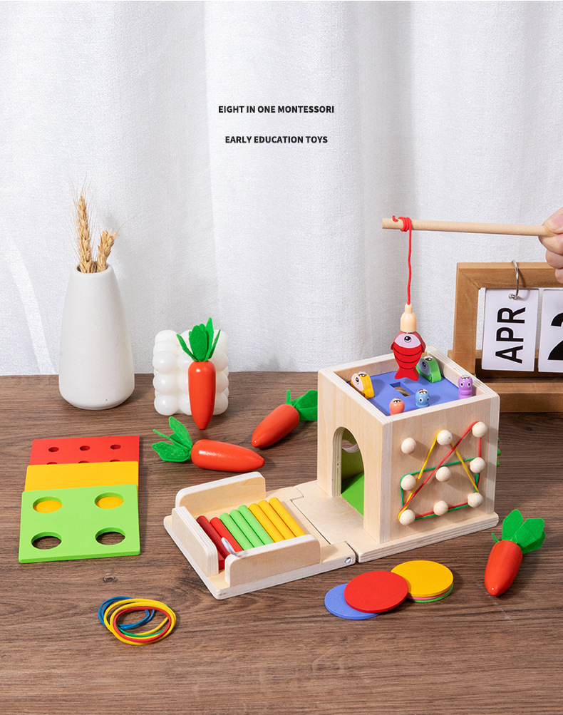 Montessori multifuncional ocho en uno caja de monedas palo tirando de rábano kindergarten color a juego Caja de Inteligencia juguetes educativos