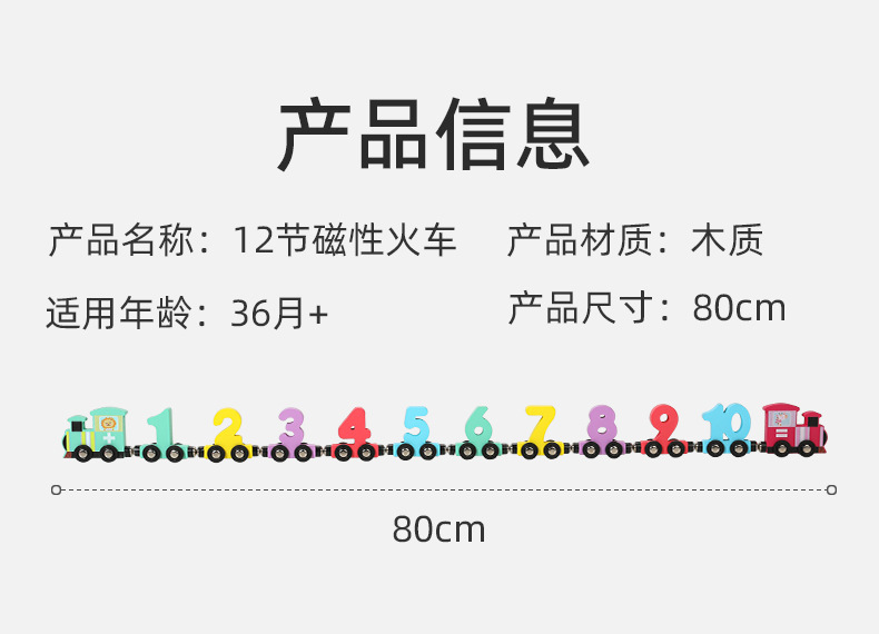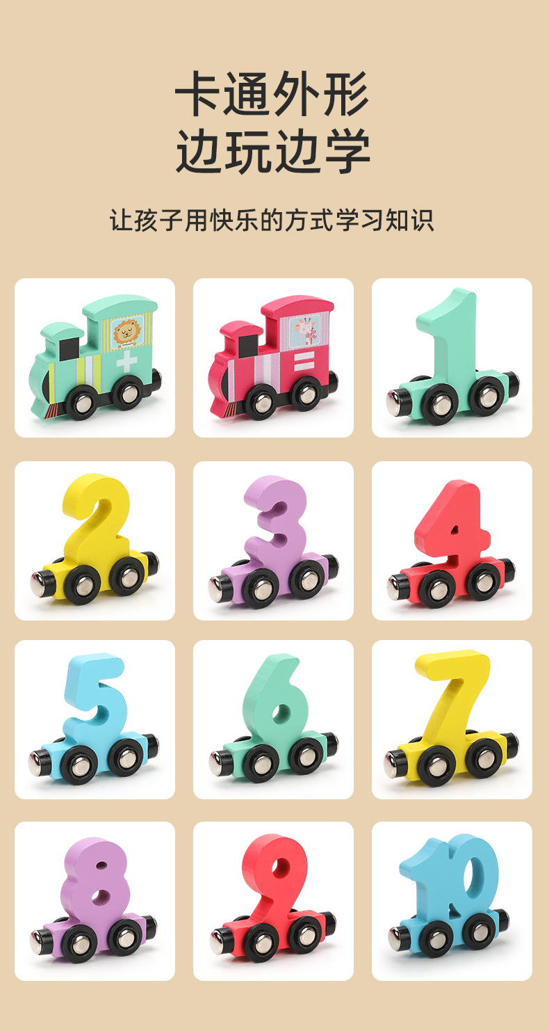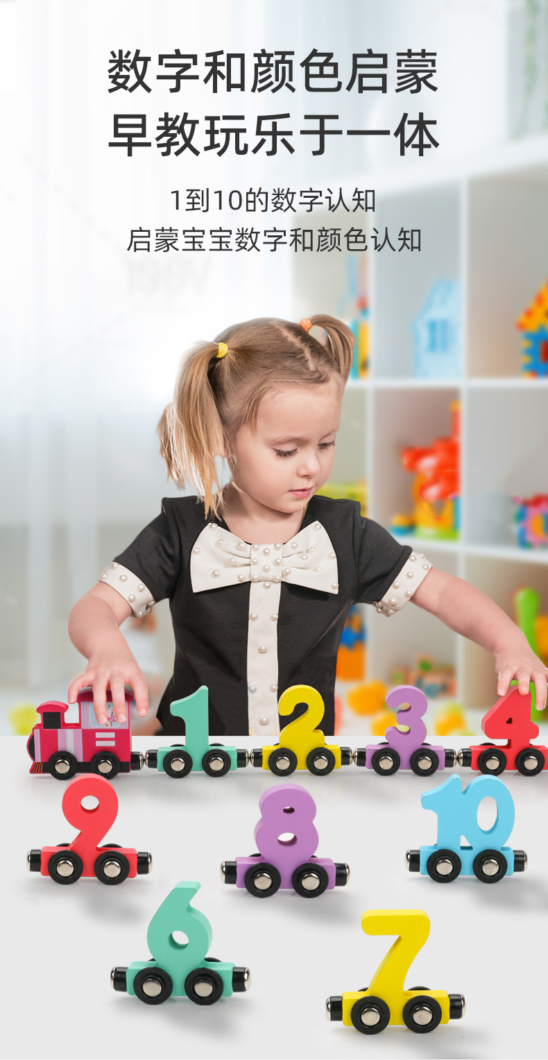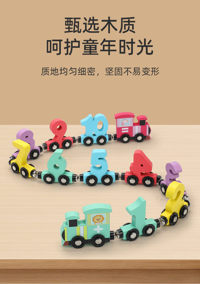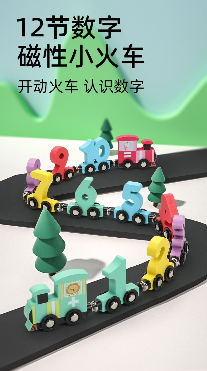 Niños de madera de 12-Sección de doble cabeza magnética tren digital 3-6 años de edad de juguete de jardín de infantes educación temprana
