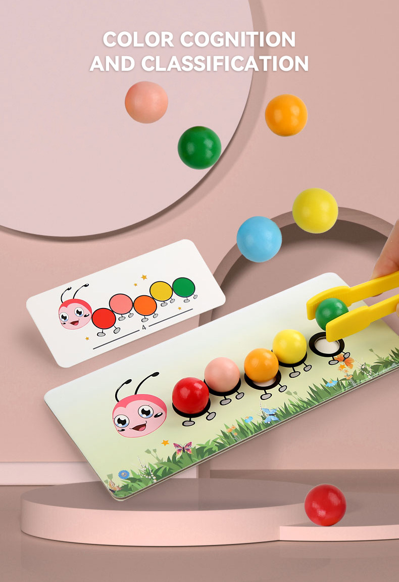 Juego de cuentas de oruga de madera para niños transfronterizos ejercicio habilidad práctica cognición de color juguetes educativos para niños pequeños