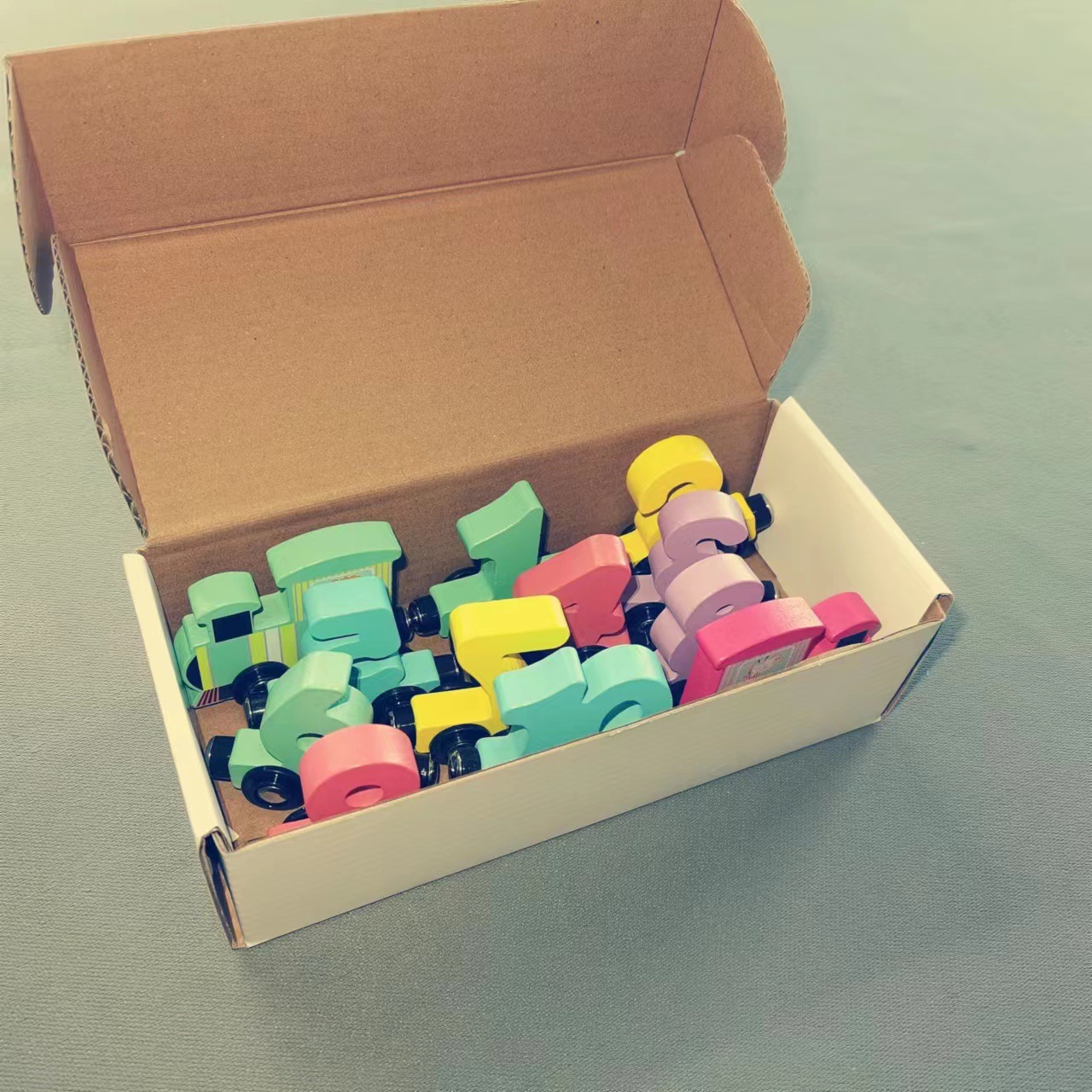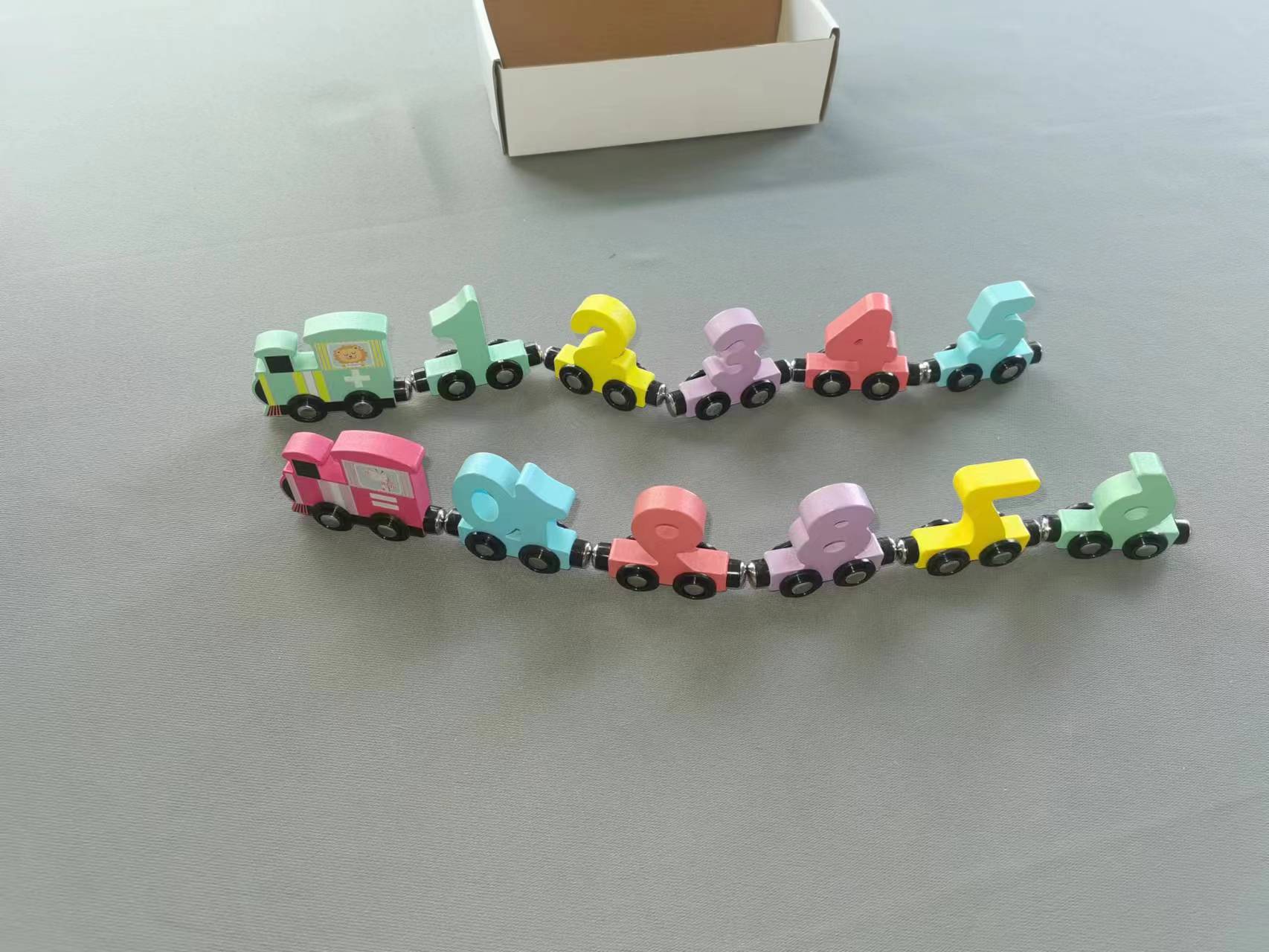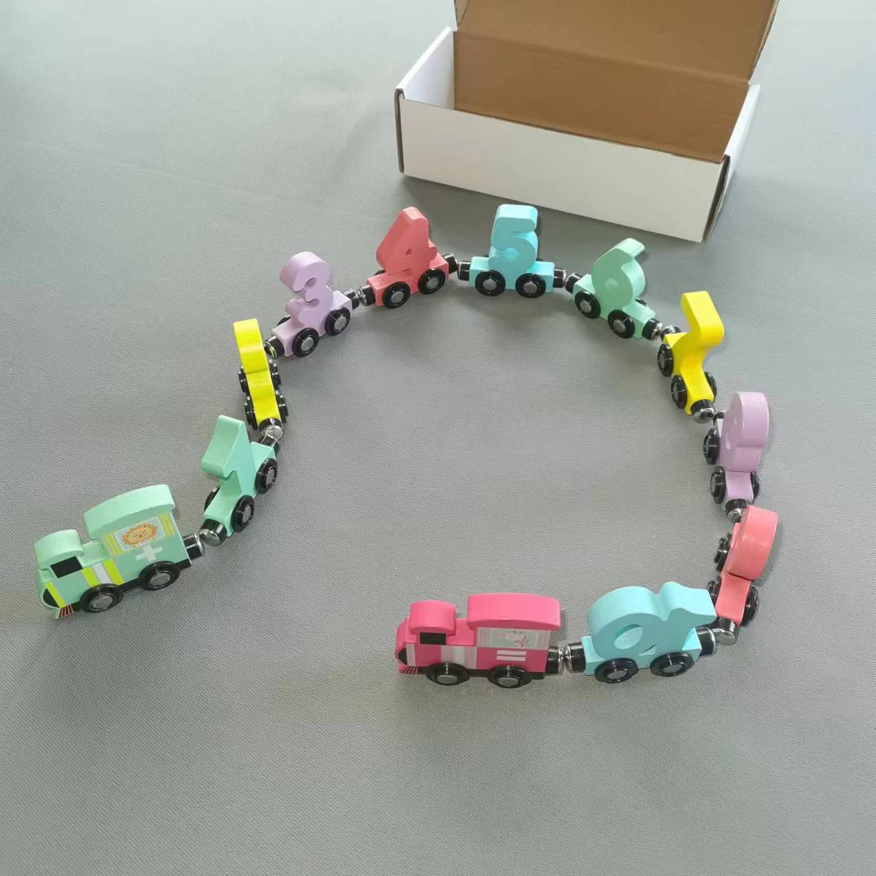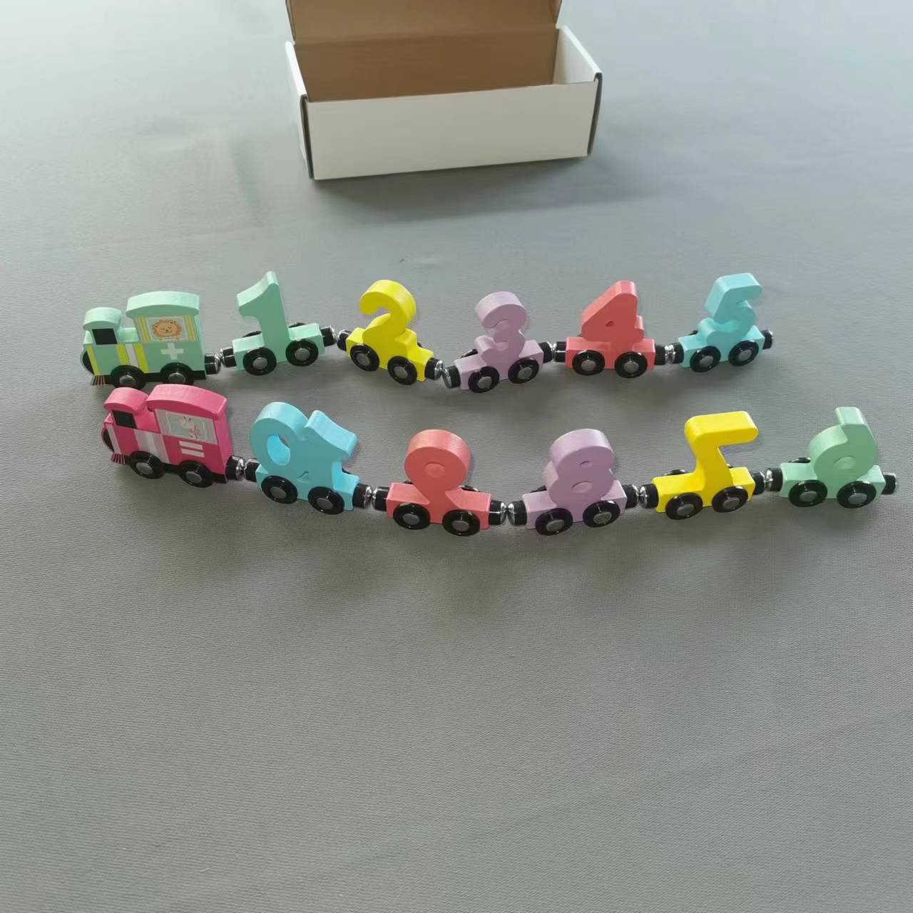Tren magnético de madera, bloques de construcción de ensamblaje cognitivo digital, educación temprana para niños pequeños, auto de juguete de arrastre personalizado