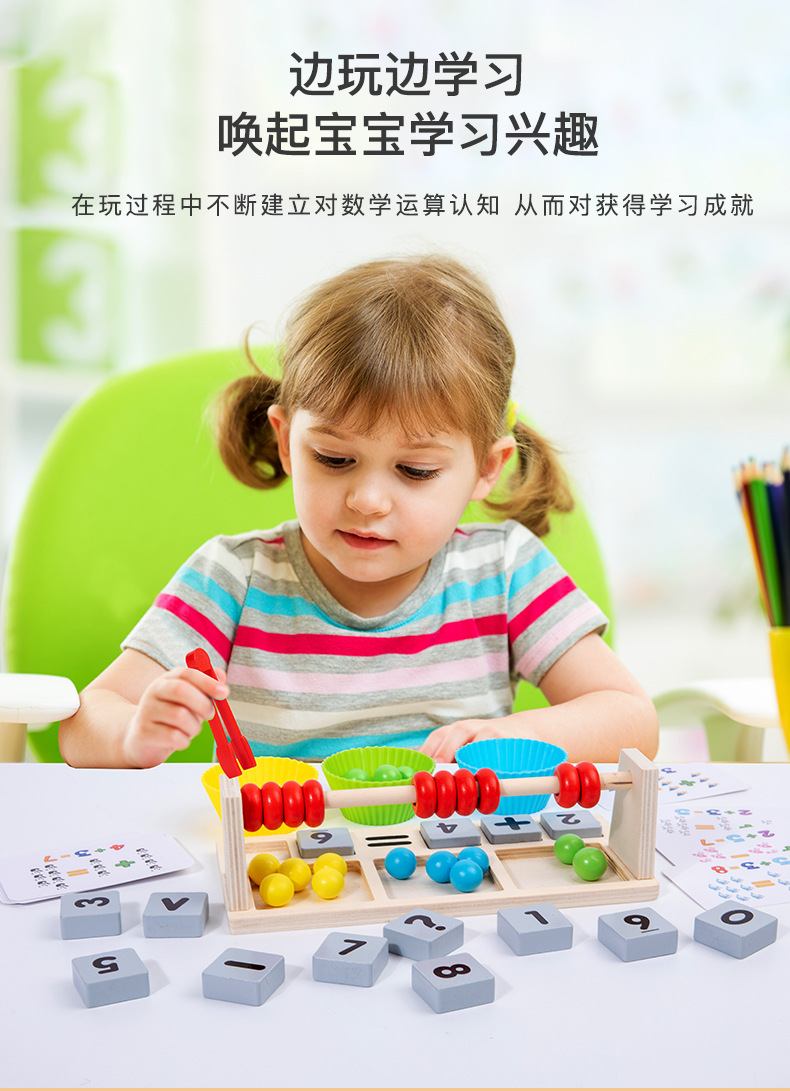 Cuentas de madera para niños computación digital tres en uno rack de computación Estudiantes de Escuela Primaria Educación Temprana iluminación educativa Abacus juguete