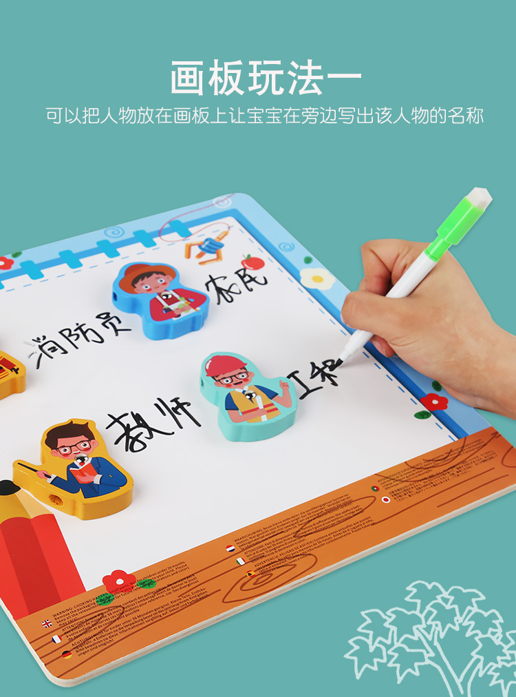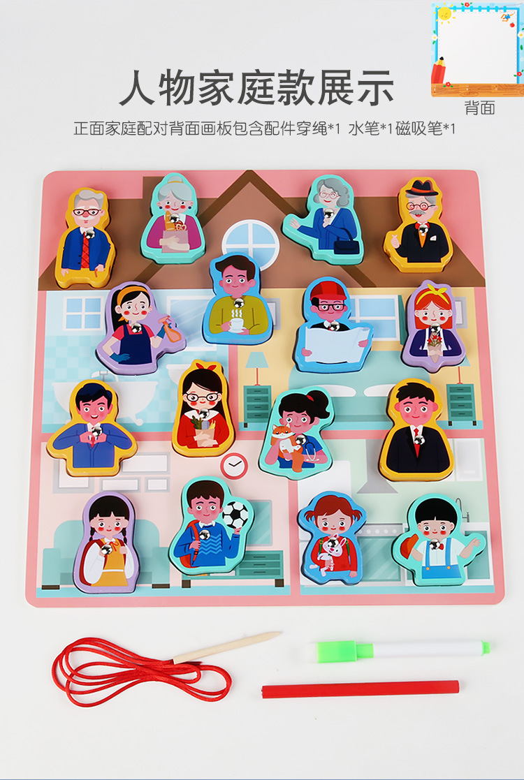 Tablero a juego multifuncional de doble cara de madera para niños Tablero de dibujo de cuerda con cuentas de la cognición del carácter de los niños educación temprana juguetes educativos