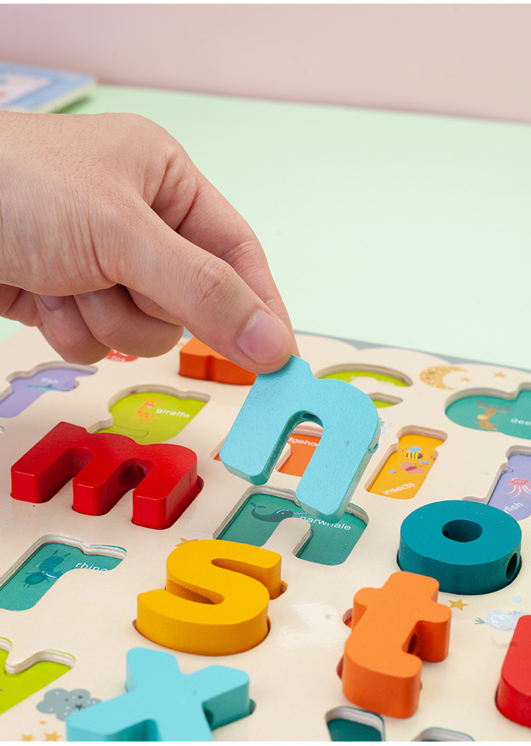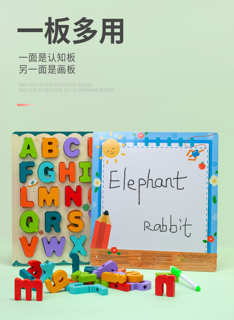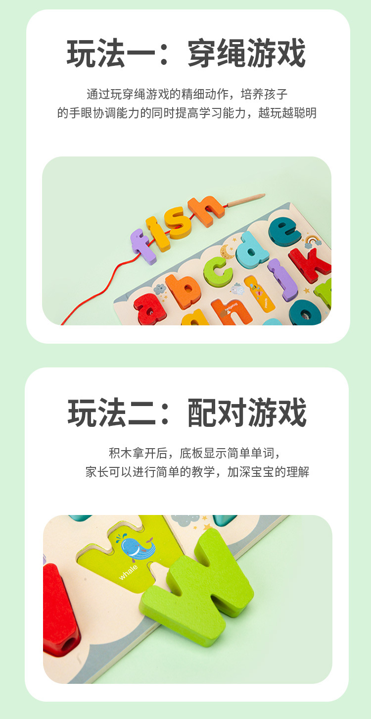 Letras y números de doble cara de madera para niños Bloques de construcción tablero a juego Tablero de dibujo de cuerda con cuentas juguetes educativos de educación temprana para niños