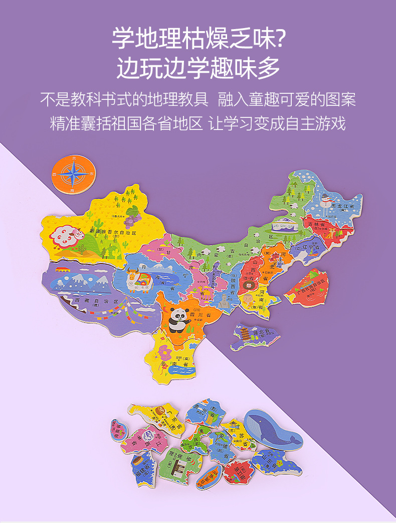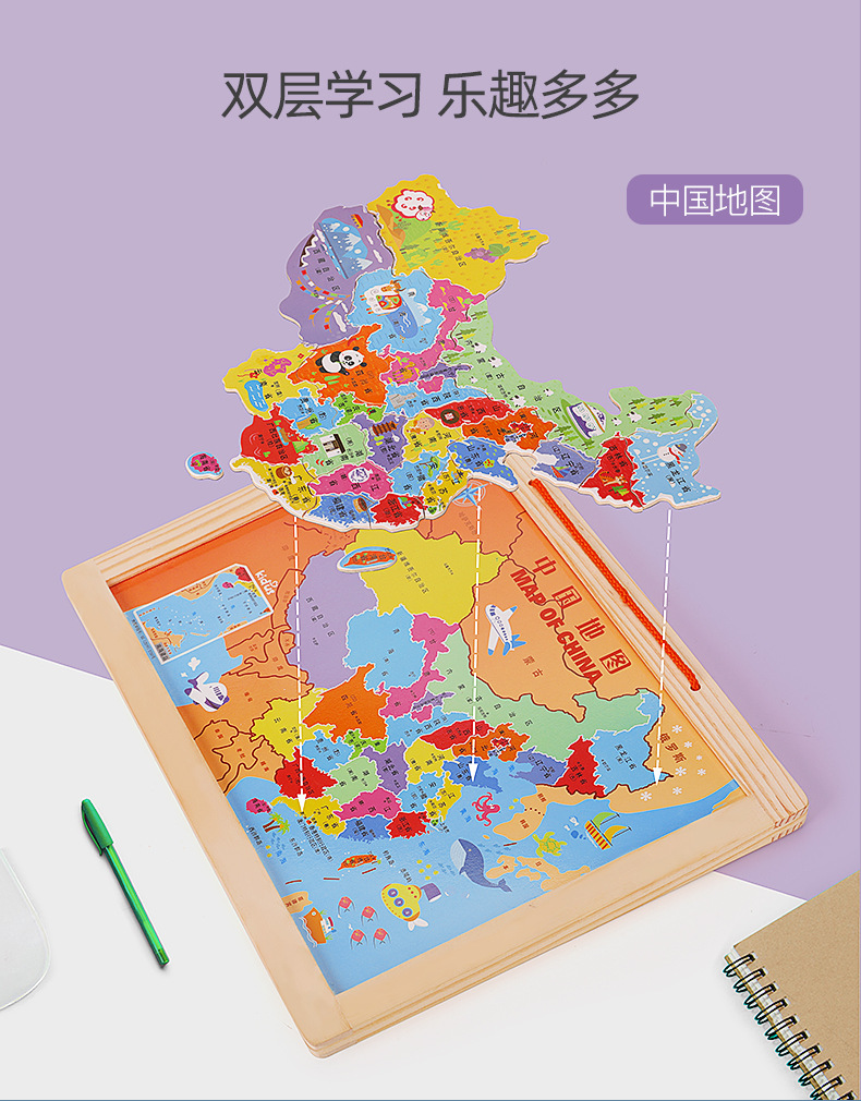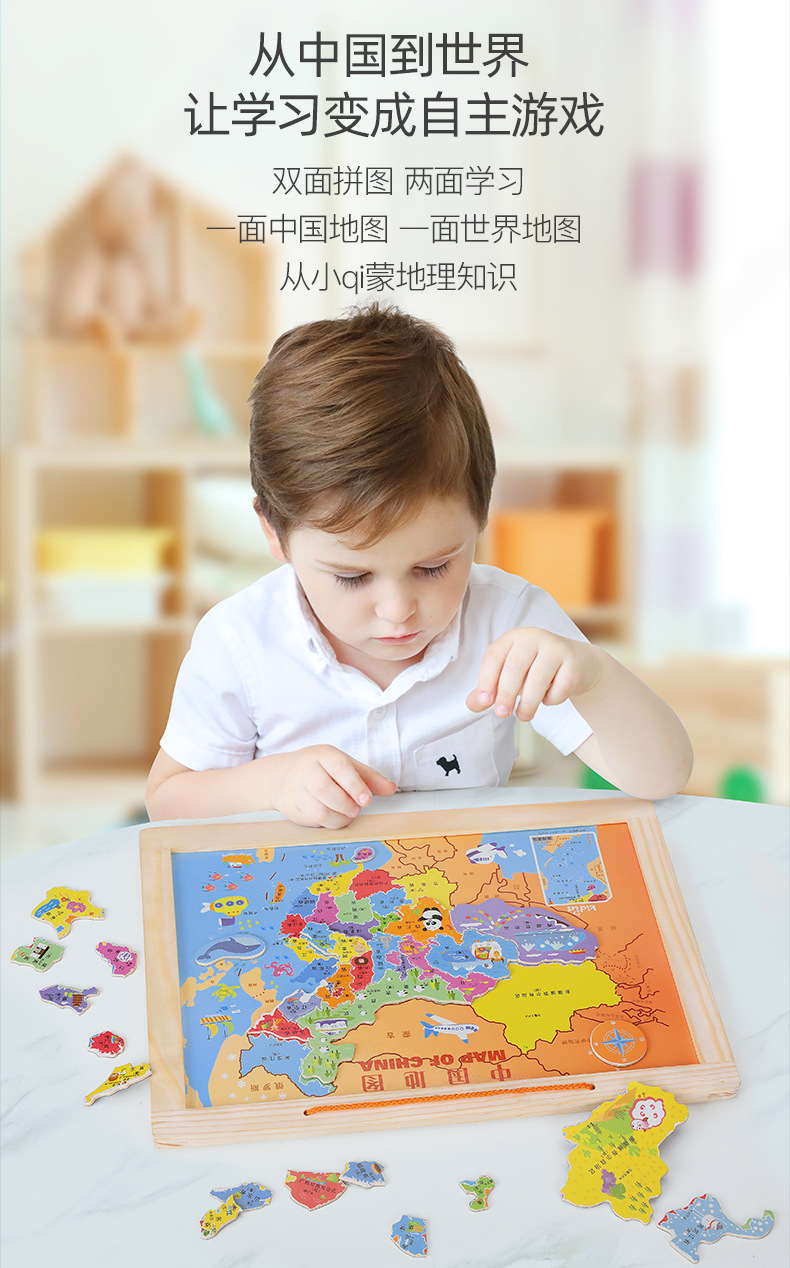 Mapa de China Mapa dos en uno Mapa del mundo Puzzle Geografía para niños Cognición Educación temprana Mapa magnético Personalización