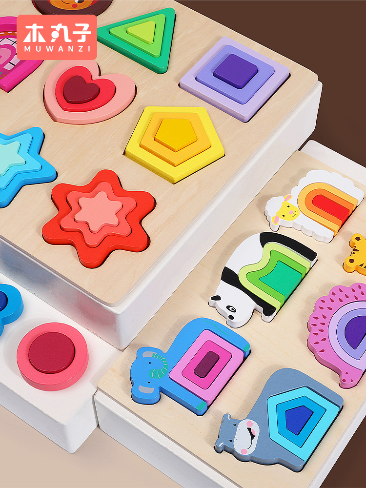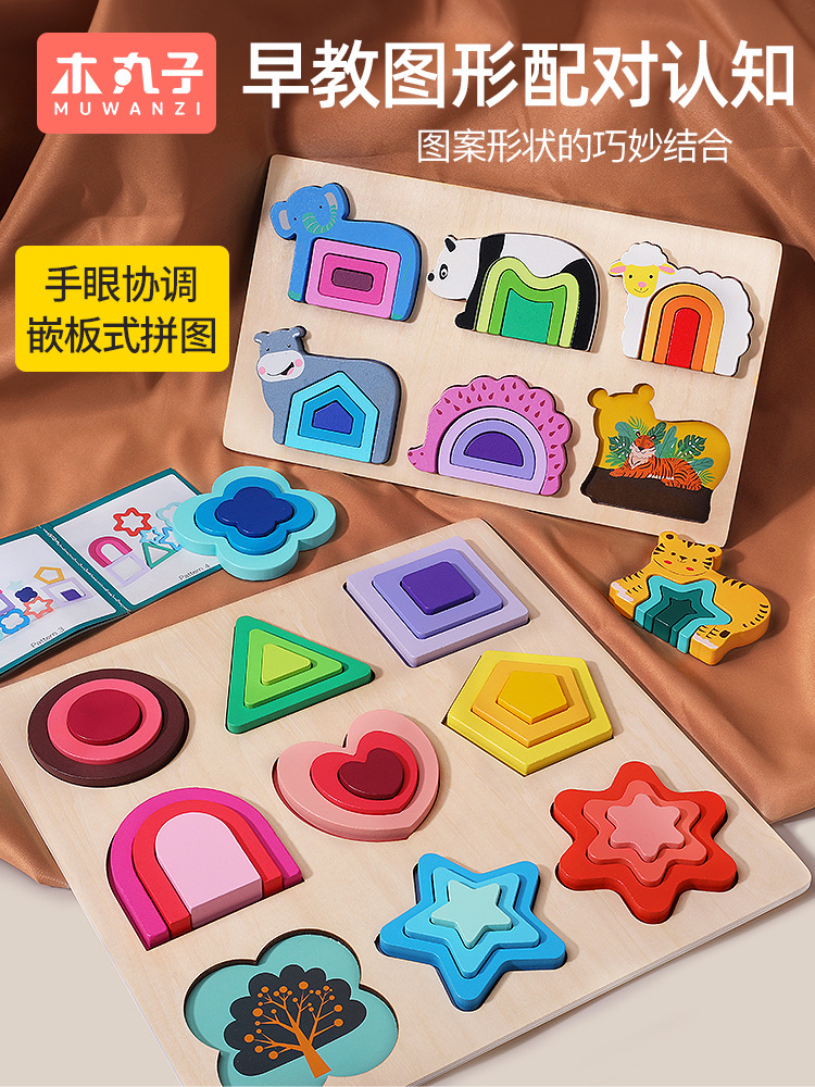 Juguetes de educación temprana, imposición, rompecabezas convexos, formas geométricas, combinación cognitiva, juguetes de madera personalizados para bebés de 1 a 3 años
