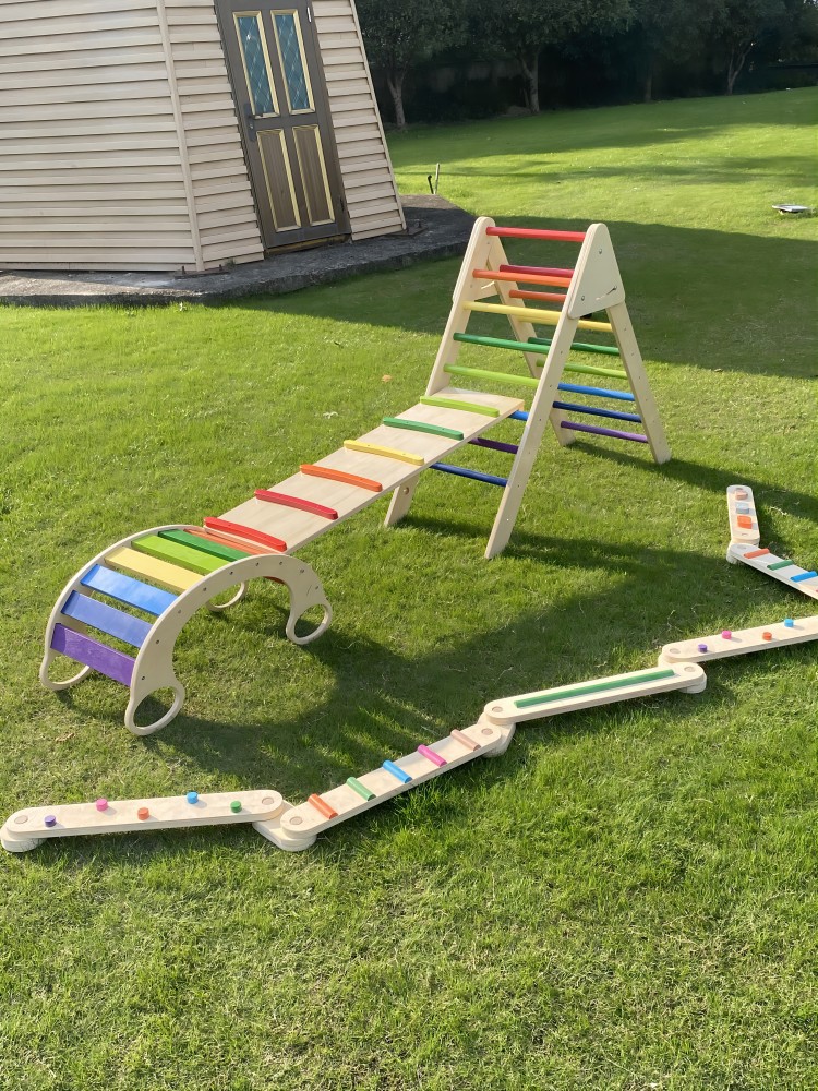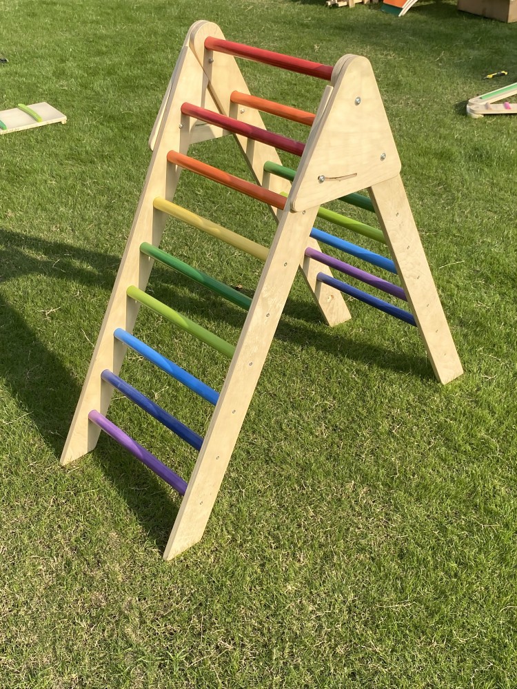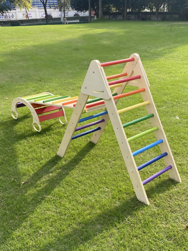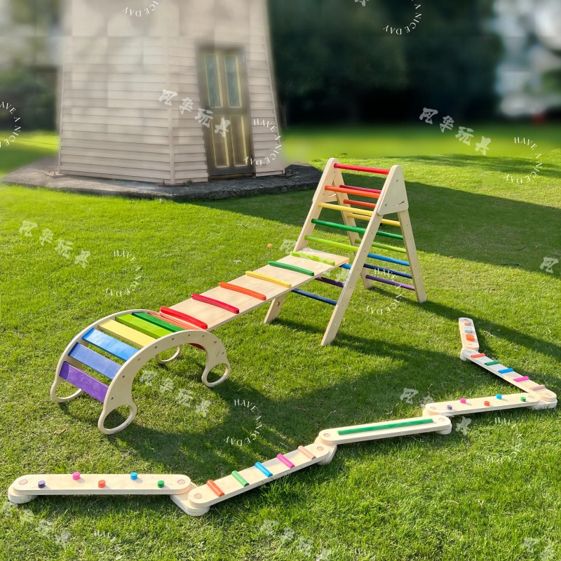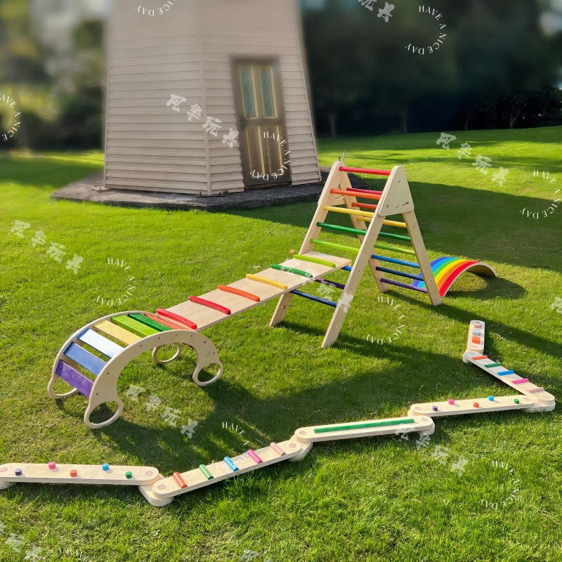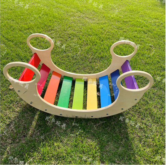 Educación temprana niños educativos de madera multifuncional Arco Iris mecedora equilibrio tablero escalada marco juguete interactivo jardín de infantes