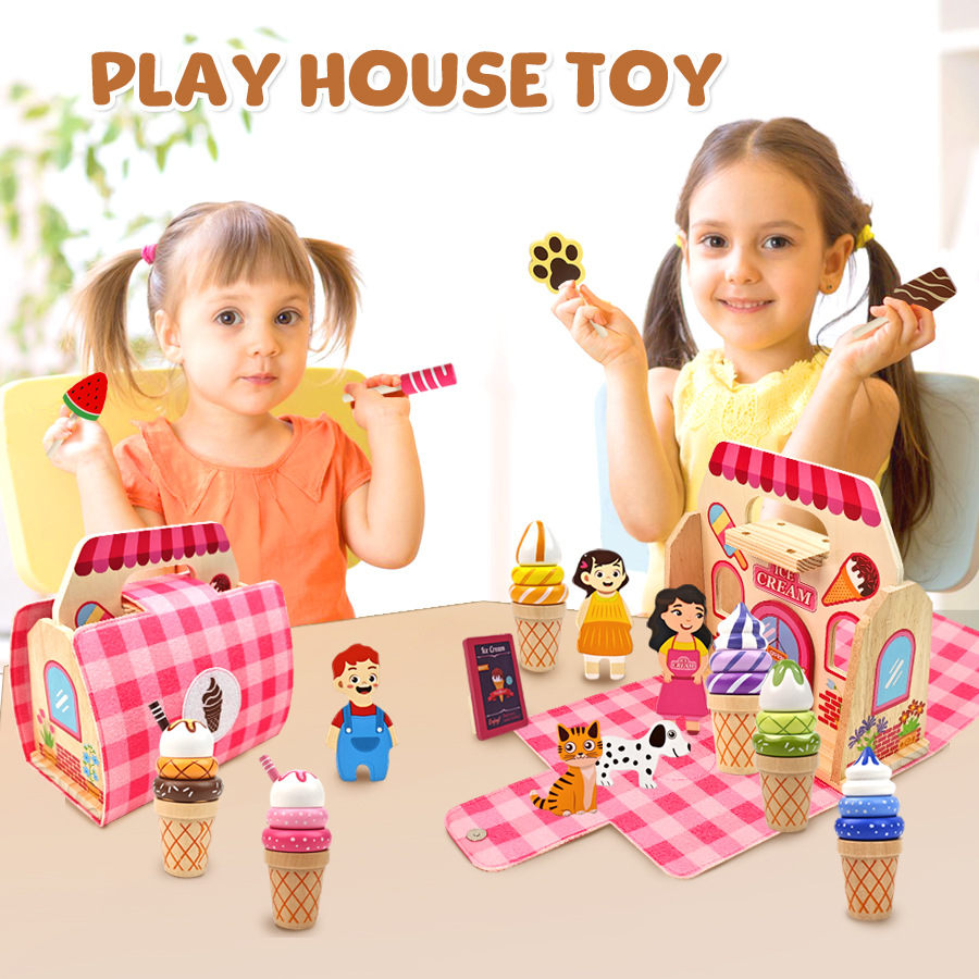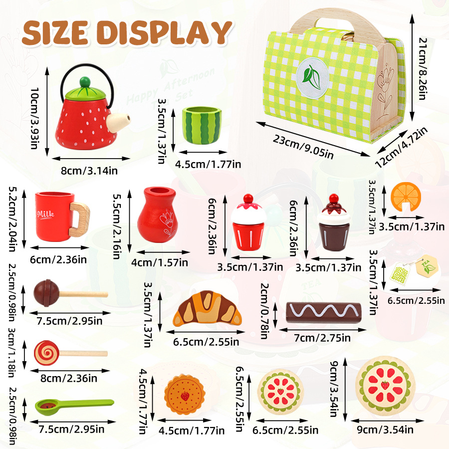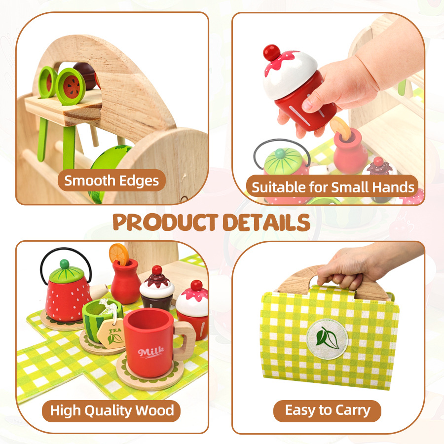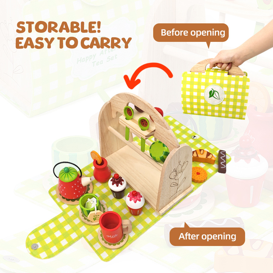 Té de la tarde para niños de madera transfronteriza, caja portátil, juego de té de simulación de personaje de bebé, juego de juguetes educativos