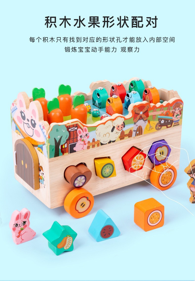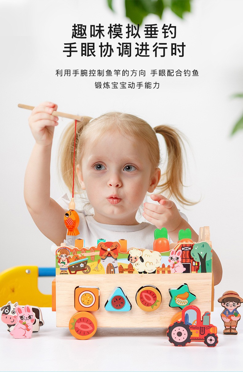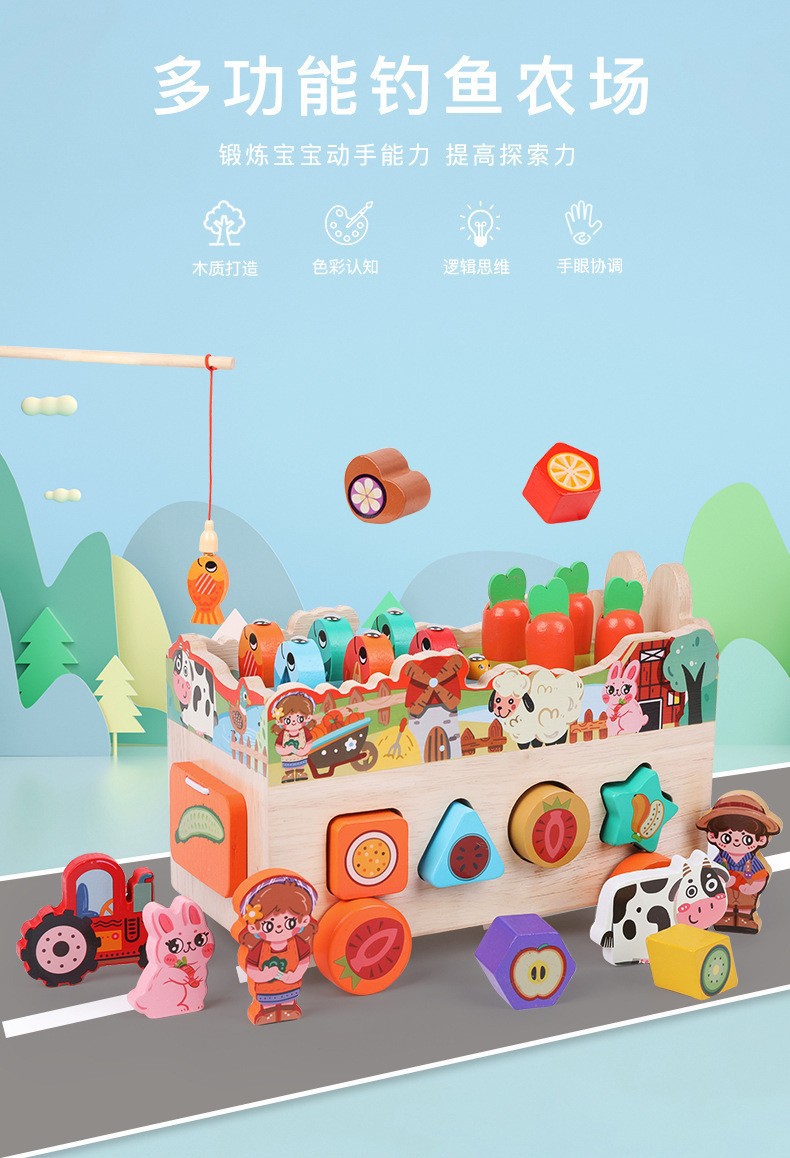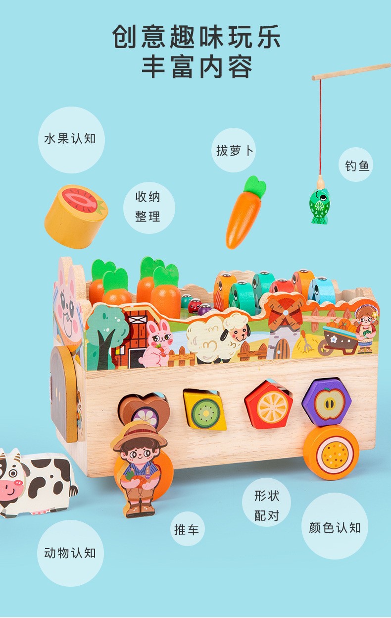 Montessori Educación temprana Multifunción Granja Animal Carrot Forma Combinaciones Cognitivo Pesca Rábano Niños y niñas Juguetes Personalización
