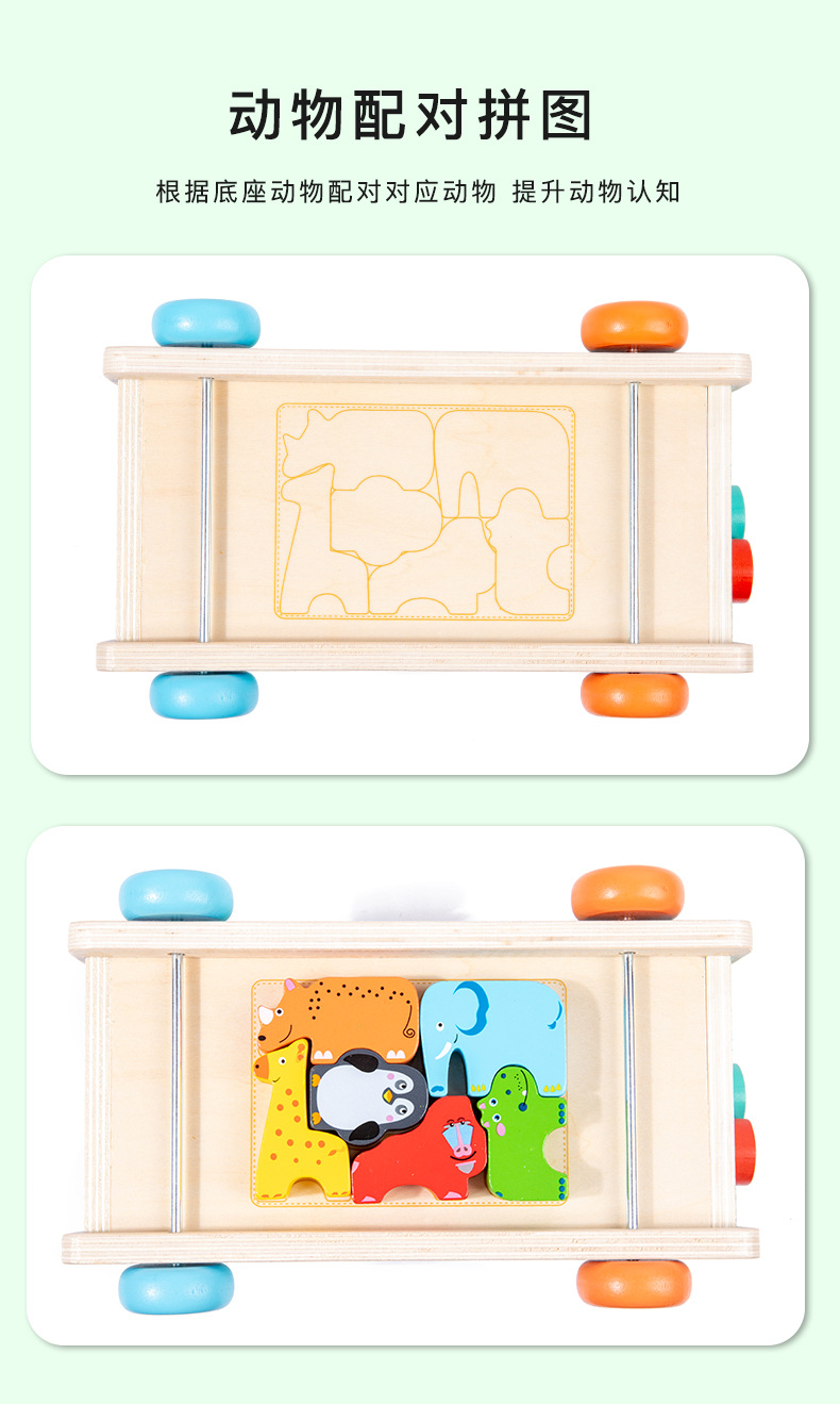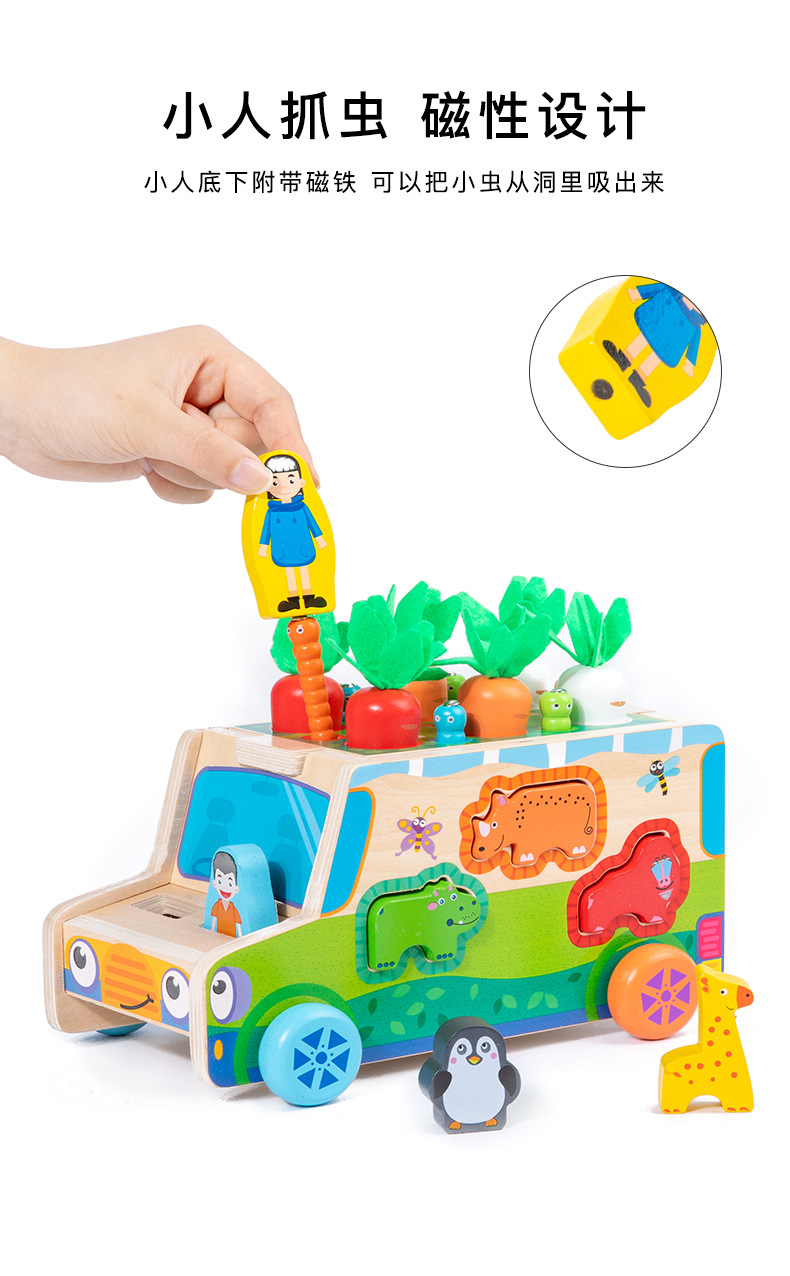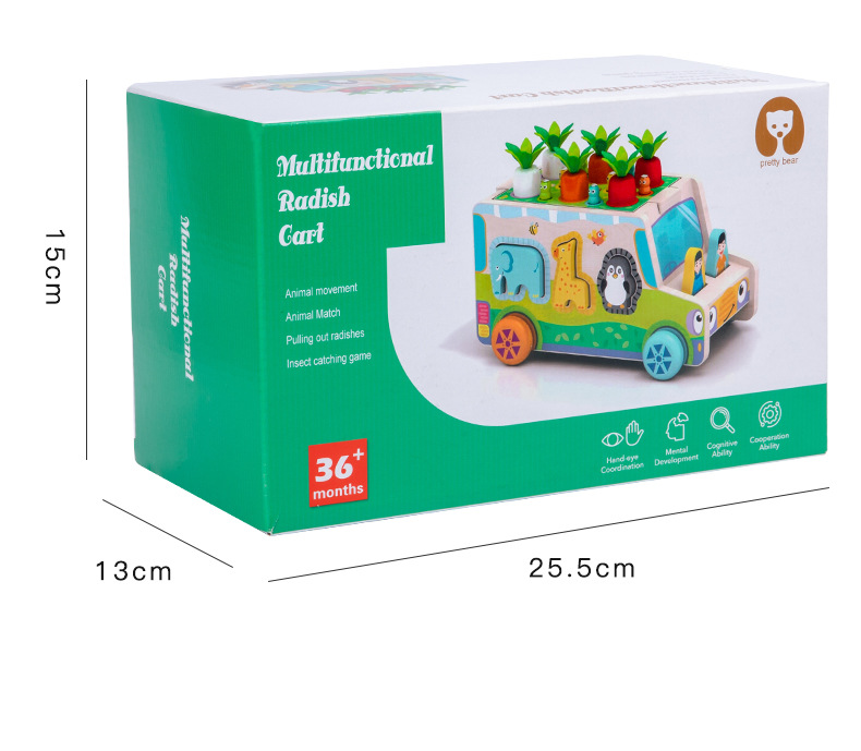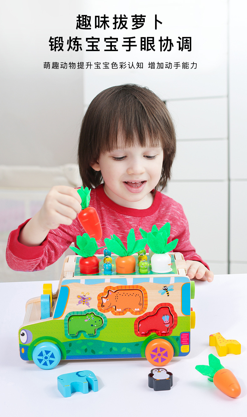 Juguetes educativos de madera para niños que arrastran y tiran zanahorias, formas y colores, coincidencia cognitiva, personalización del juego de posición de remolque
