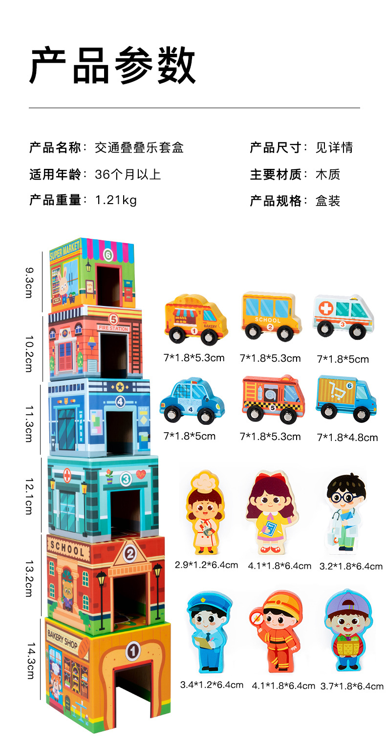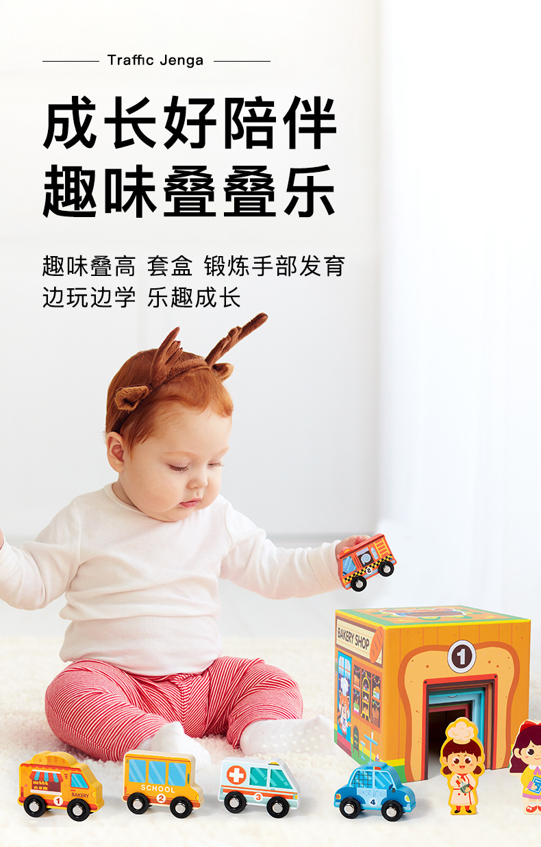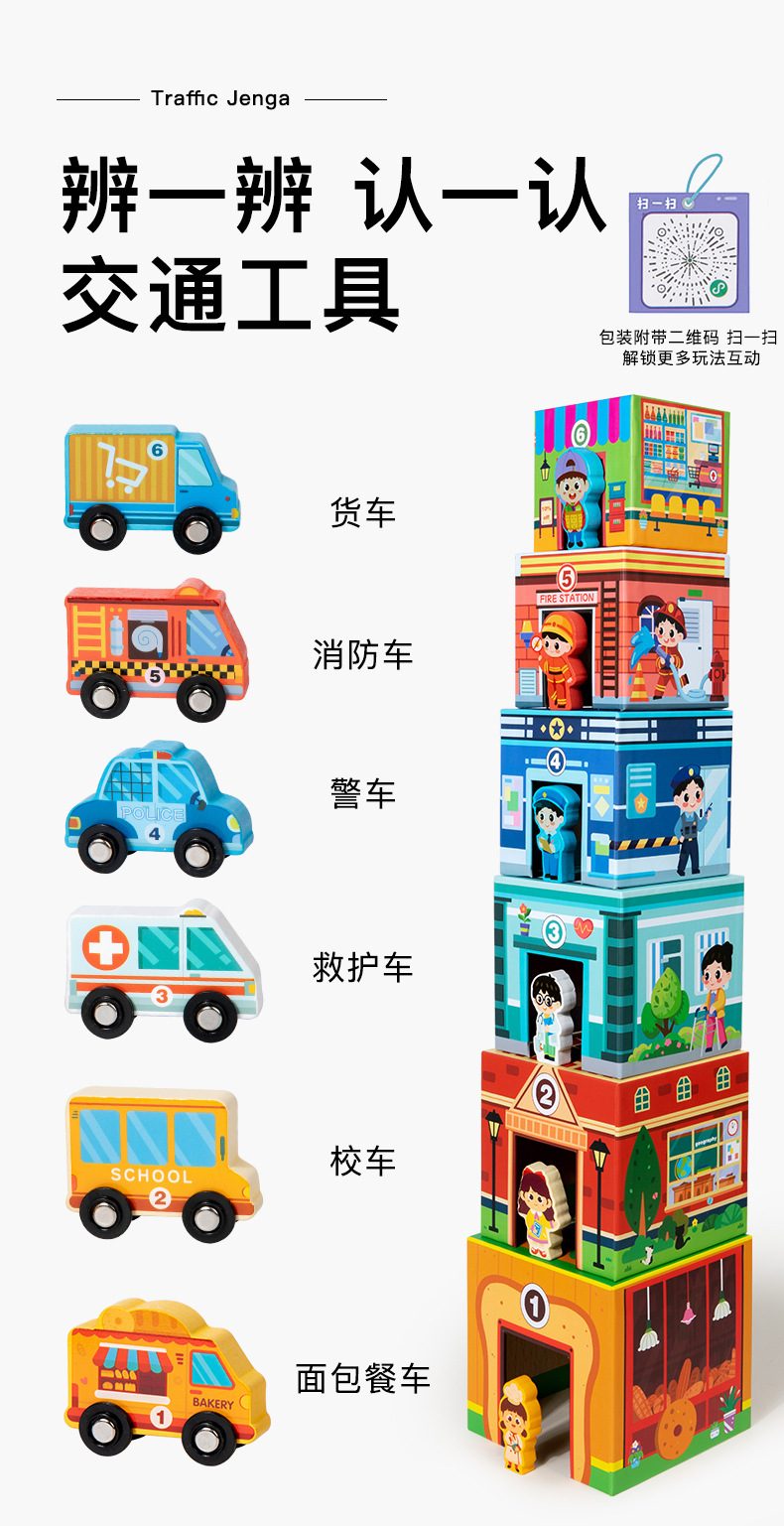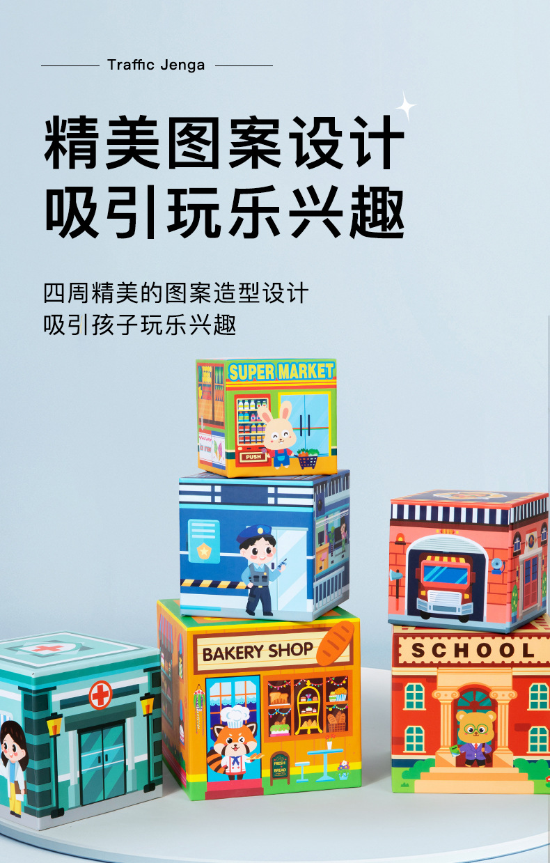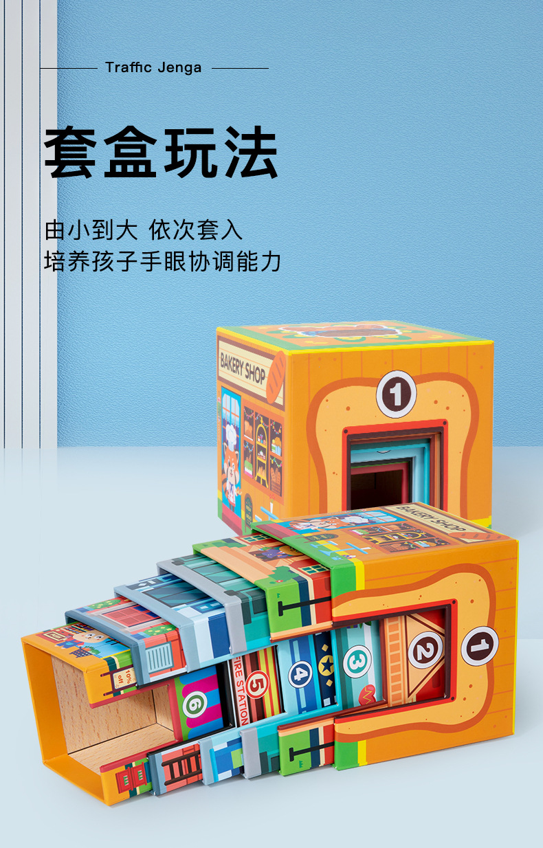 Venta directa de fábrica Juego de bloques de construcción de cinco piezas Caja de juguetes Coche de juguete Jenga Dile Juego creativo Juguetes educativos para niños