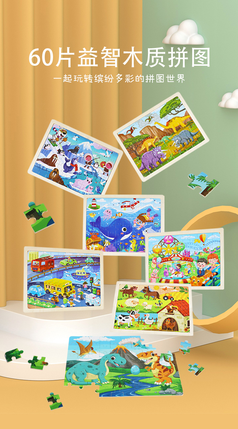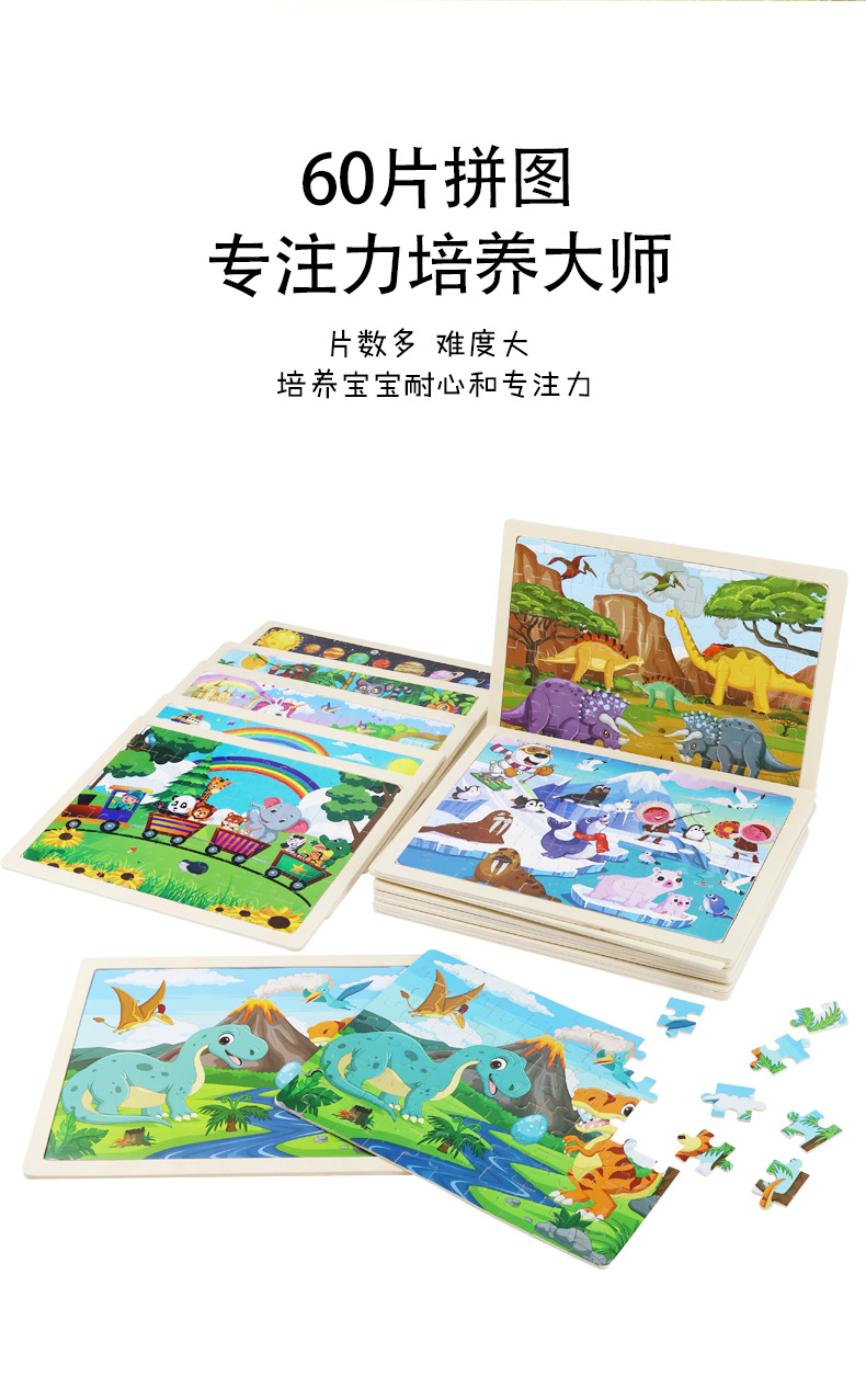 Juguetes educativos para niños para la educación temprana para bebés 60 piezas de borde de madera de color rompecabezas de entrenamiento de capacidad de pensamiento lógico