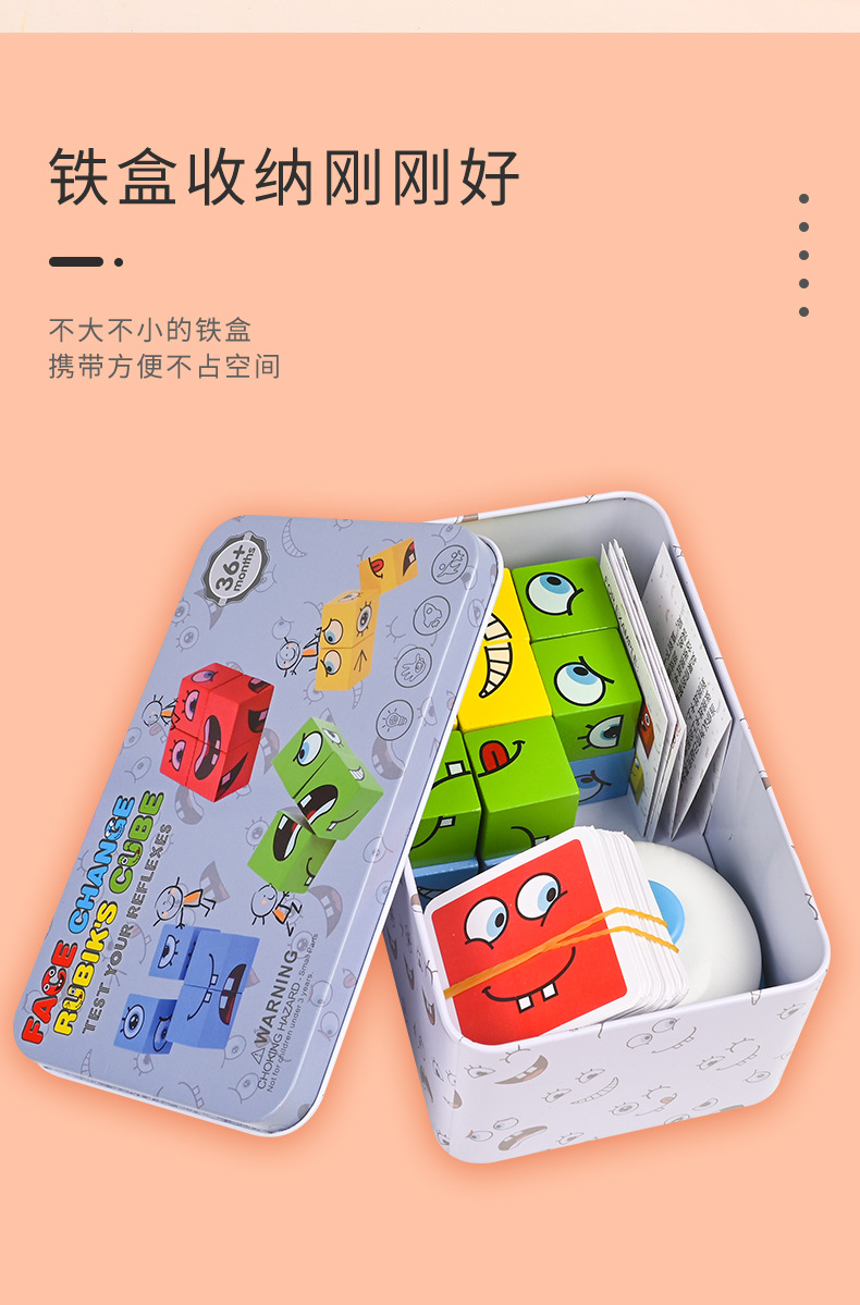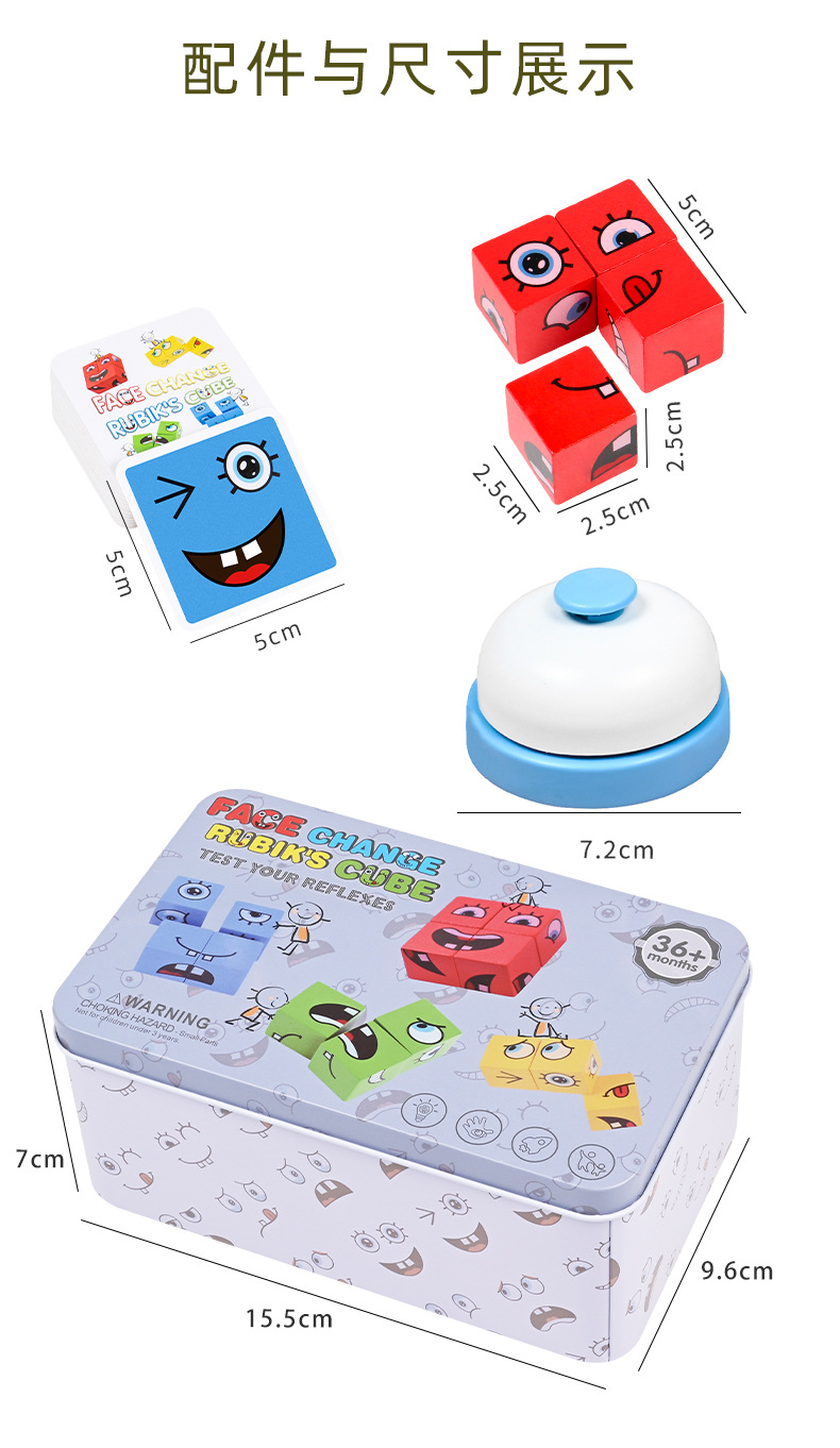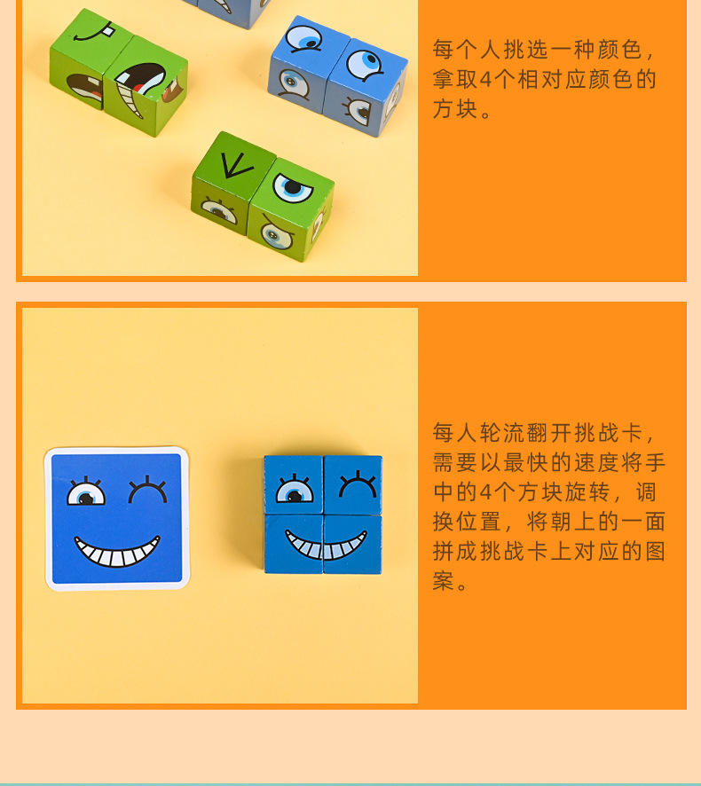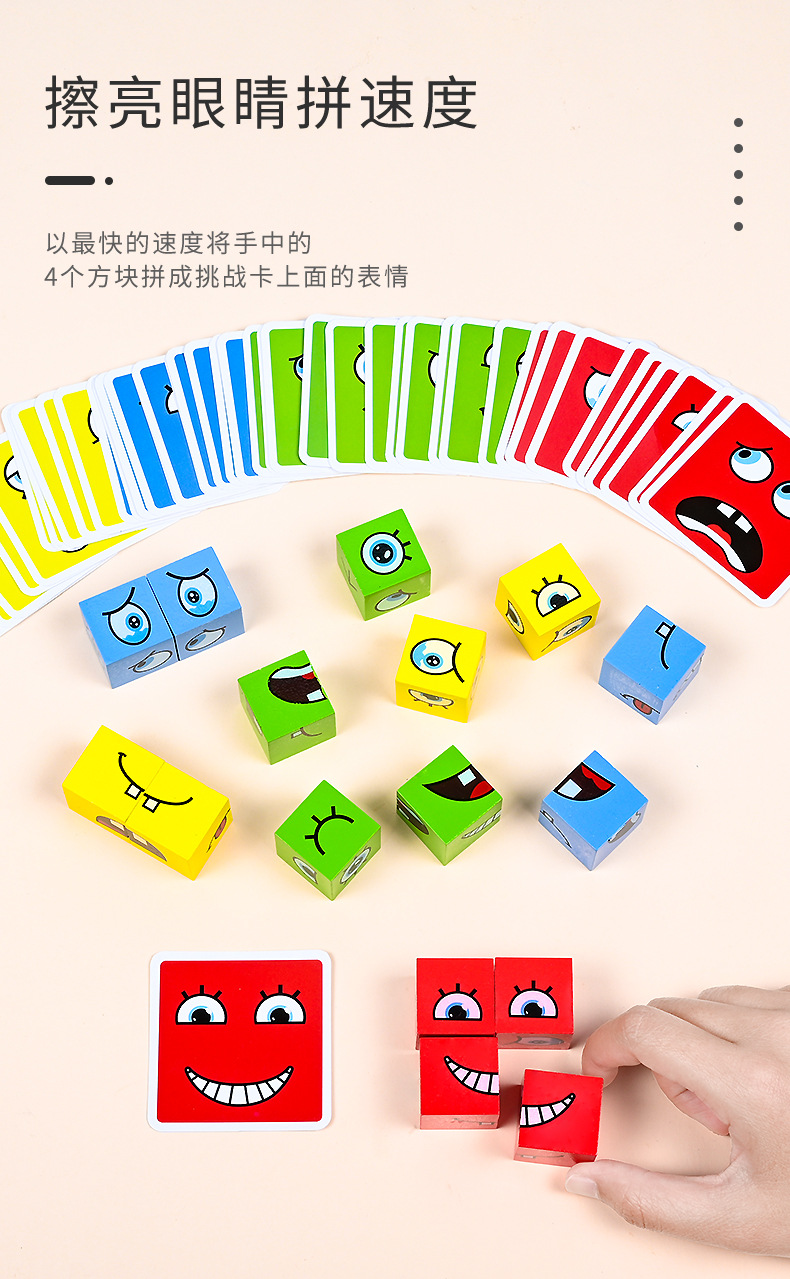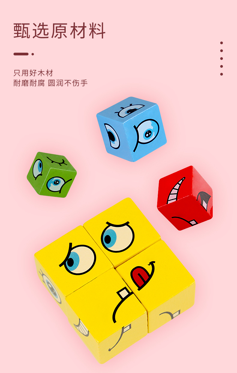 Bloques de construcción del cubo de Rubik que cambian de cara, pensamiento espacial para niños, educación temprana, juegos de mesa educativos, juegos interactivos entre padres e hijos, juguetes de madera sonrientes