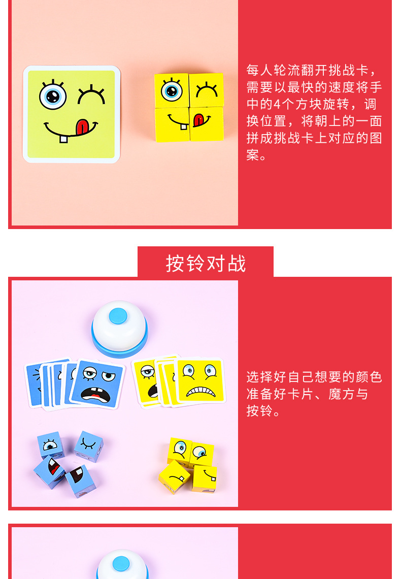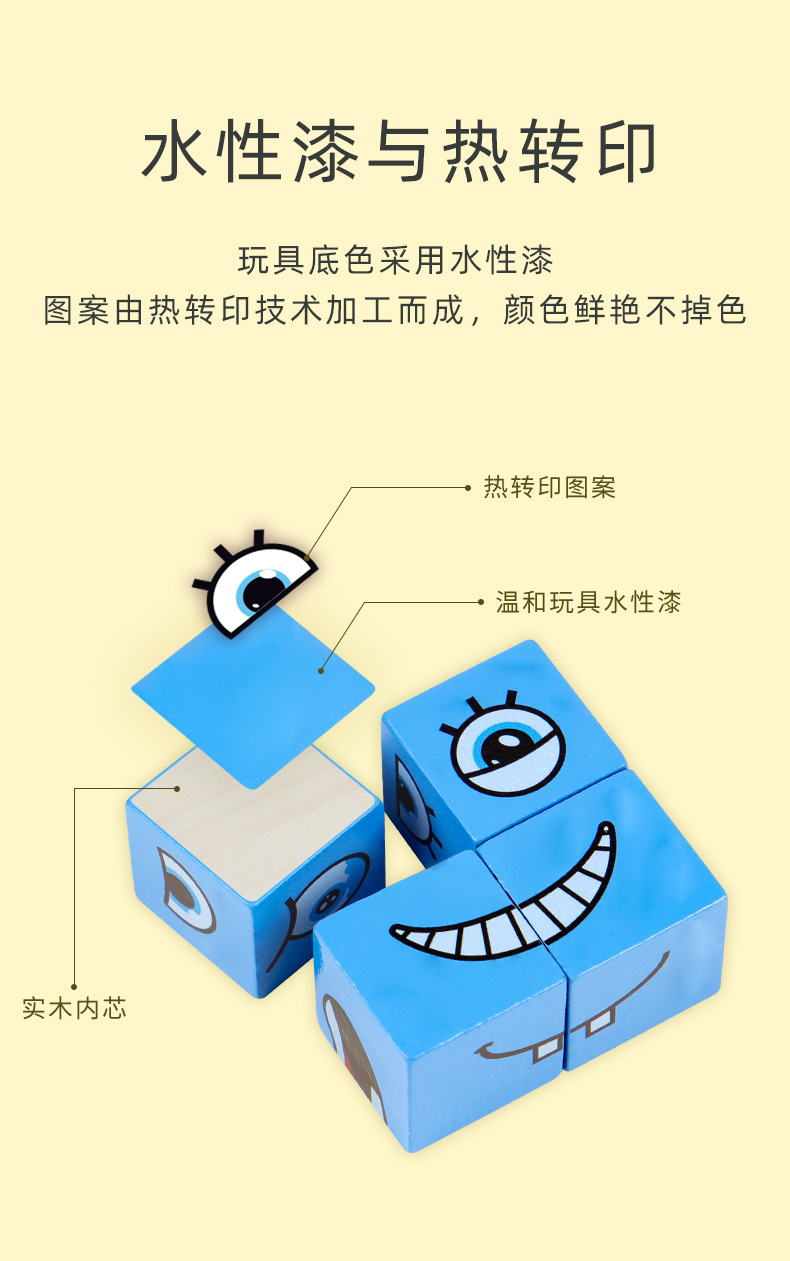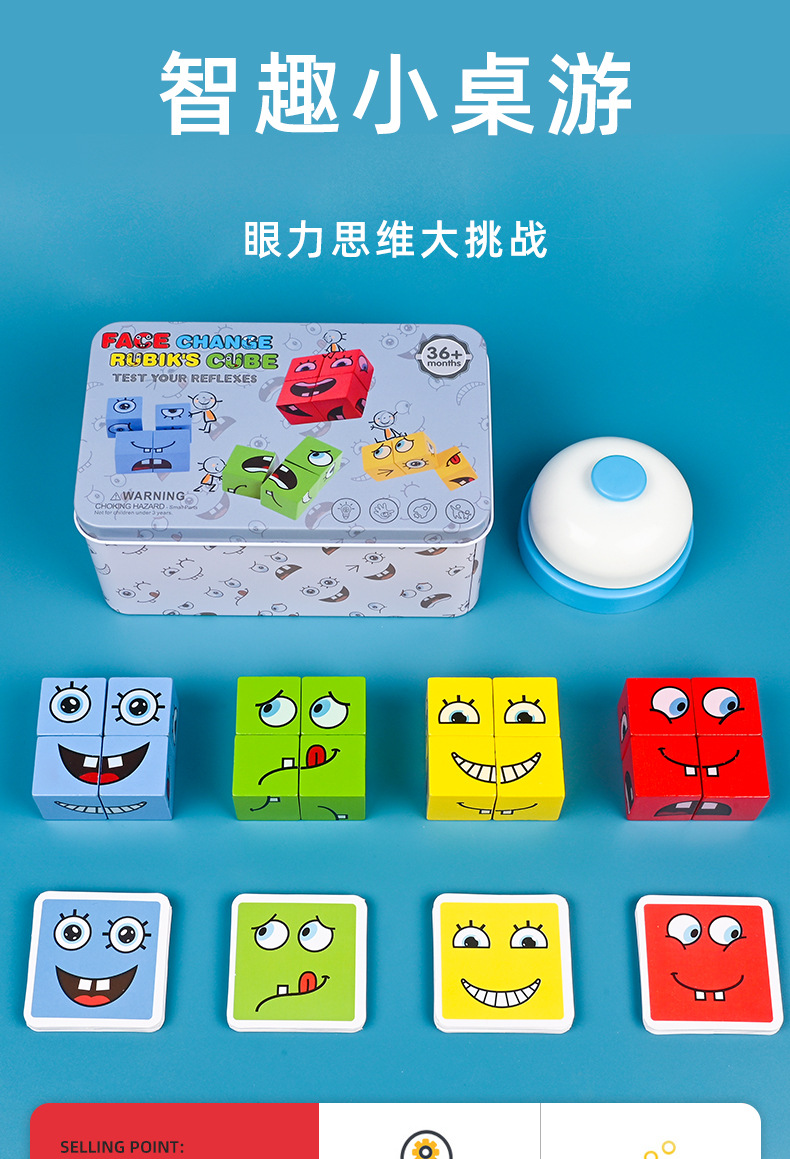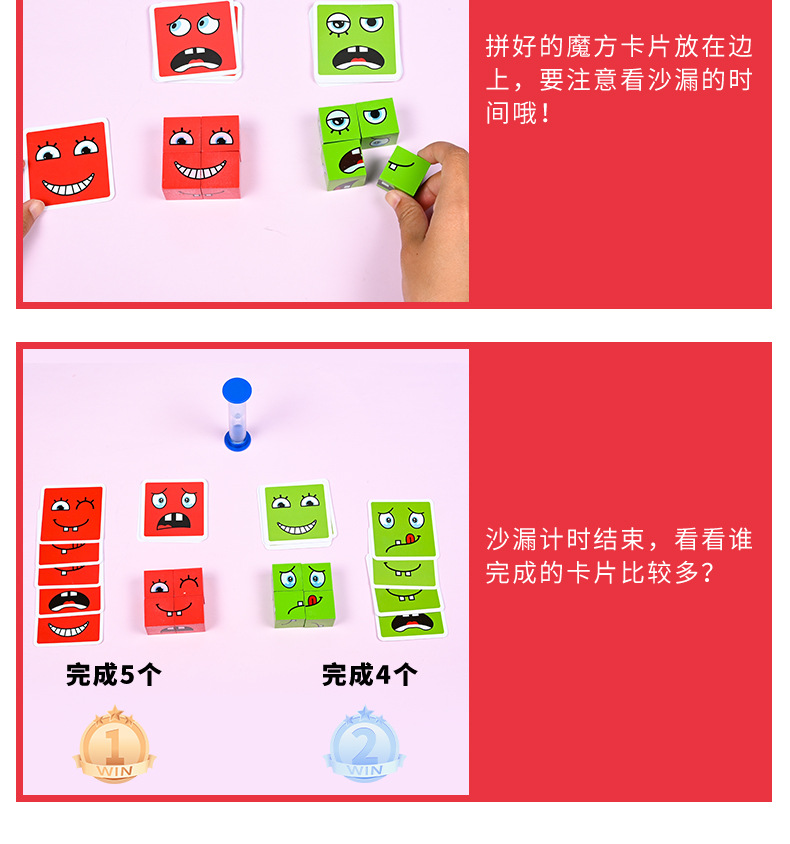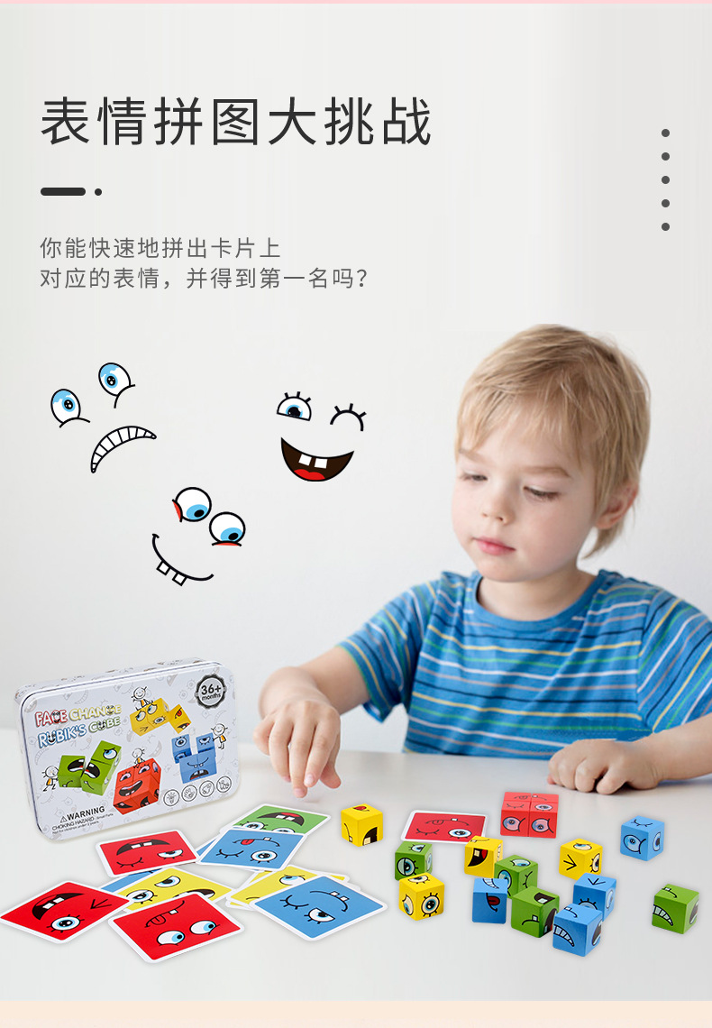 Bloques de construcción del cubo de Rubik que cambian de cara, pensamiento espacial para niños, educación temprana, juegos de mesa educativos, juegos interactivos entre padres e hijos, juguetes de madera sonrientes