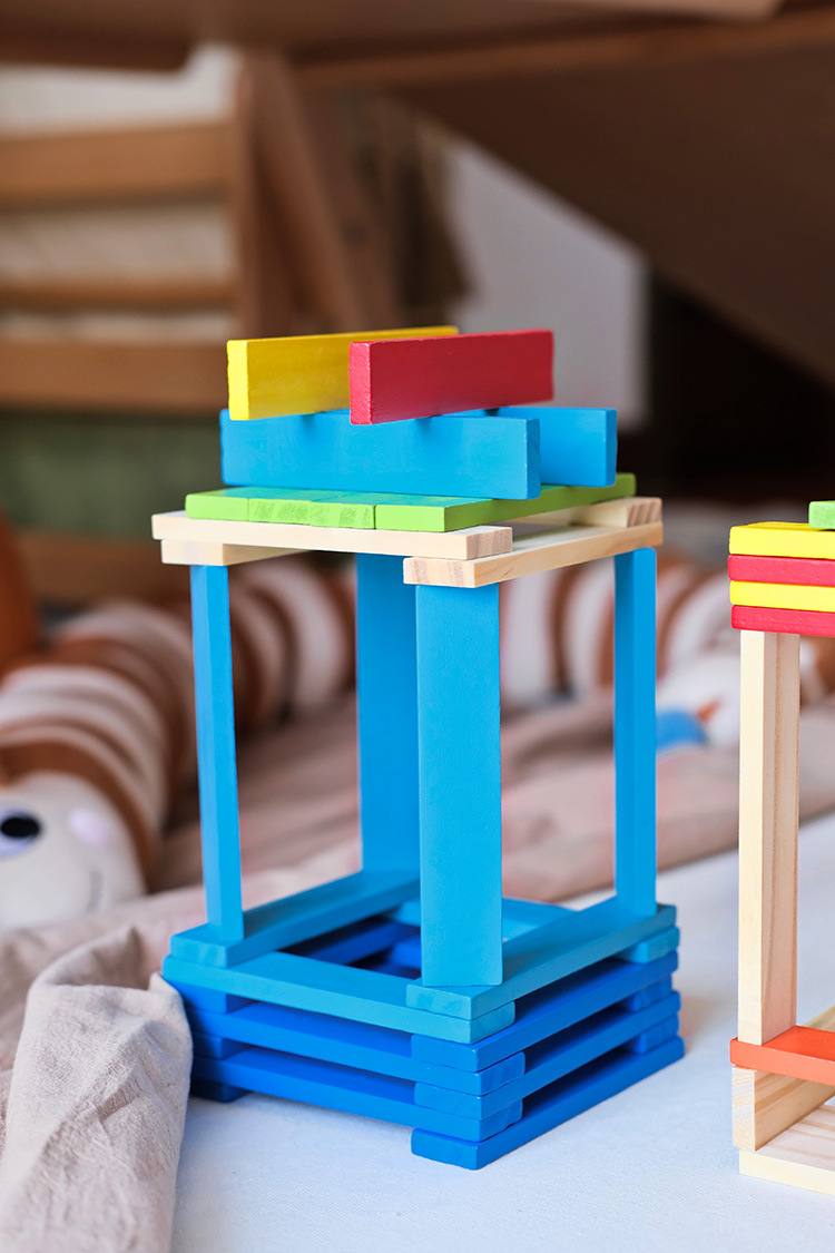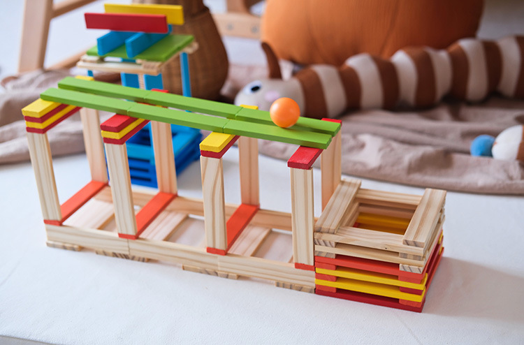 Palo de construcción de madera para niños tira de madera pura bloque de construcción de bloques de madera pila Torre 1-3-6 años de edad juguetes de inteligencia juguetes de educación temprana