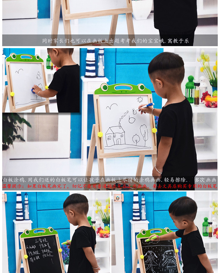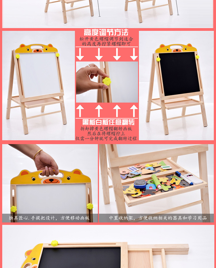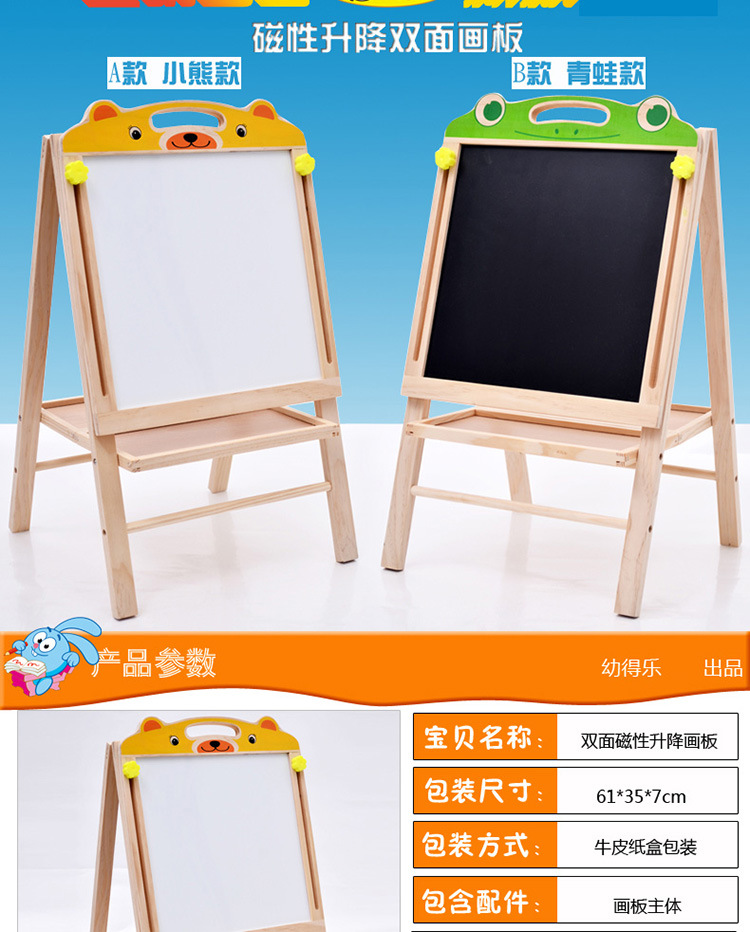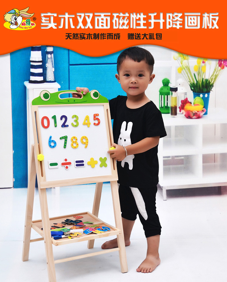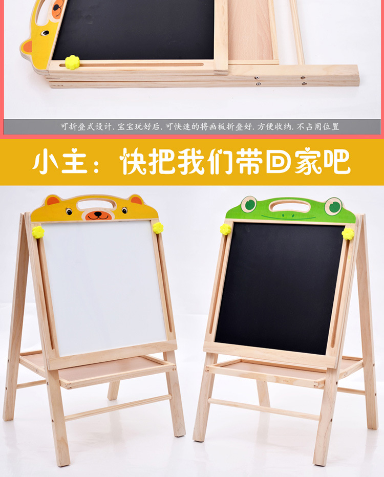 Pizarra de elevación de madera Pintura plegable Tablero de dibujo magnético Aprendizaje para niños Juguetes educativos Tablero de escritura tipo soporte de doble cara