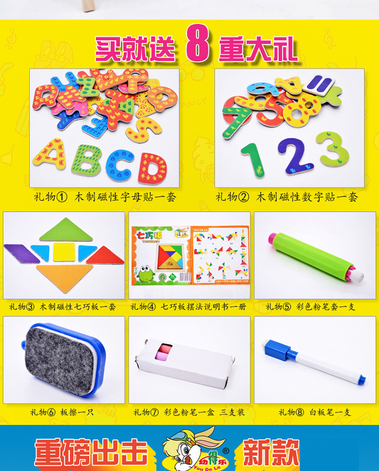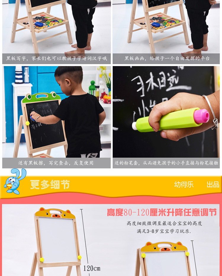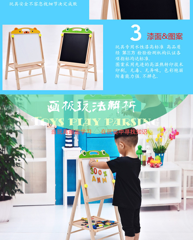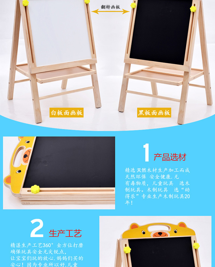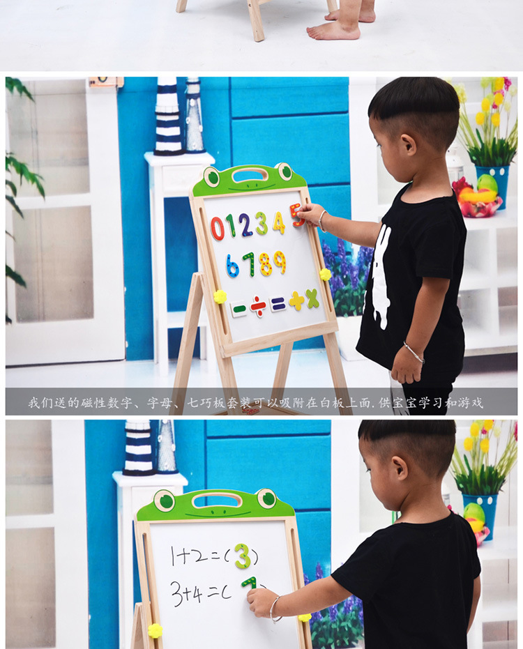 Pizarra de elevación de madera Pintura plegable Tablero de dibujo magnético Aprendizaje para niños Juguetes educativos Tablero de escritura tipo soporte de doble cara