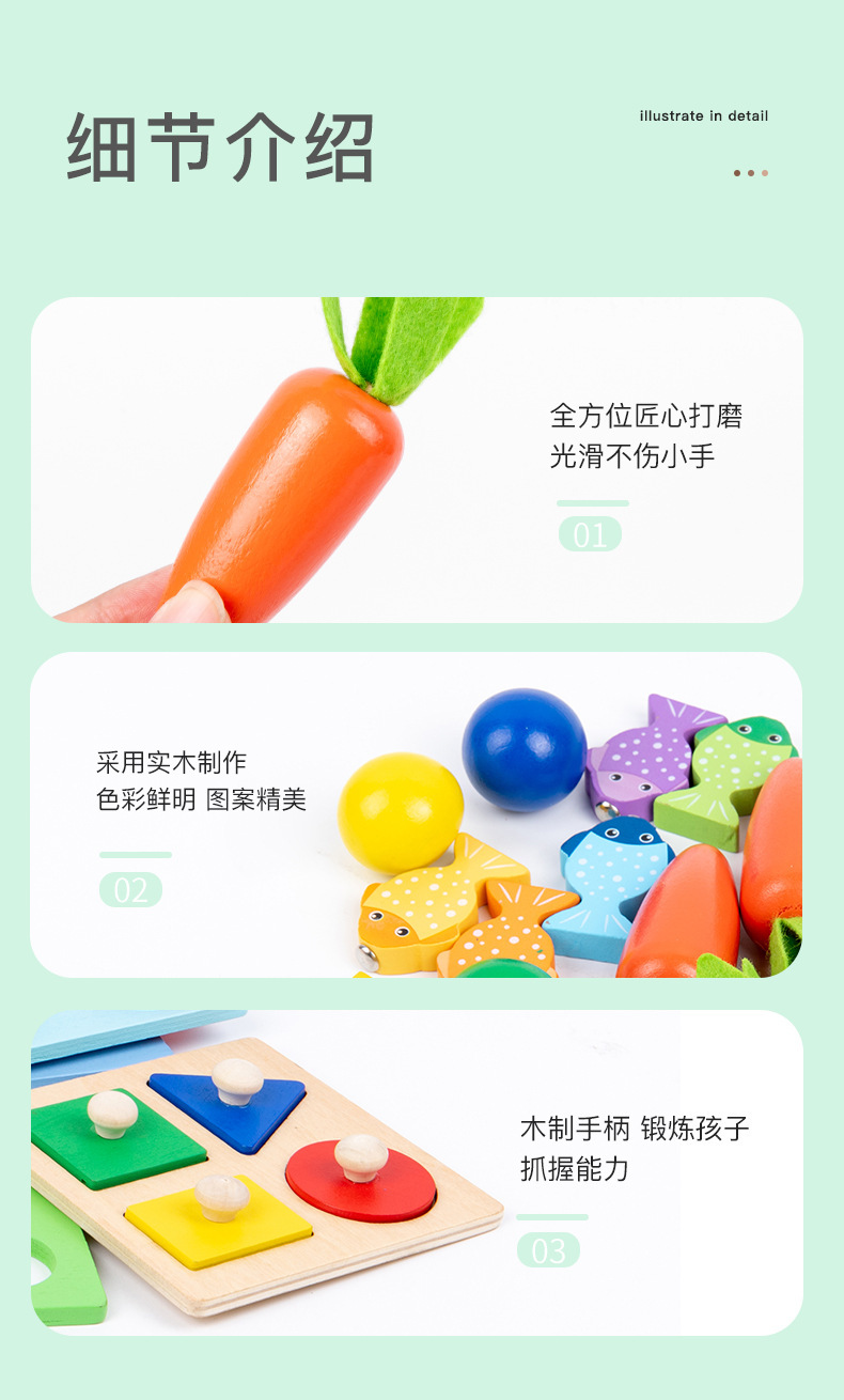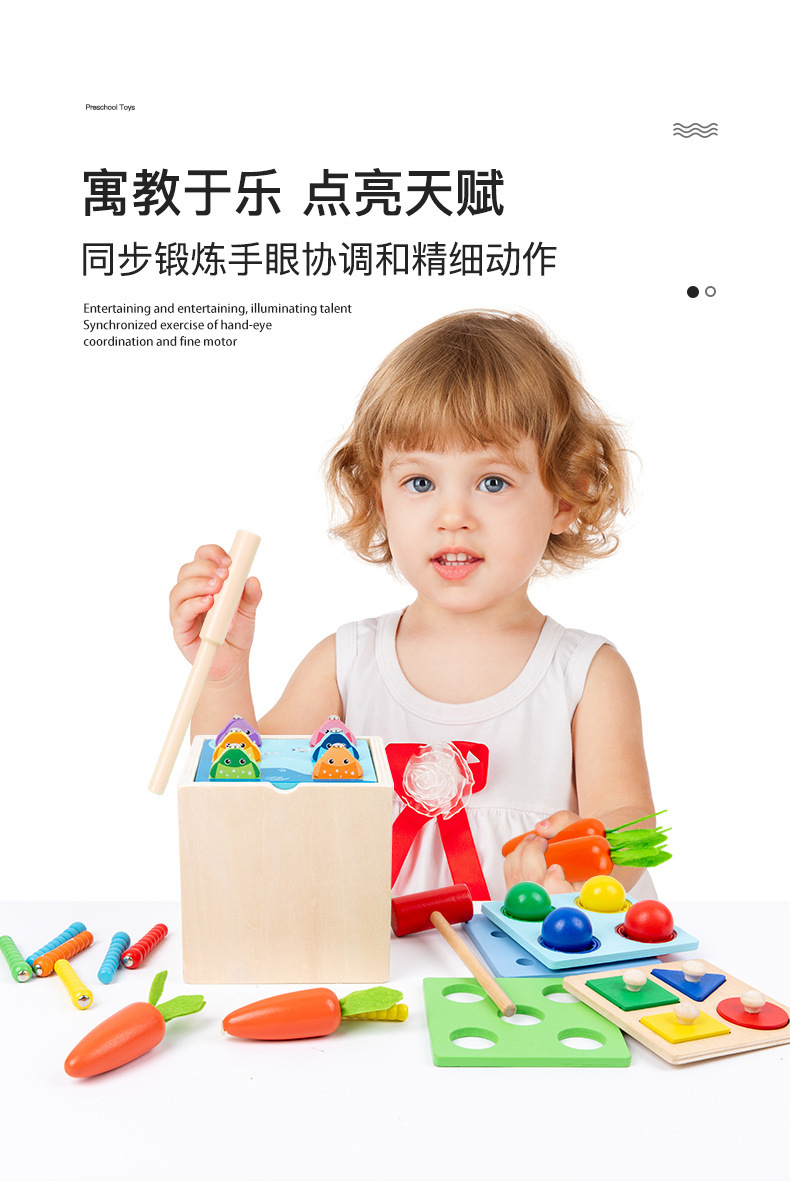 Niños de madera golpeando Mesa juego bebé Montessori educación temprana captura de insectos tirando rábano pesca mano-captura rompecabezas tablero