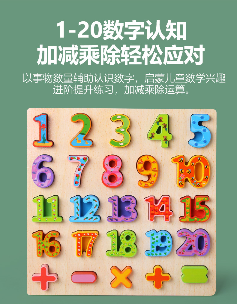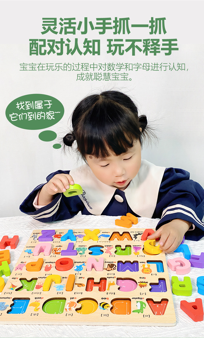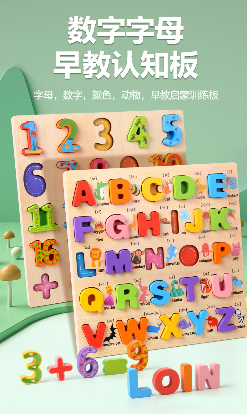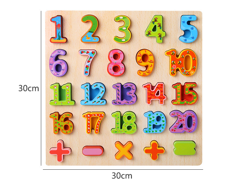 Tablero alfanumérico de madera transfronterizo Puzzle Montessori Cognitive Early Education Learning Caja de color a juego Tablero de agarre de mano Juguetes para niños