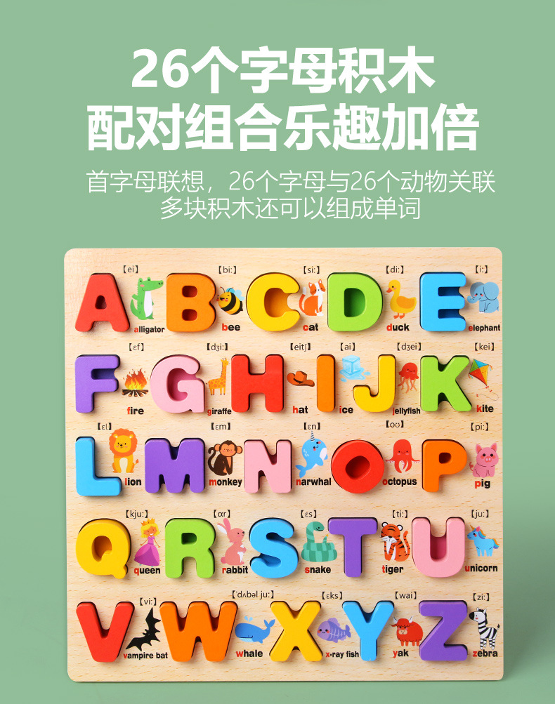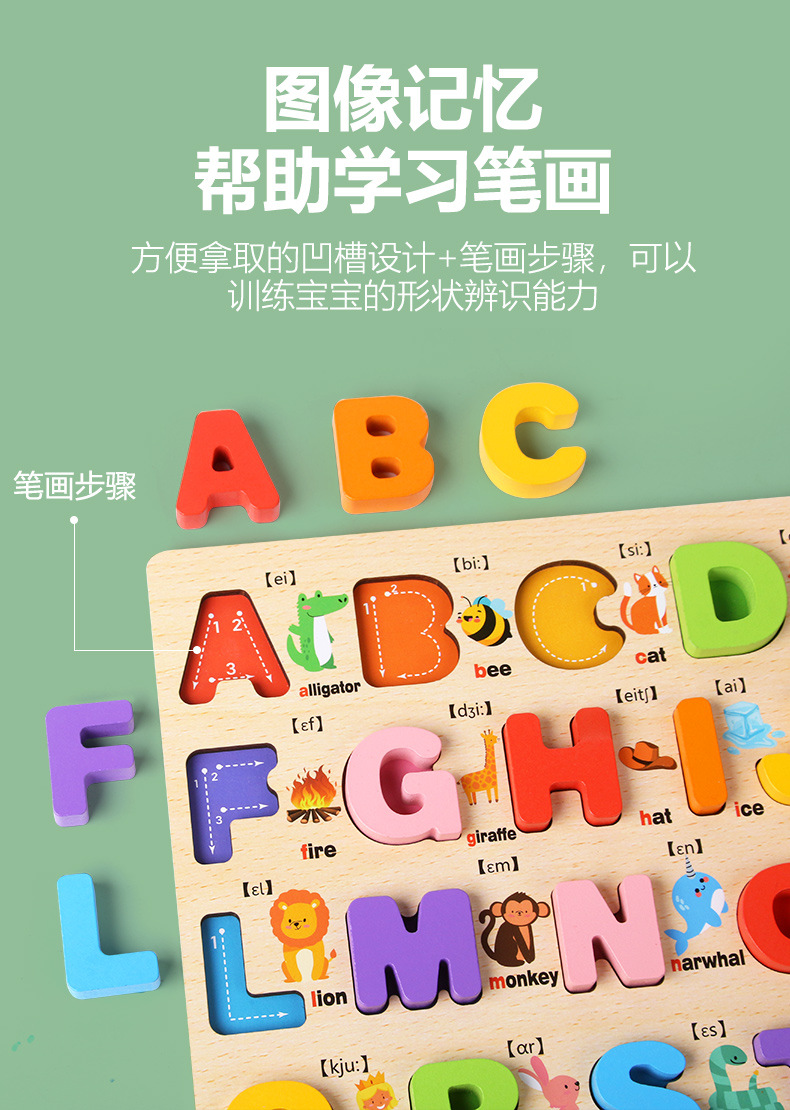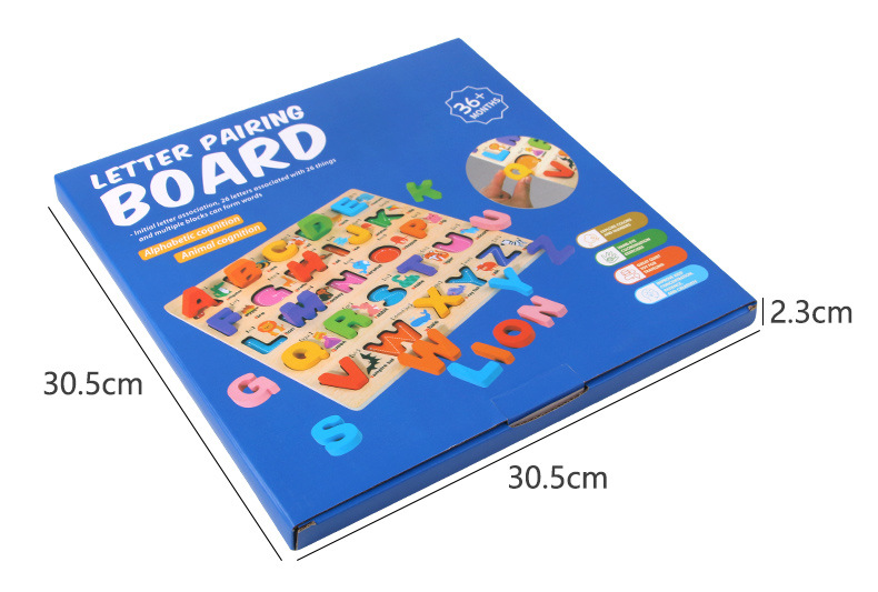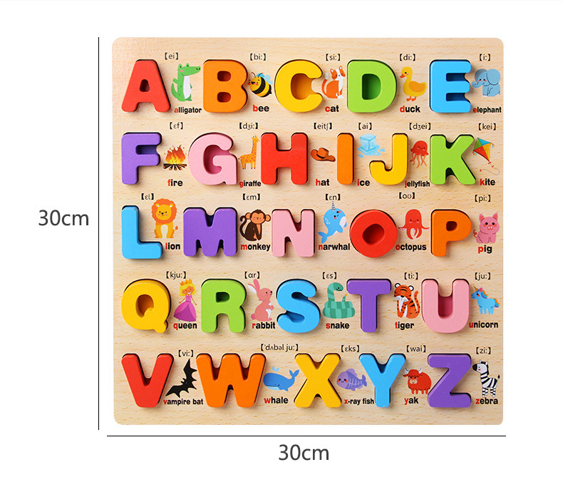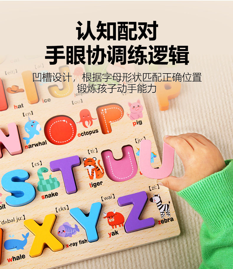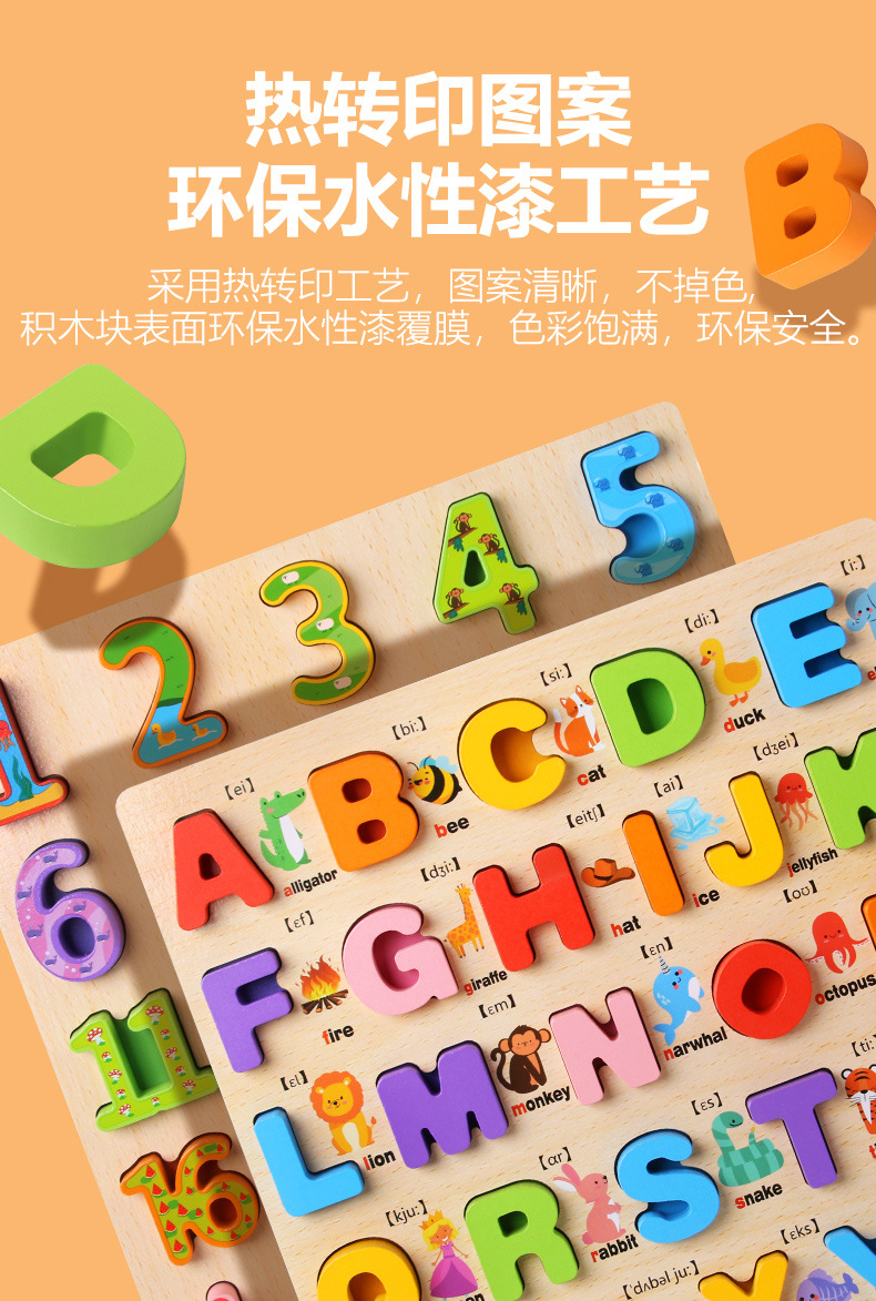 Tablero alfanumérico de madera transfronterizo Puzzle Montessori Cognitive Early Education Learning Caja de color a juego Tablero de agarre de mano Juguetes para niños