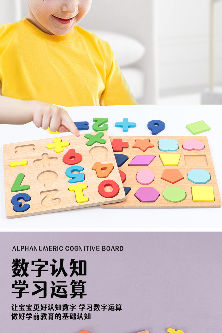 3D tridimensional rompecabezas de madera digital forma carta rompecabezas bloques de construcción a juego tablero de agarre de mano juguetes educativos para niños al por mayor