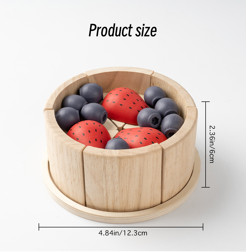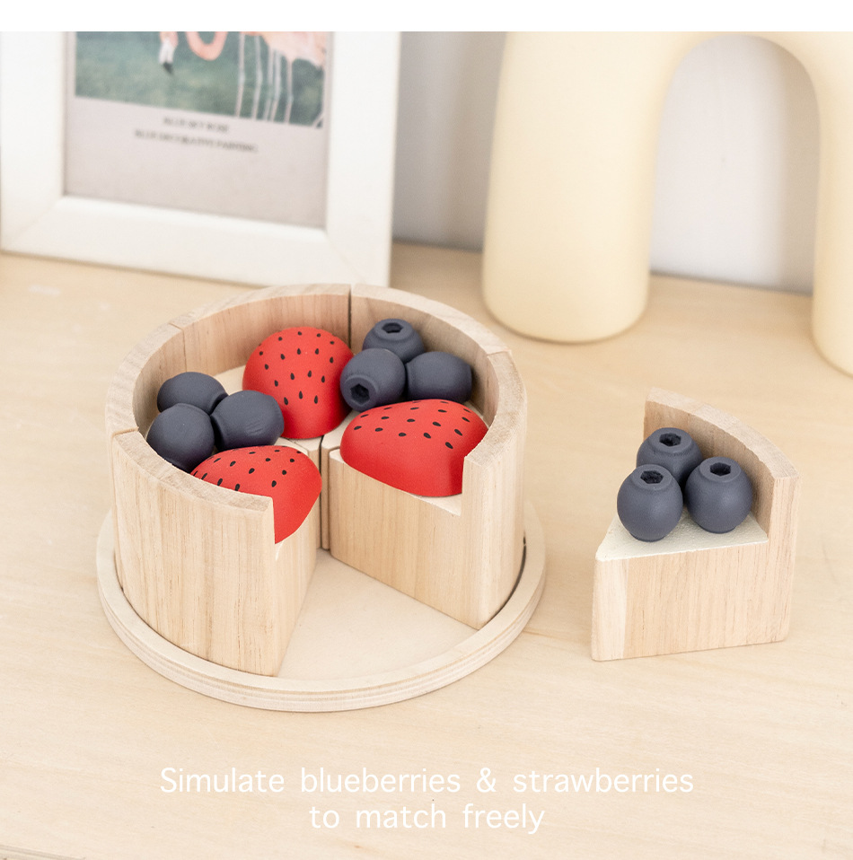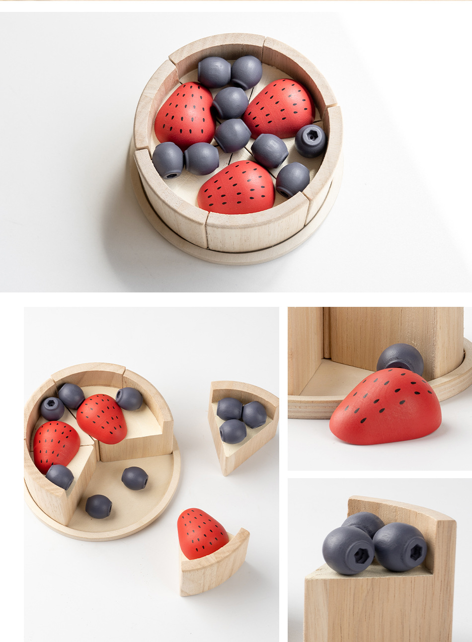 Pastel de fresa azul de madera juego de juguetes de casitas simulación modelado de frutas juego de rol de rompecabezas interactivo entre padres e hijos