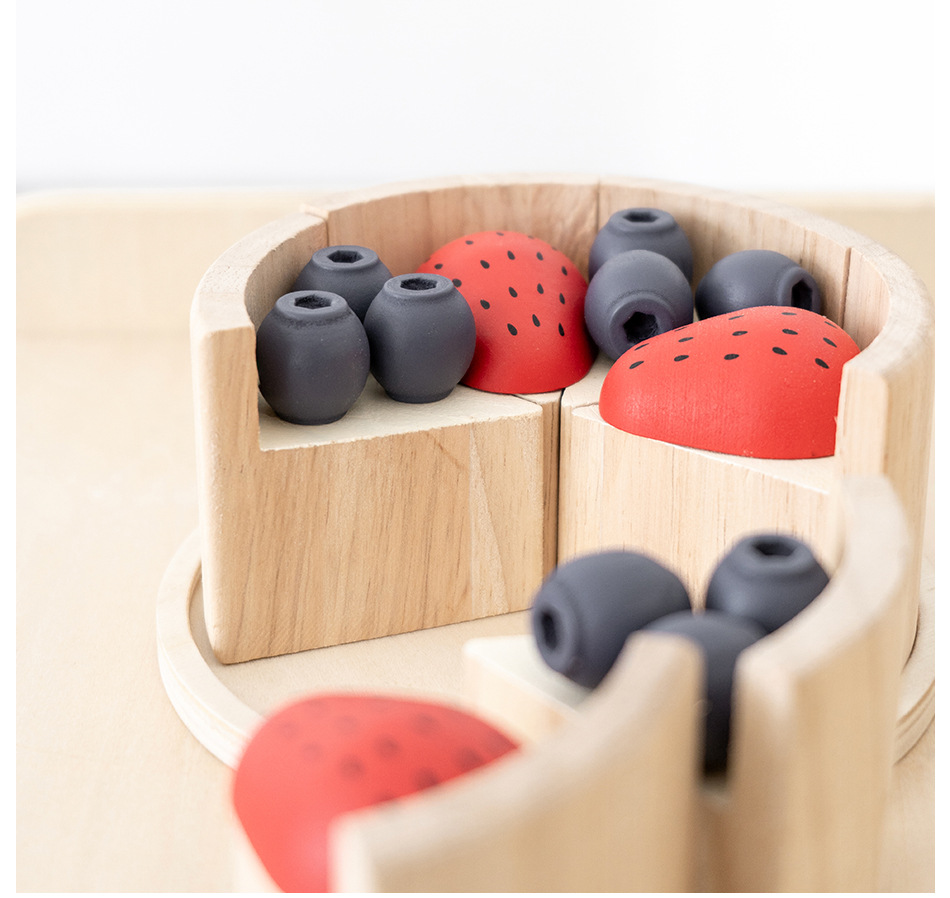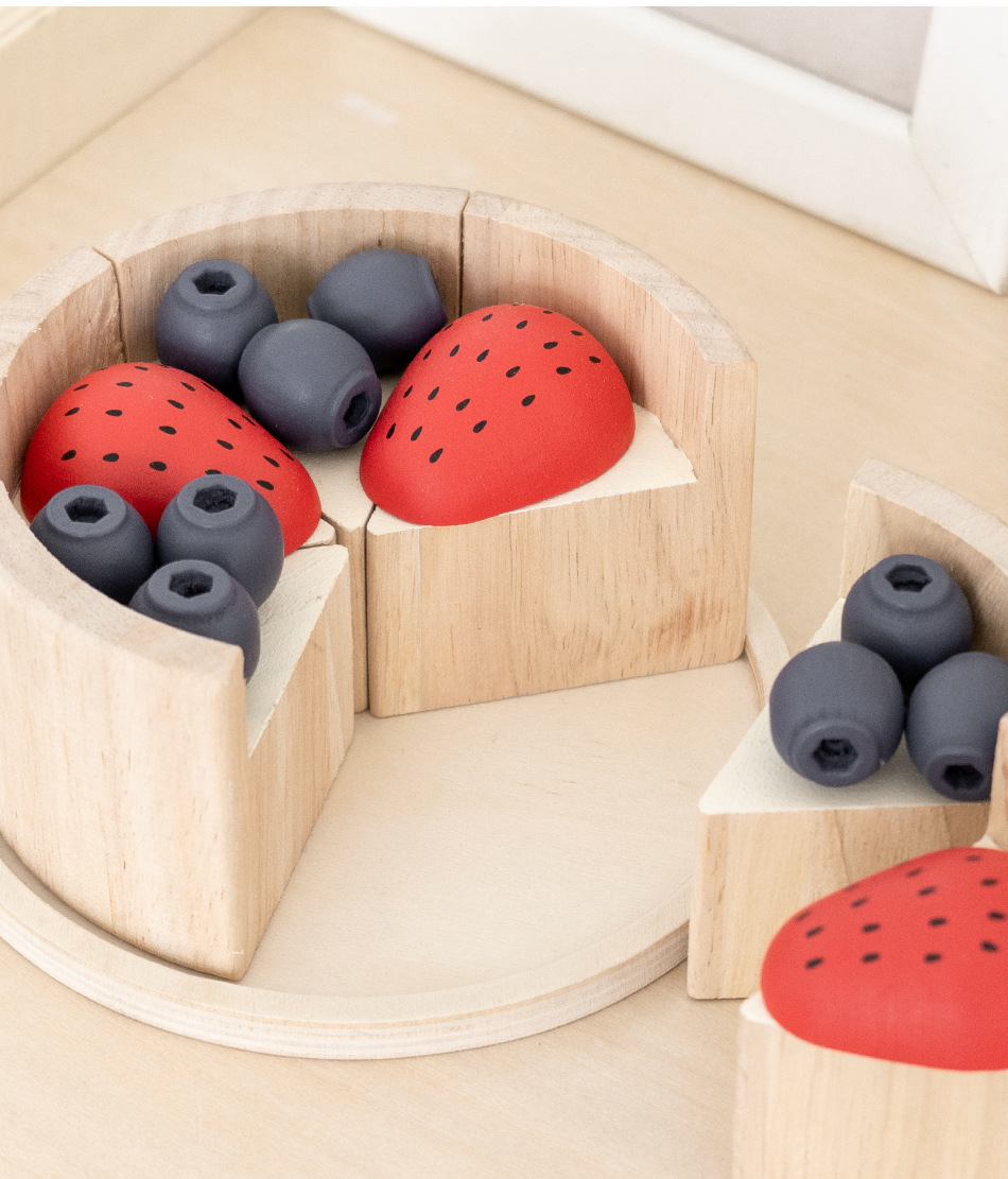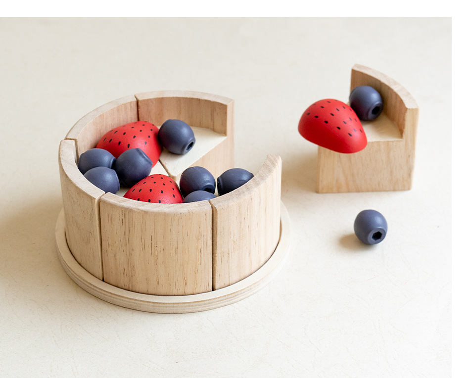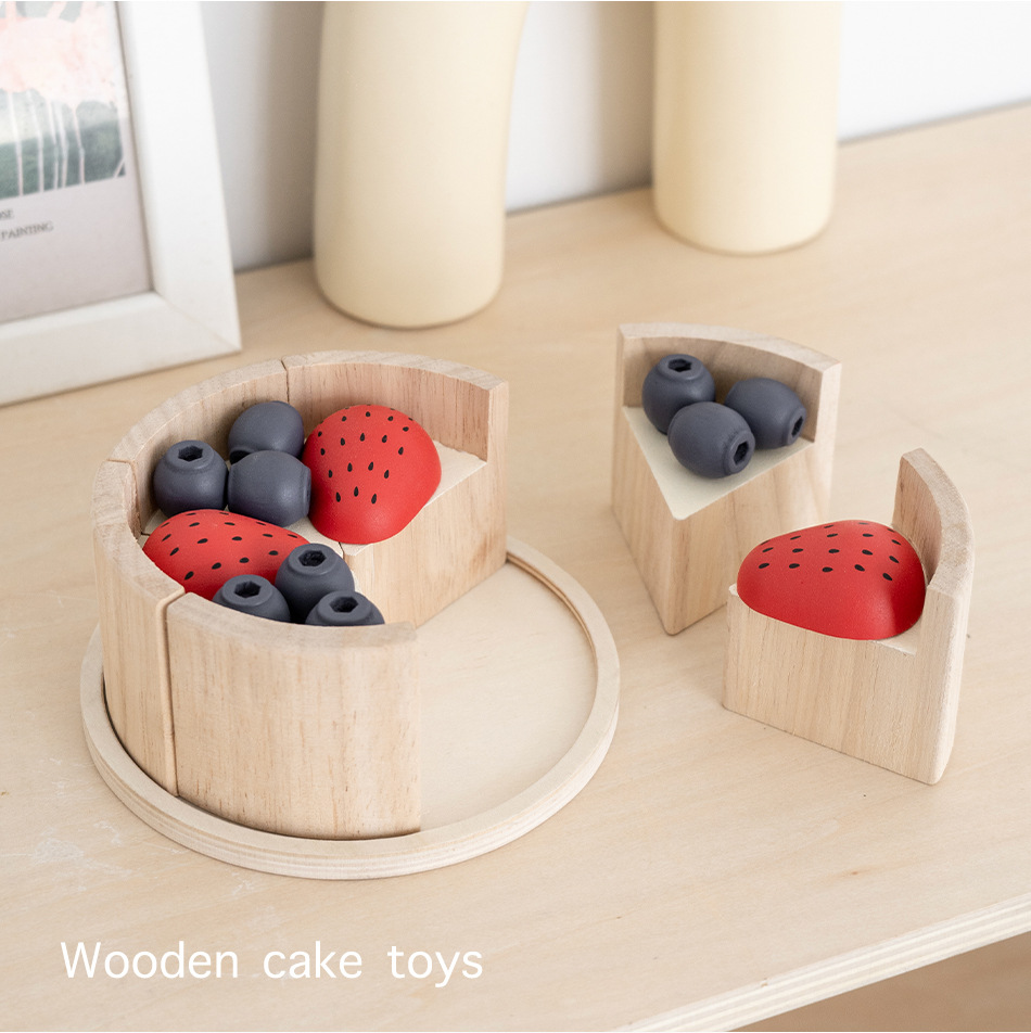 Pastel de fresa azul de madera juego de juguetes de casitas simulación modelado de frutas juego de rol de rompecabezas interactivo entre padres e hijos