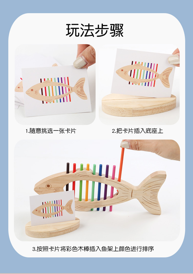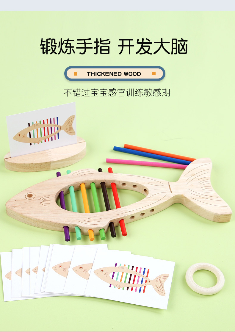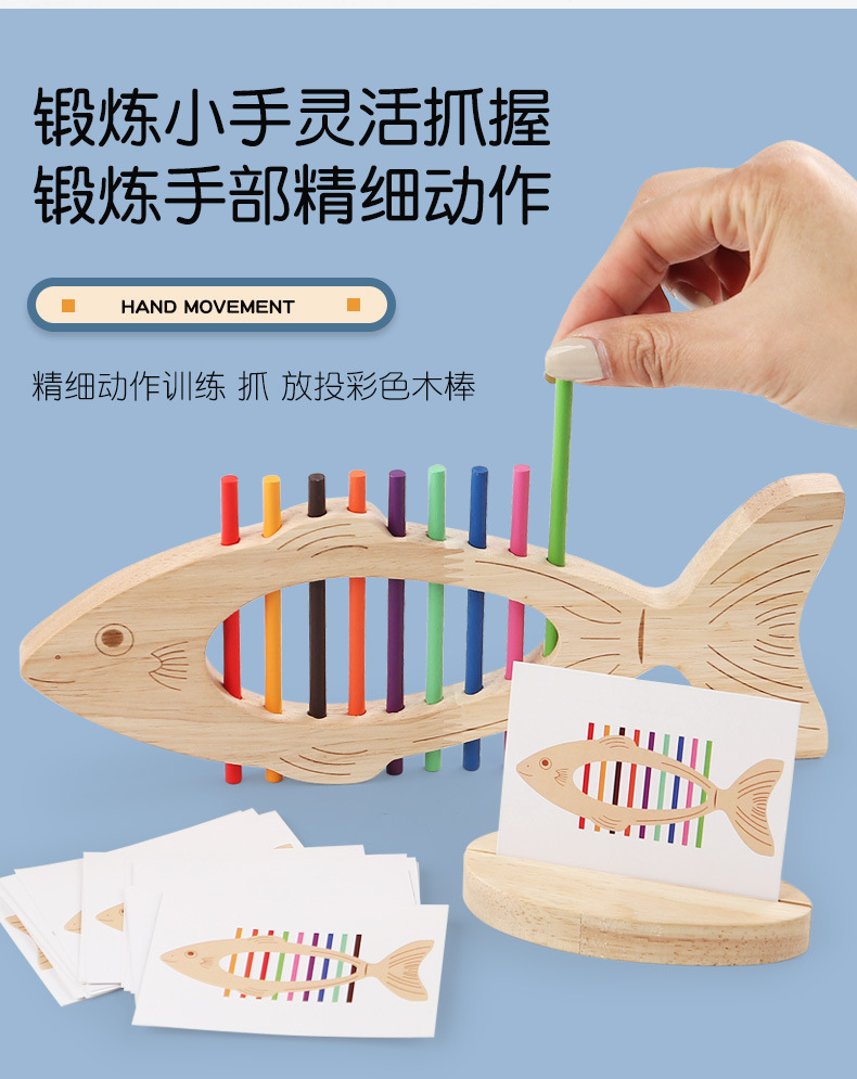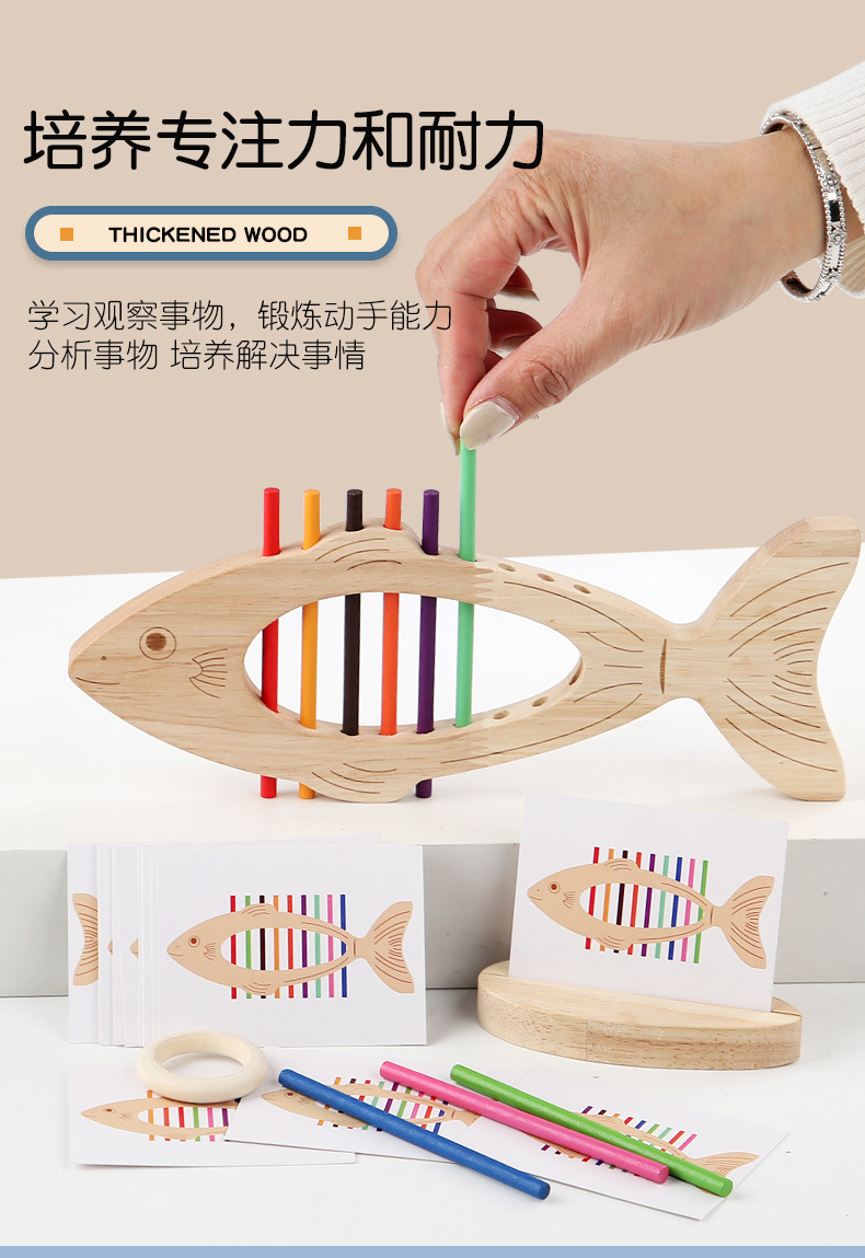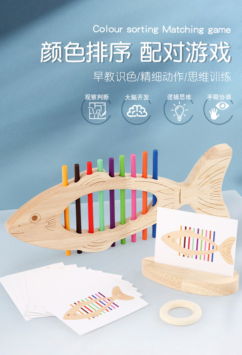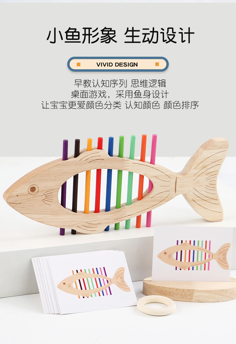 Educación temprana de madera, juego de combinación de colores de peces pequeños, juguetes de entrenamiento cognitivo para niños, interacción entre padres e hijos, juguetes de iluminación para bebés