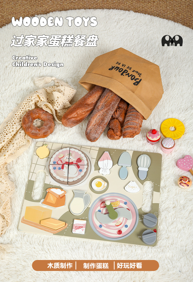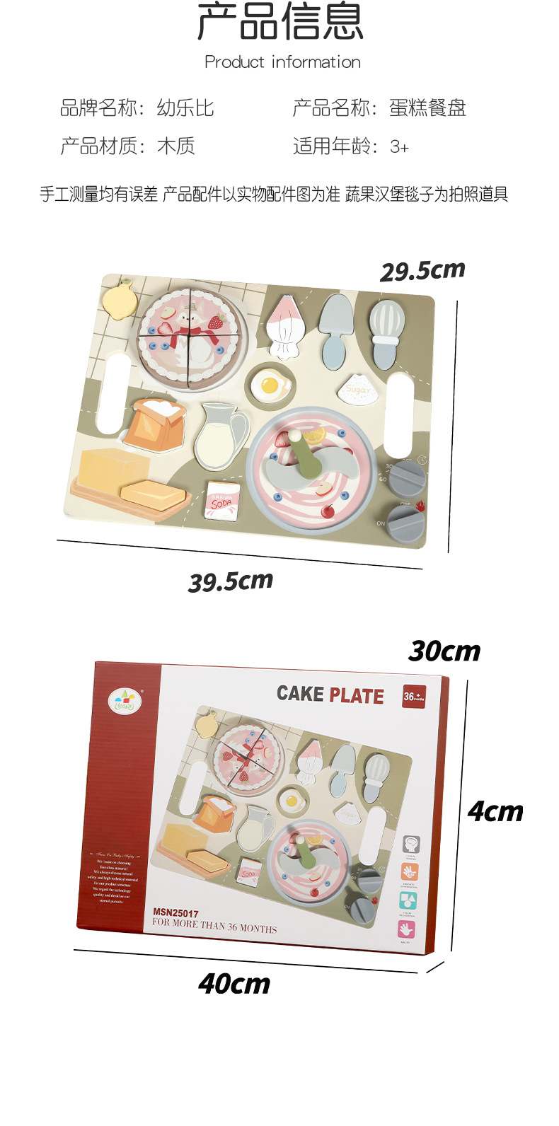 Nuevo plato de pastel para niños, juguetes, ingredientes para pasteles, etc.