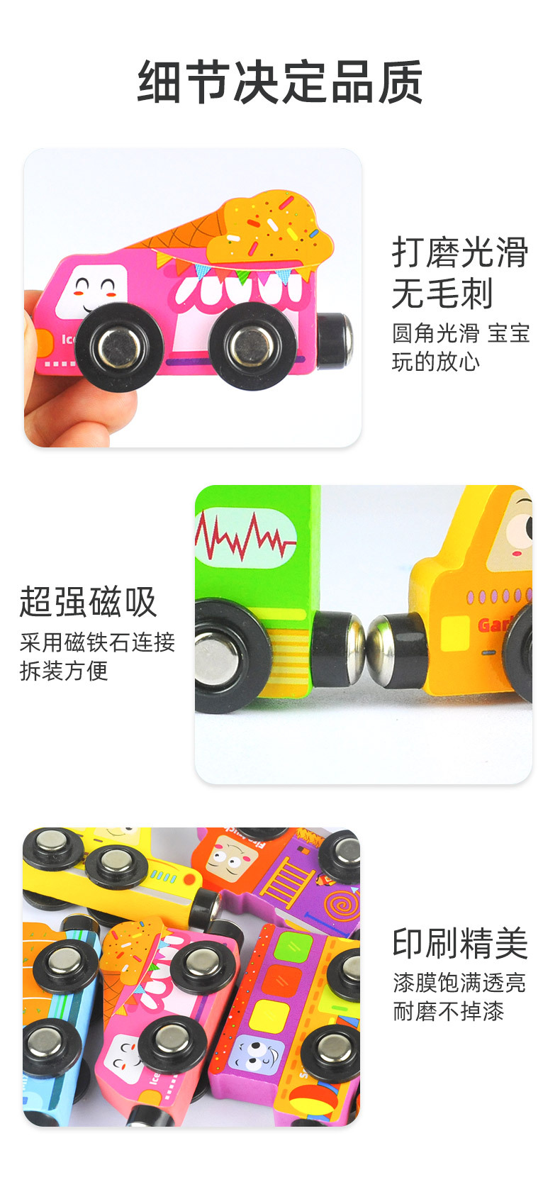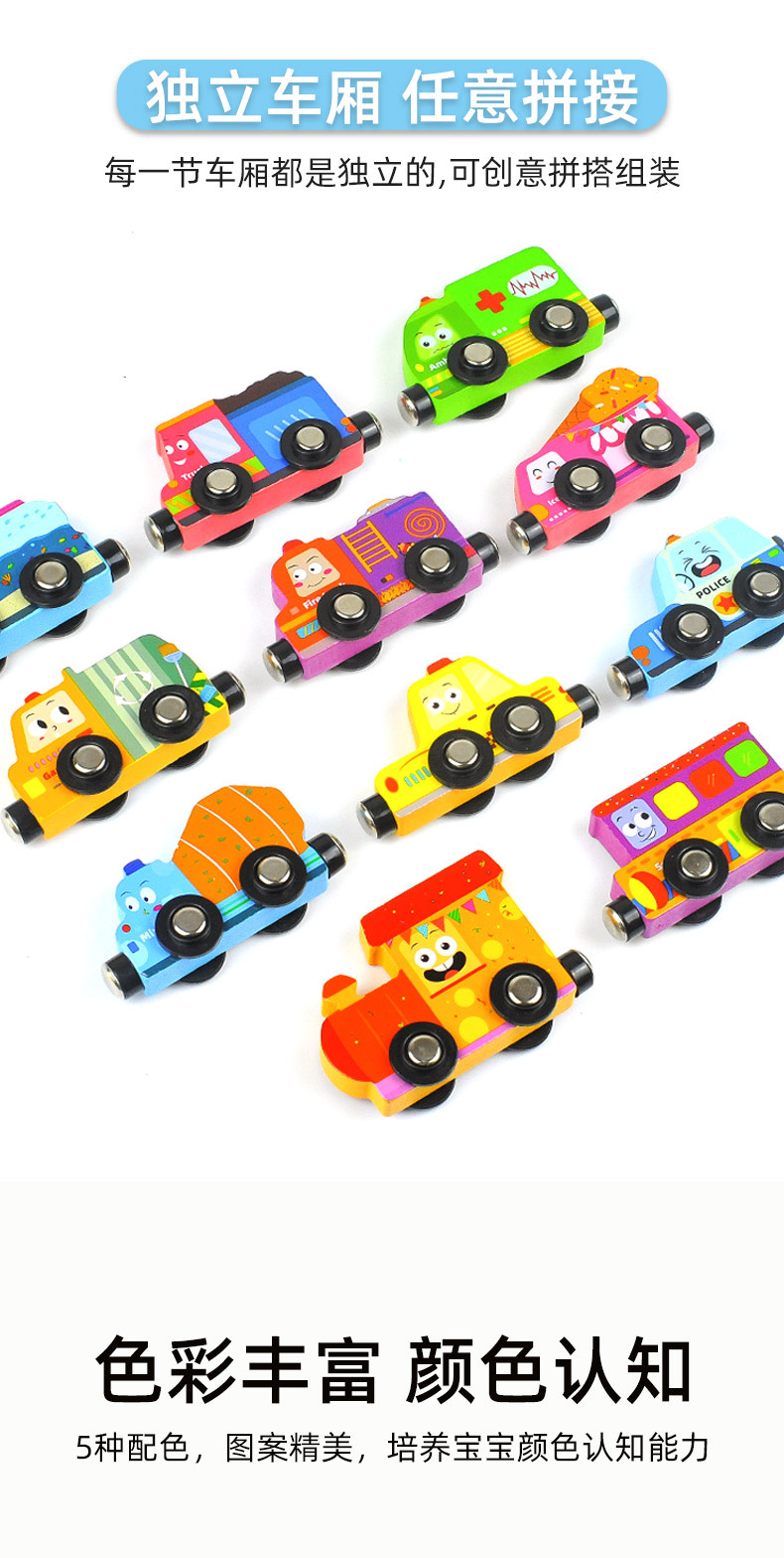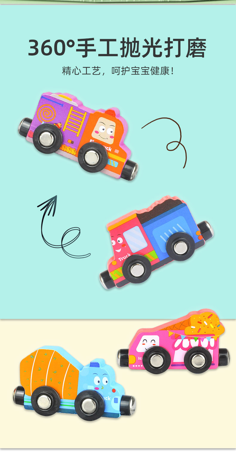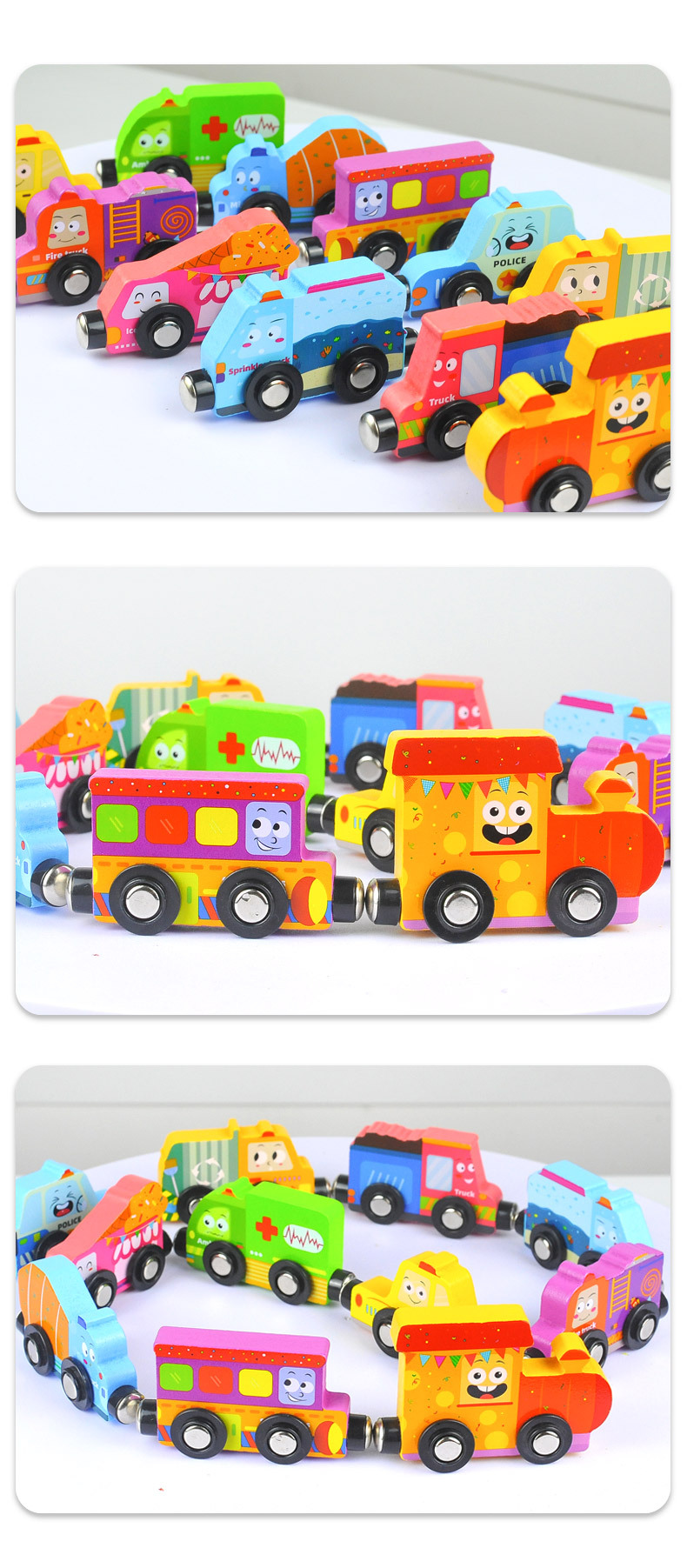 Modelo de tren magnético para niños de madera, coche inercial, señal de tráfico, caja de madera, coche de ingeniería, coche de juguete para niños