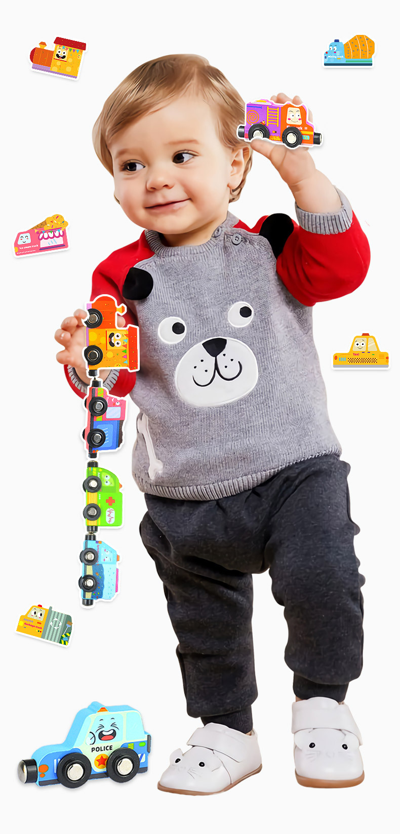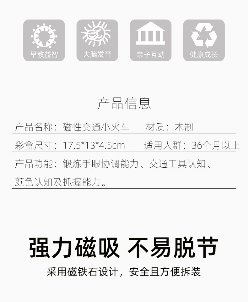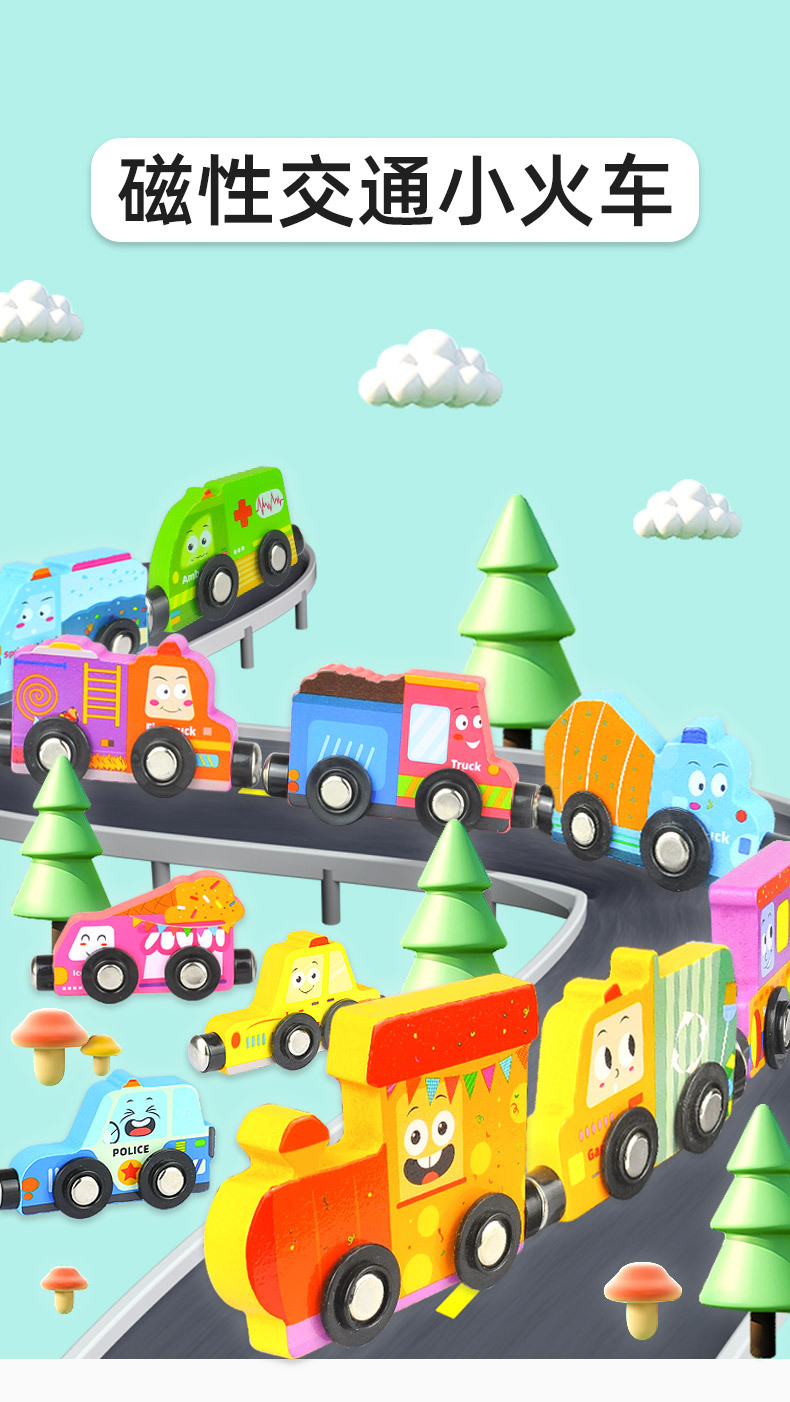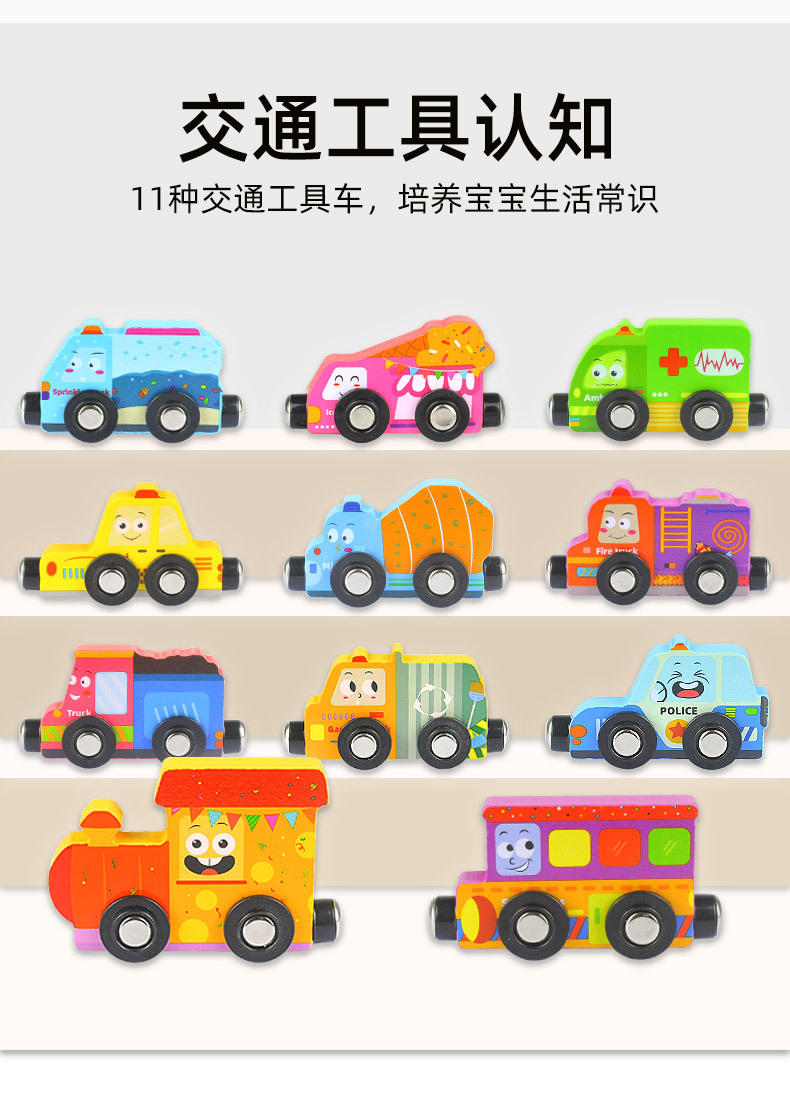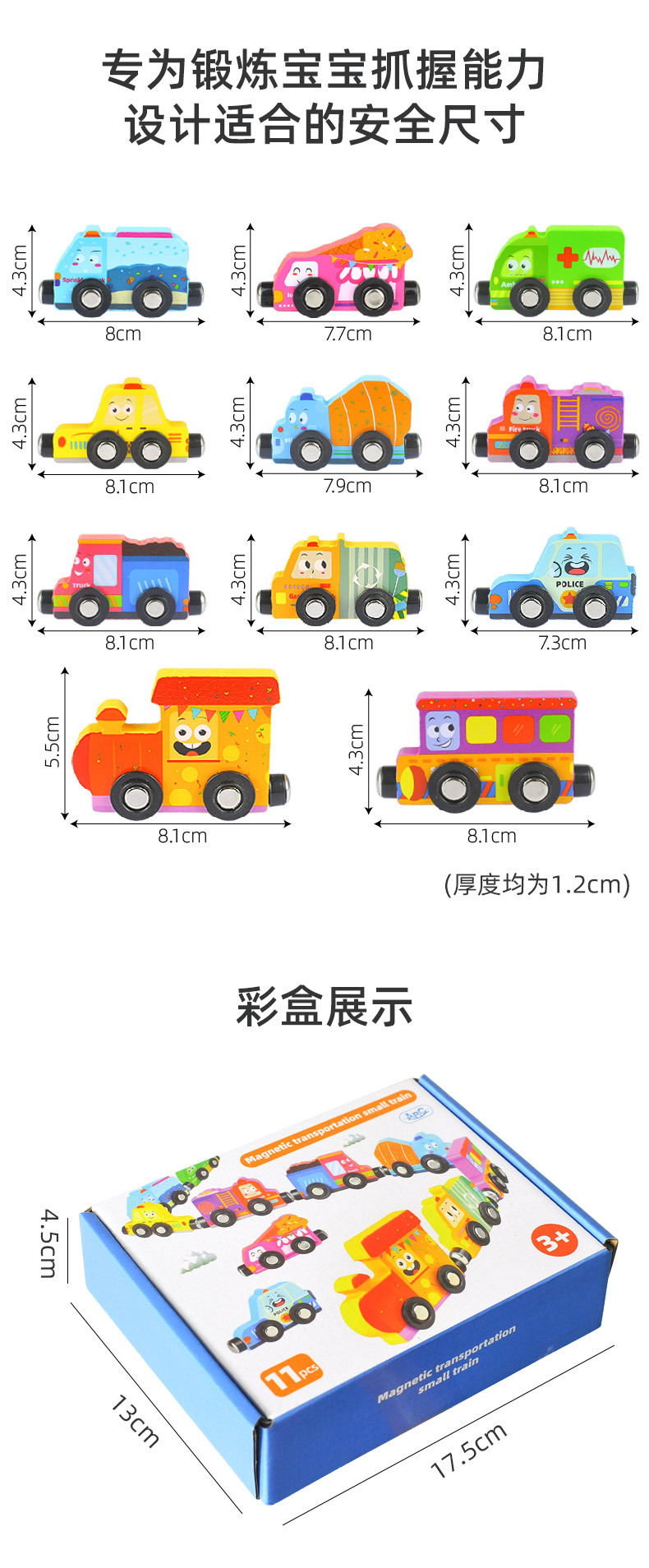 Modelo de tren magnético para niños de madera, coche inercial, señal de tráfico, caja de madera, coche de ingeniería, coche de juguete para niños