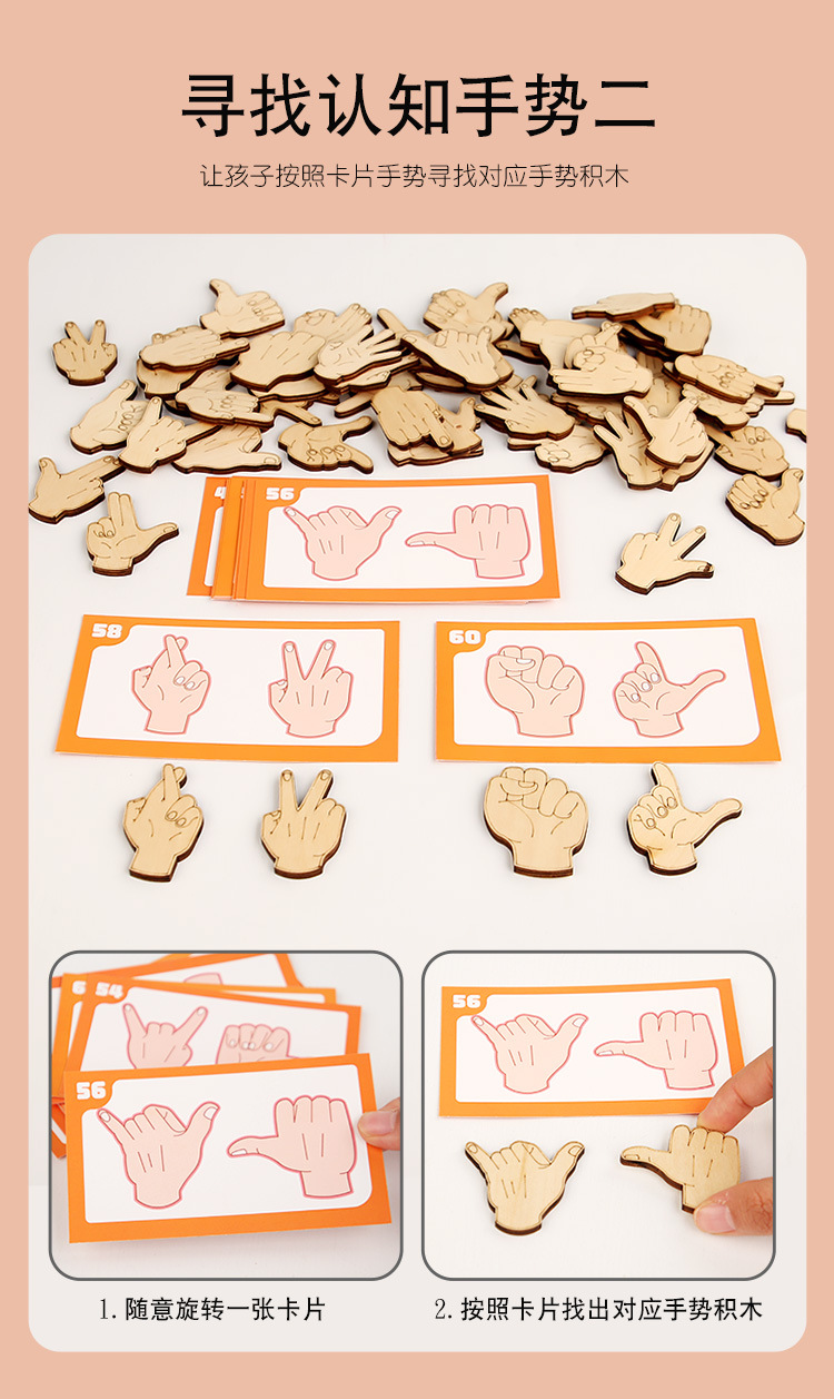 Kindergarten Montessori Puzzle Puzzle de gestos de emparejamiento Juguetes de material didáctico Bloques de escritorio para niños transfronterizos Puzzle de emparejamiento